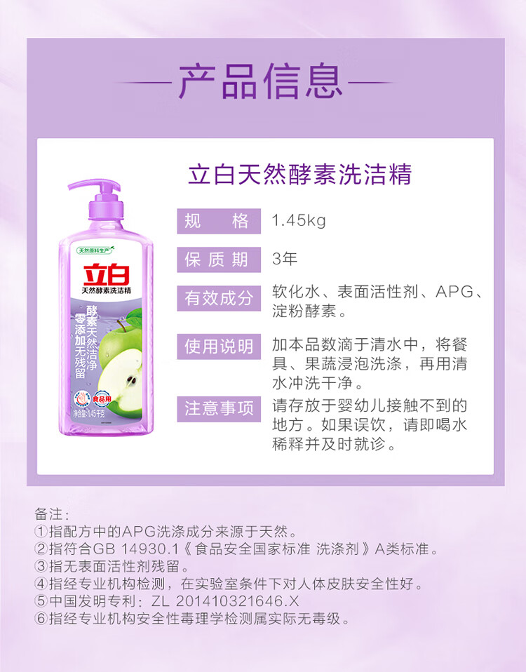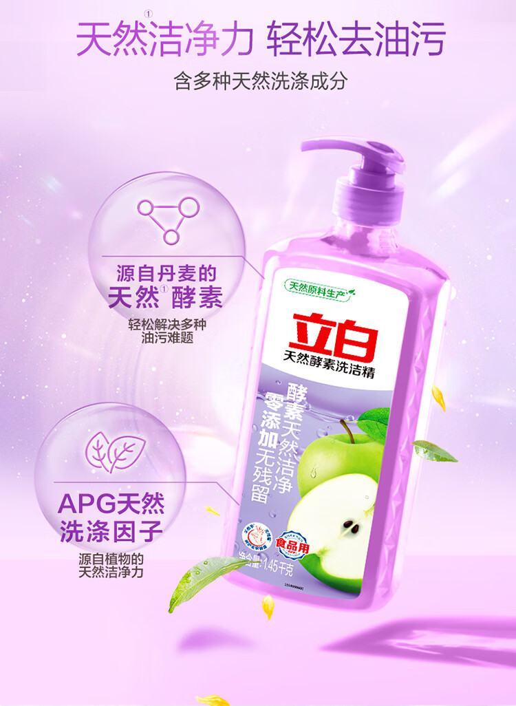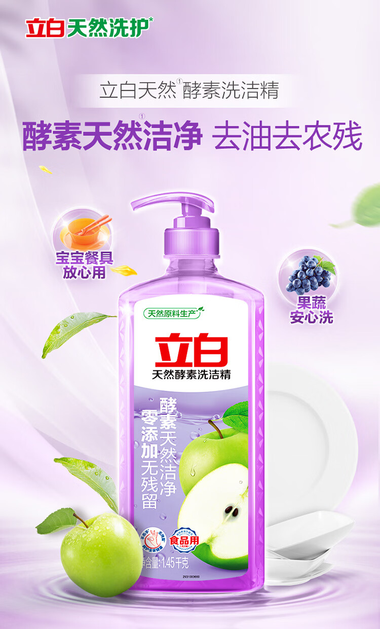 立白天然酵素洗洁精1.45kg 去油除味 宝宝餐具果蔬放心洗 洗涤剂