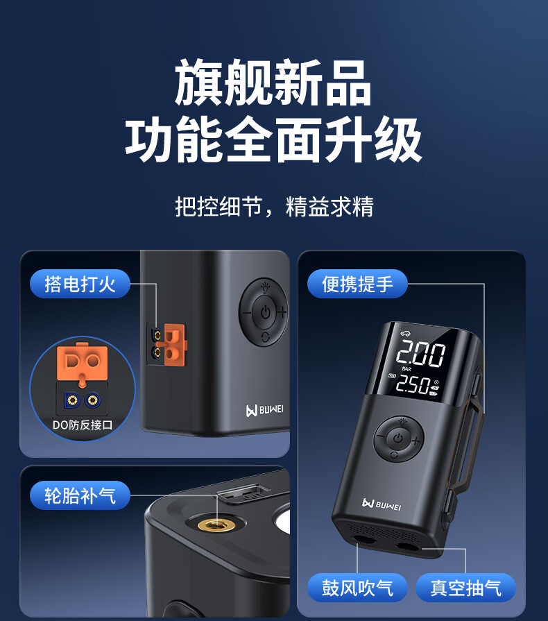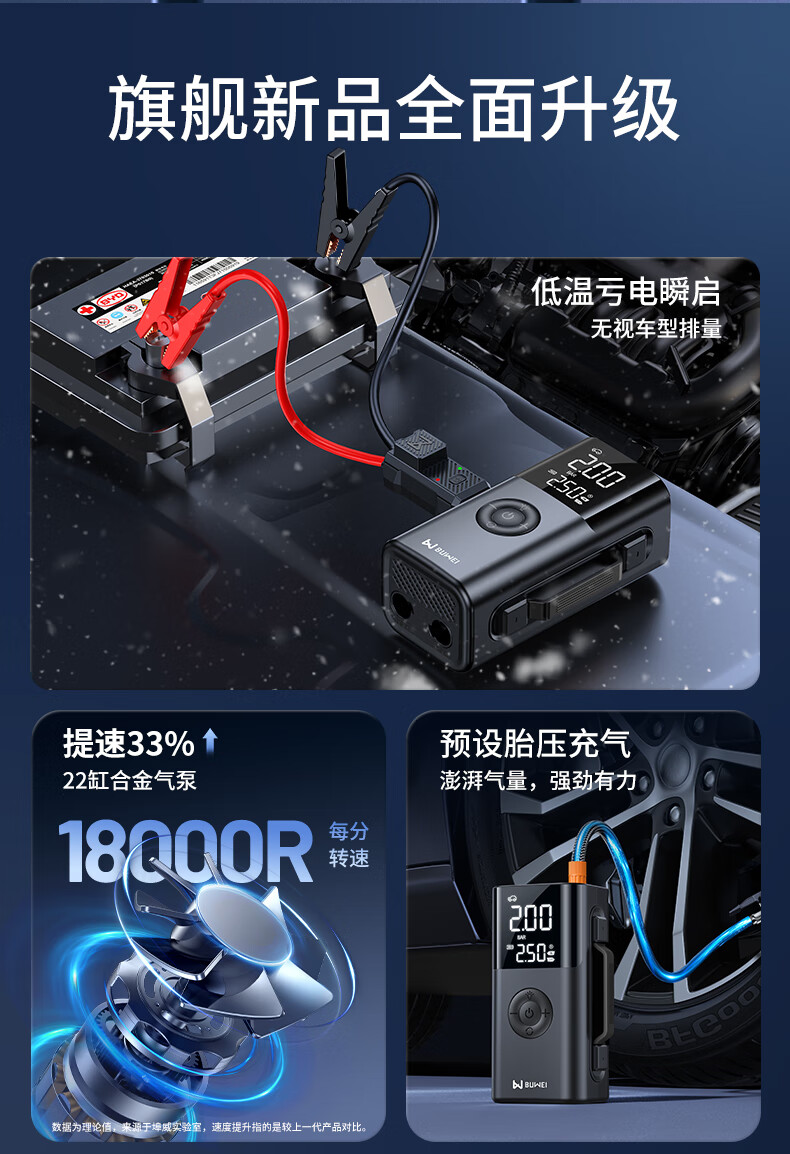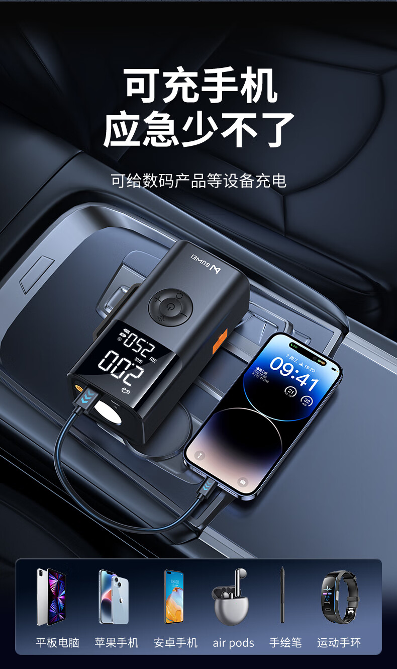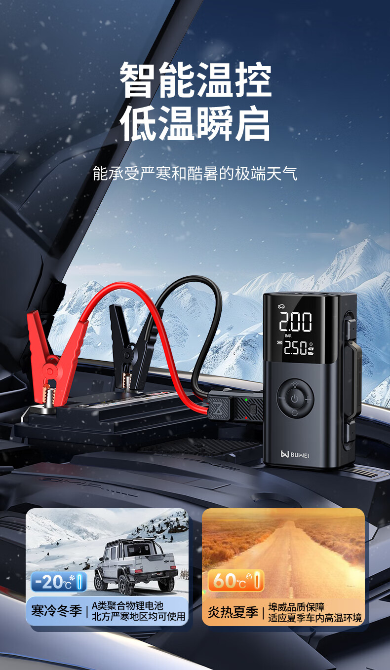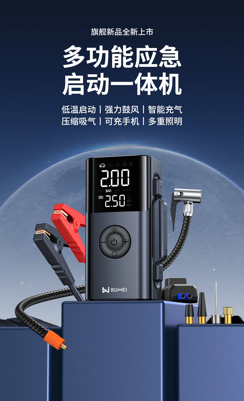 埠威BUWEI【3C认证】汽车应急启动电源充气泵一体机搭电宝轮胎打气泵电瓶电车强启12V打火照明户外电源