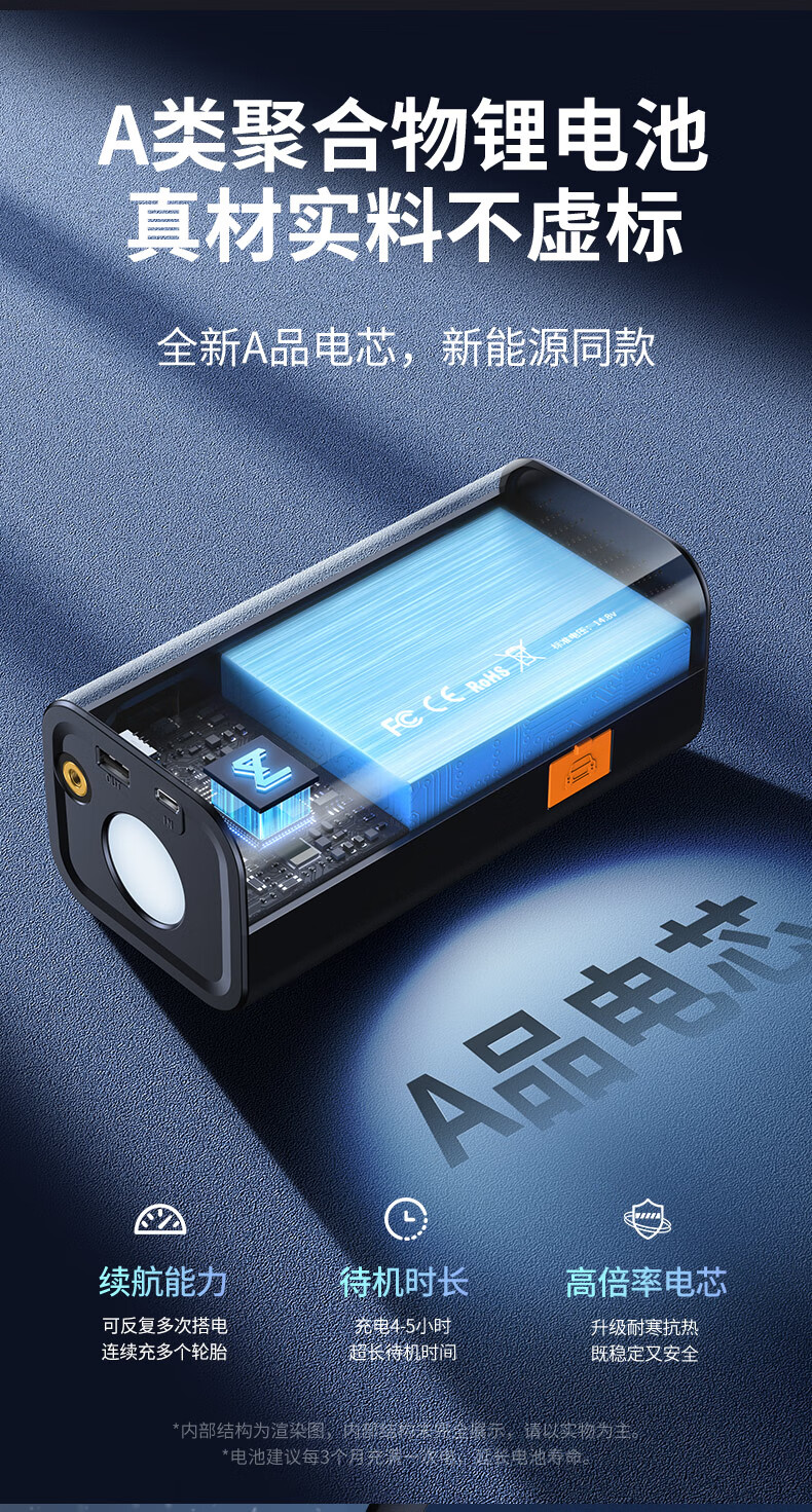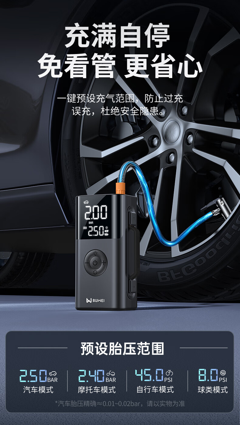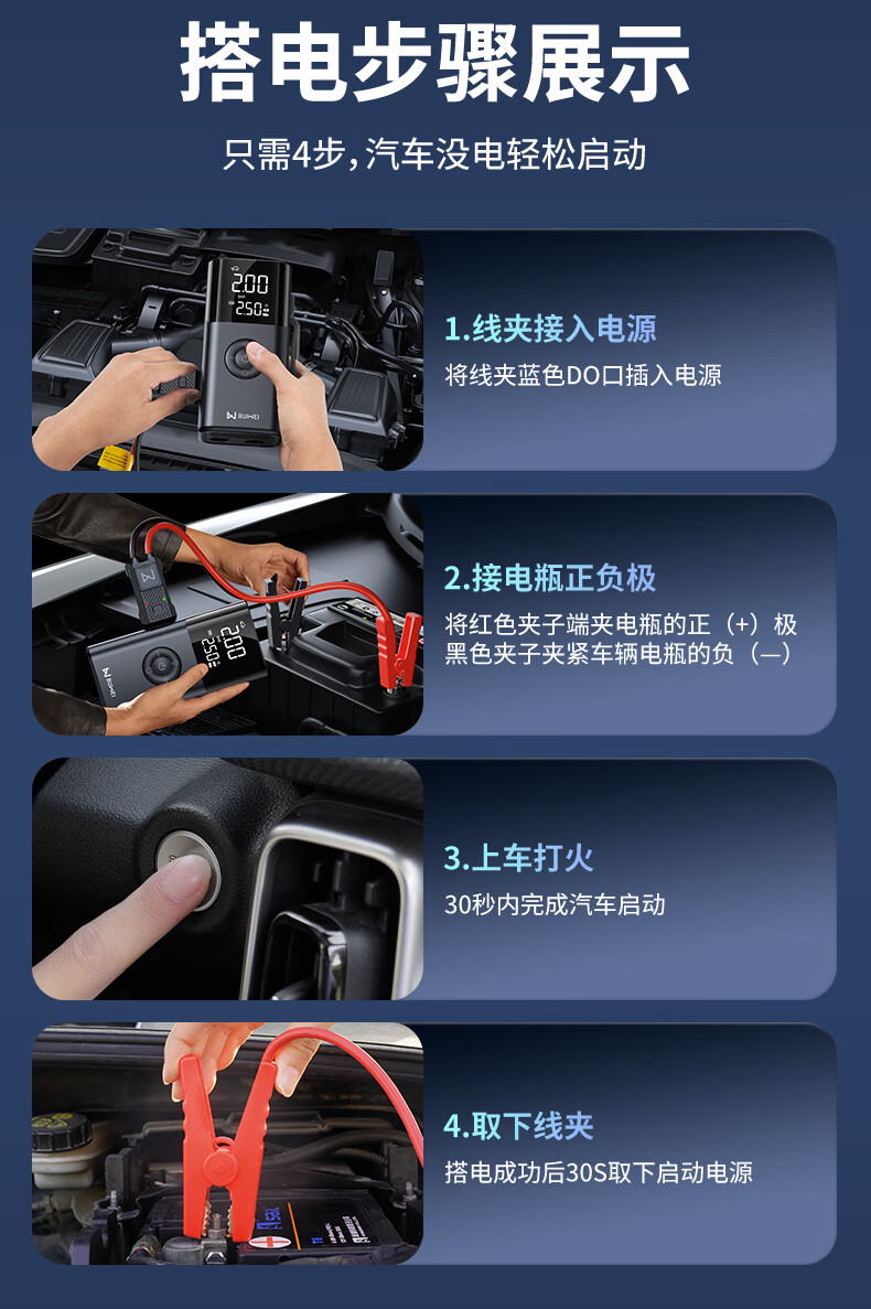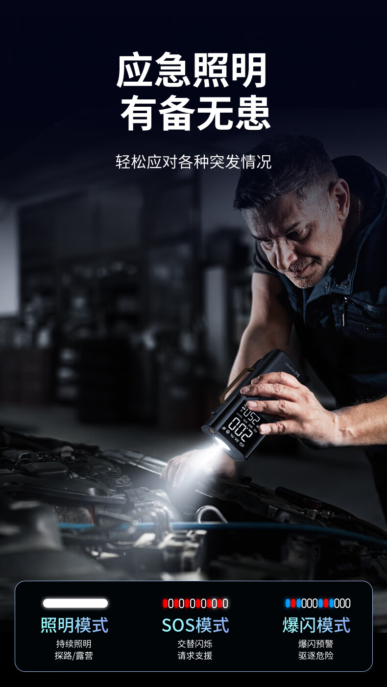 埠威BUWEI【3C认证】汽车应急启动电源充气泵一体机搭电宝轮胎打气泵电瓶电车强启12V打火照明户外电源