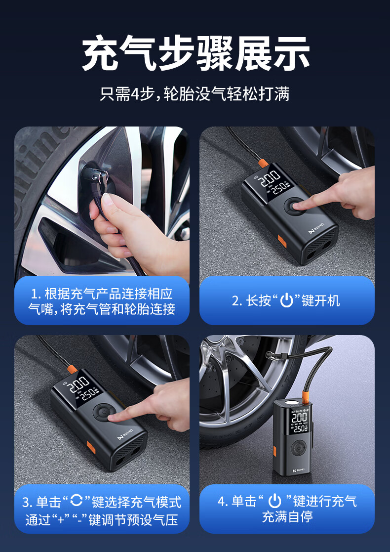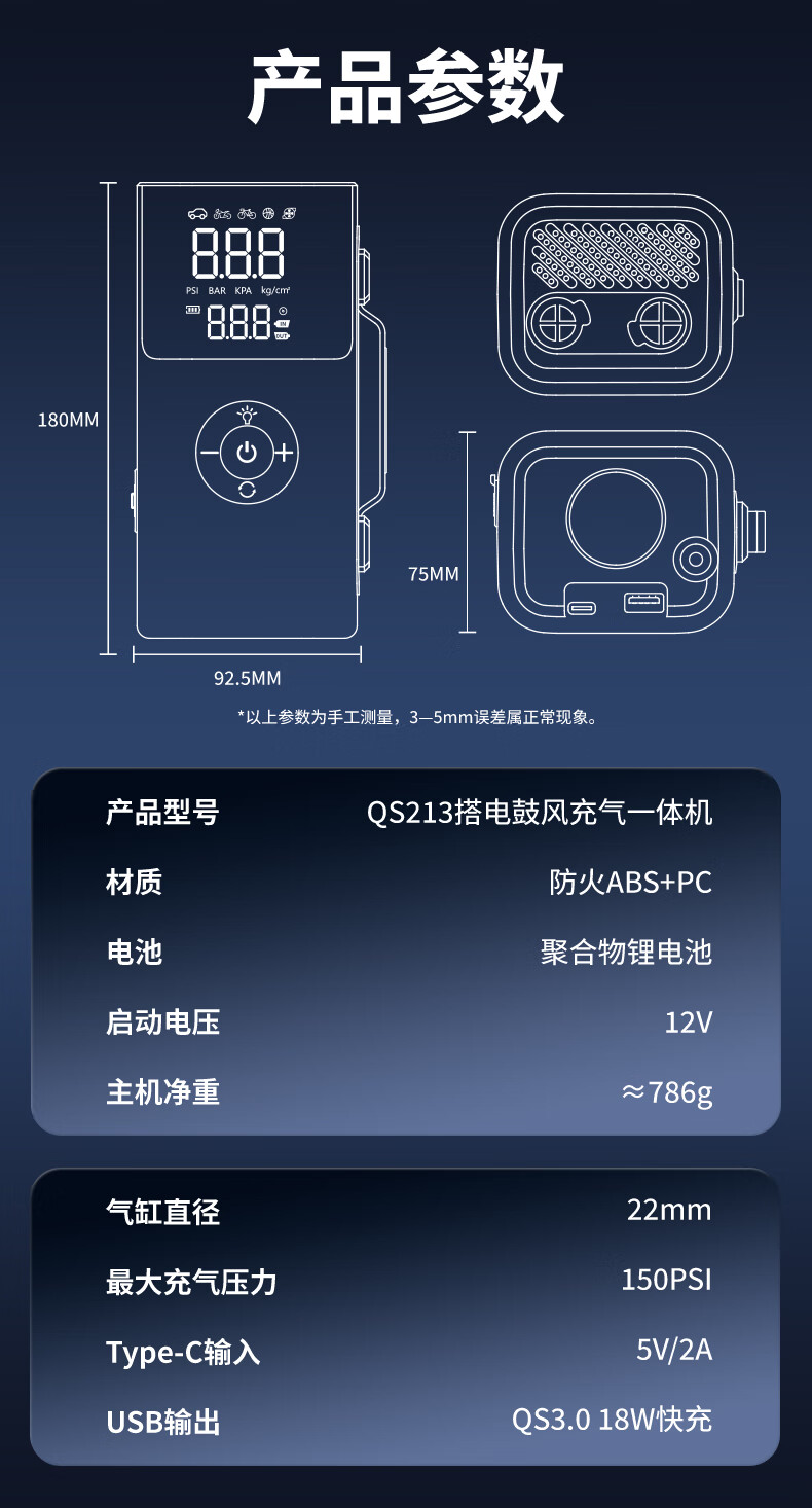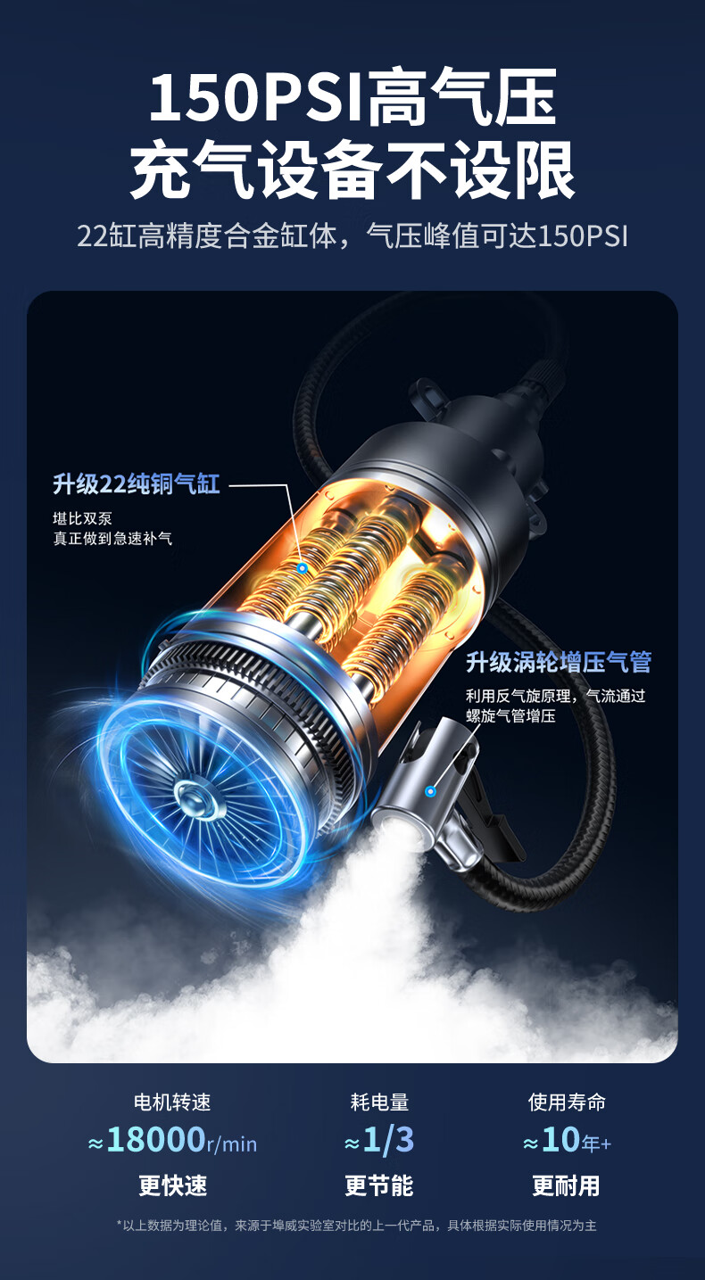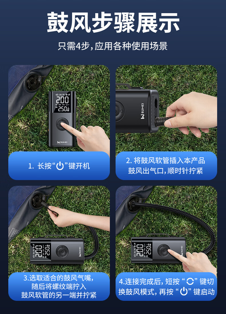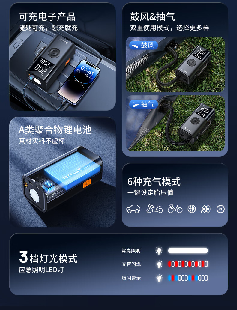 埠威BUWEI【3C认证】汽车应急启动电源充气泵一体机搭电宝轮胎打气泵电瓶电车强启12V打火照明户外电源