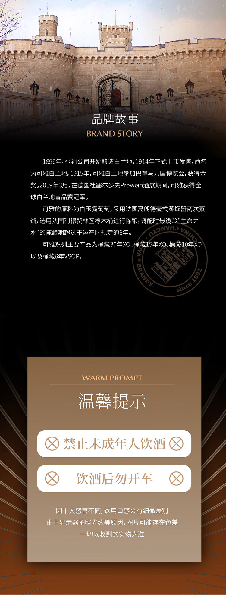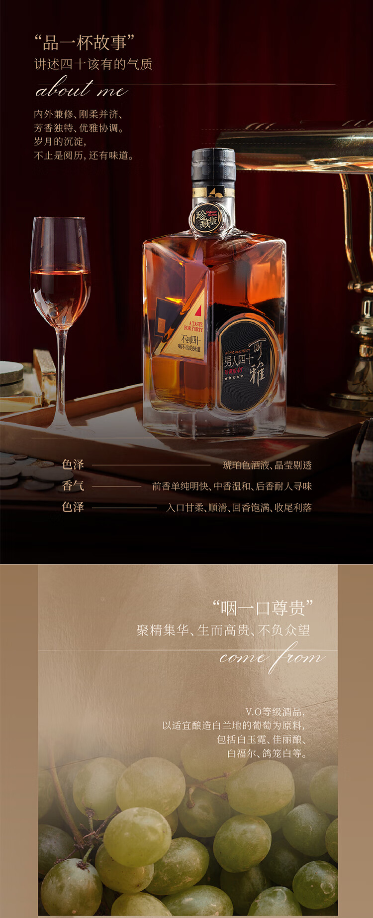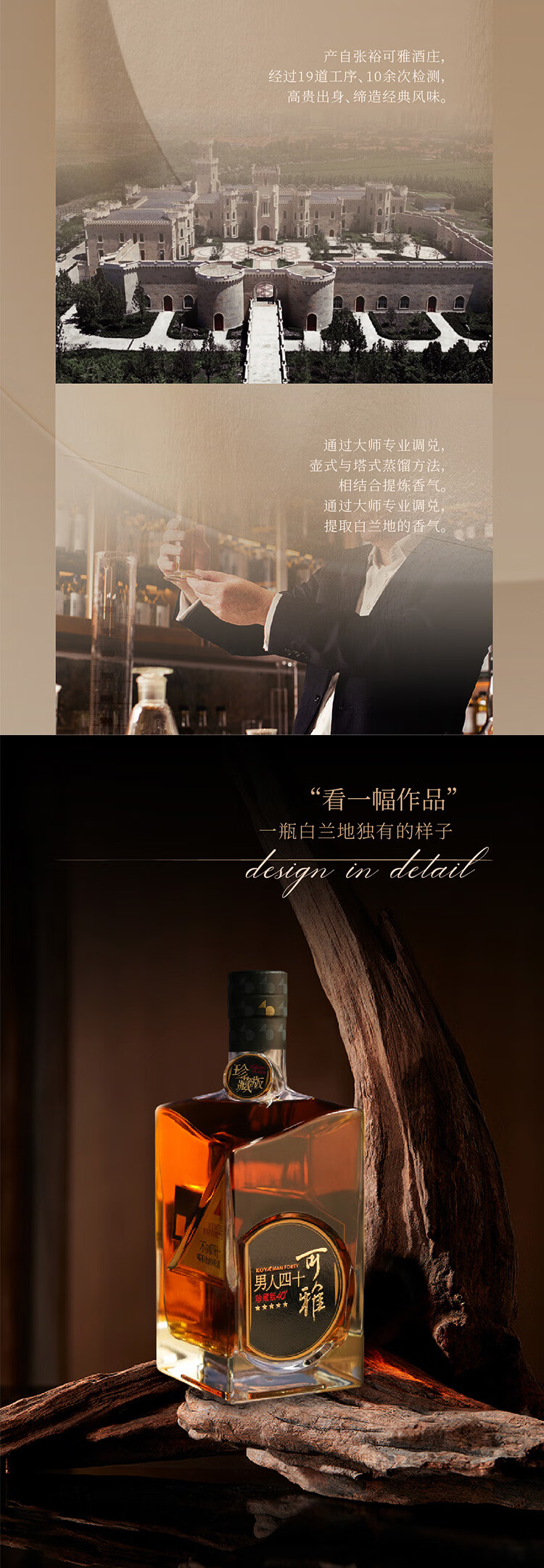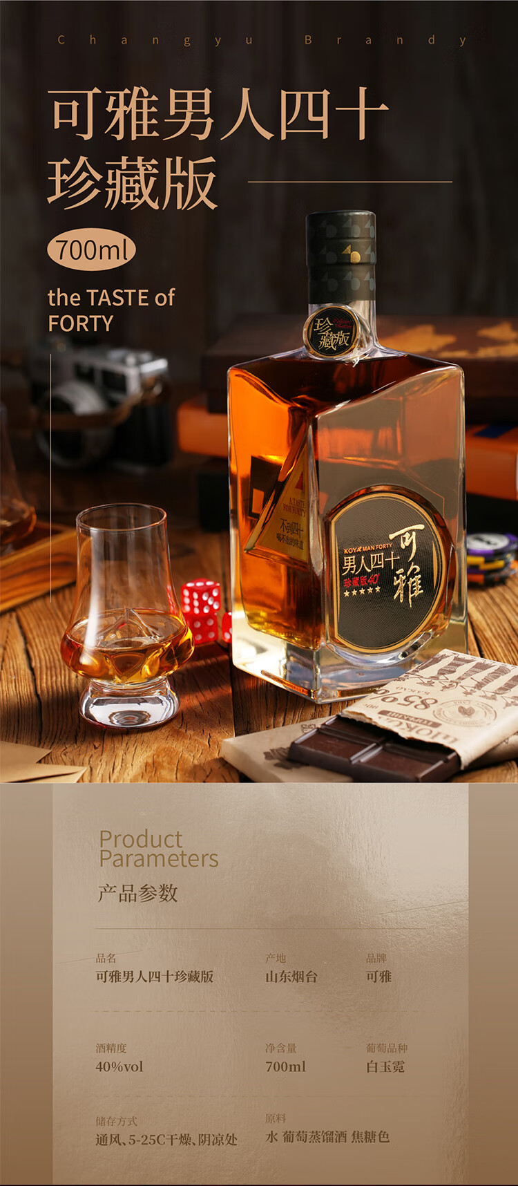 张裕珍藏版可雅男人四十白兰地 700ml单支礼盒装 40度 高端洋酒 700mL 1瓶 700ml