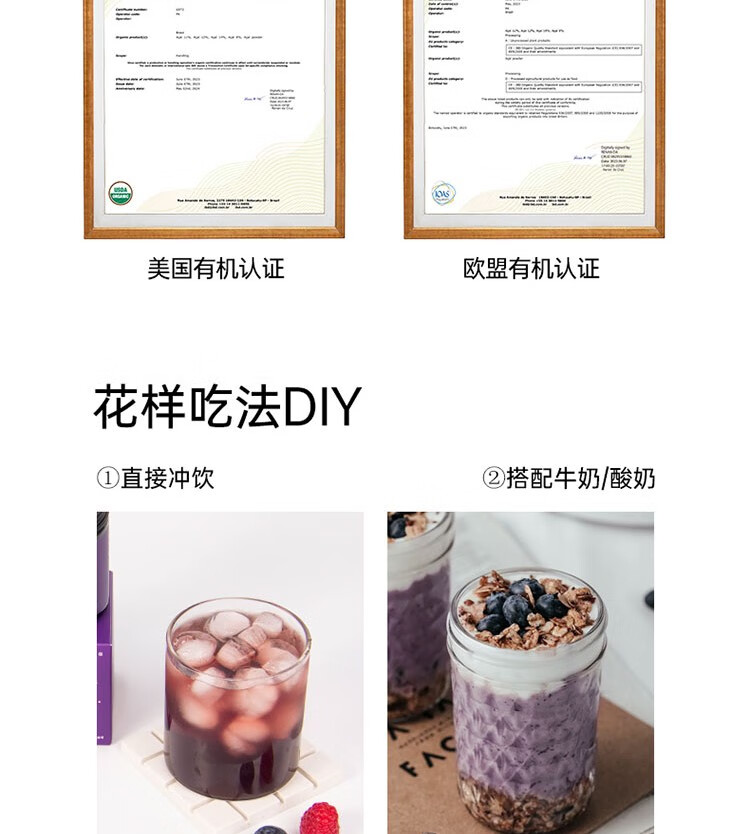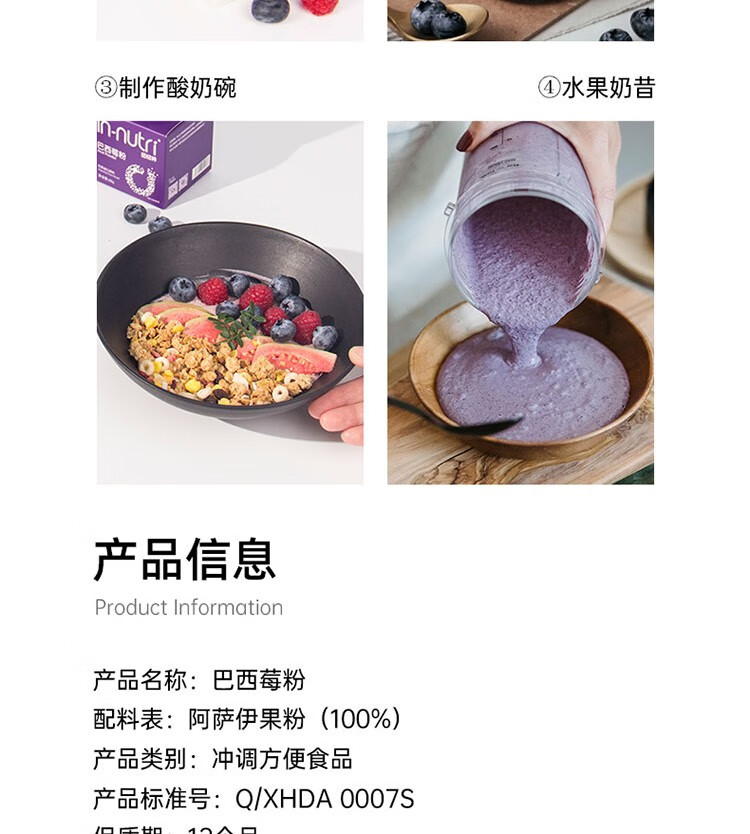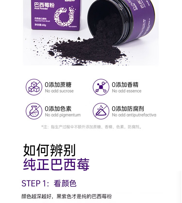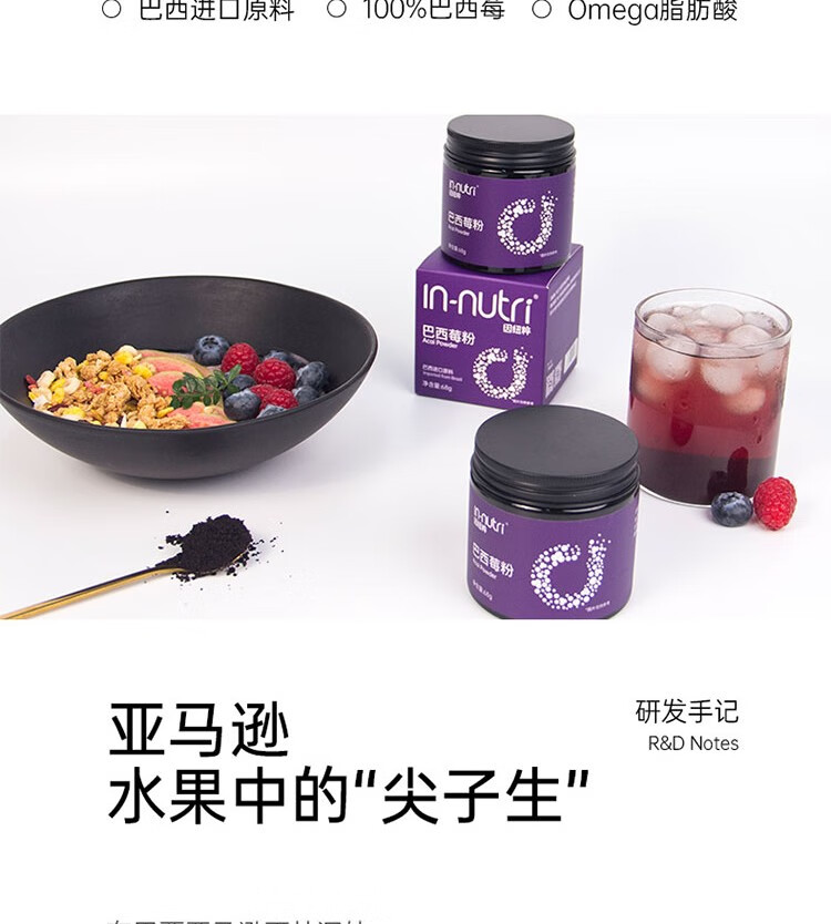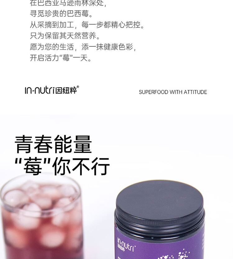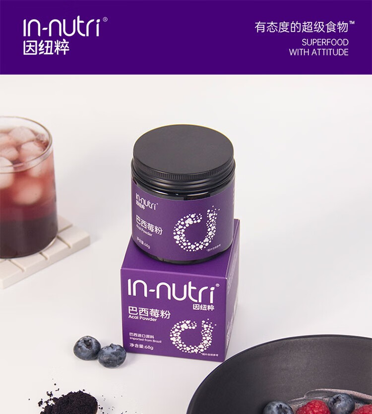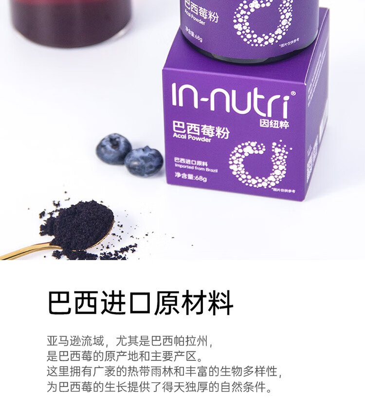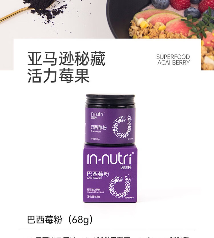 因纽粹进口纯巴西莓粉68g花青素acai果蔬纤维冲调饮料级食物然代早餐
