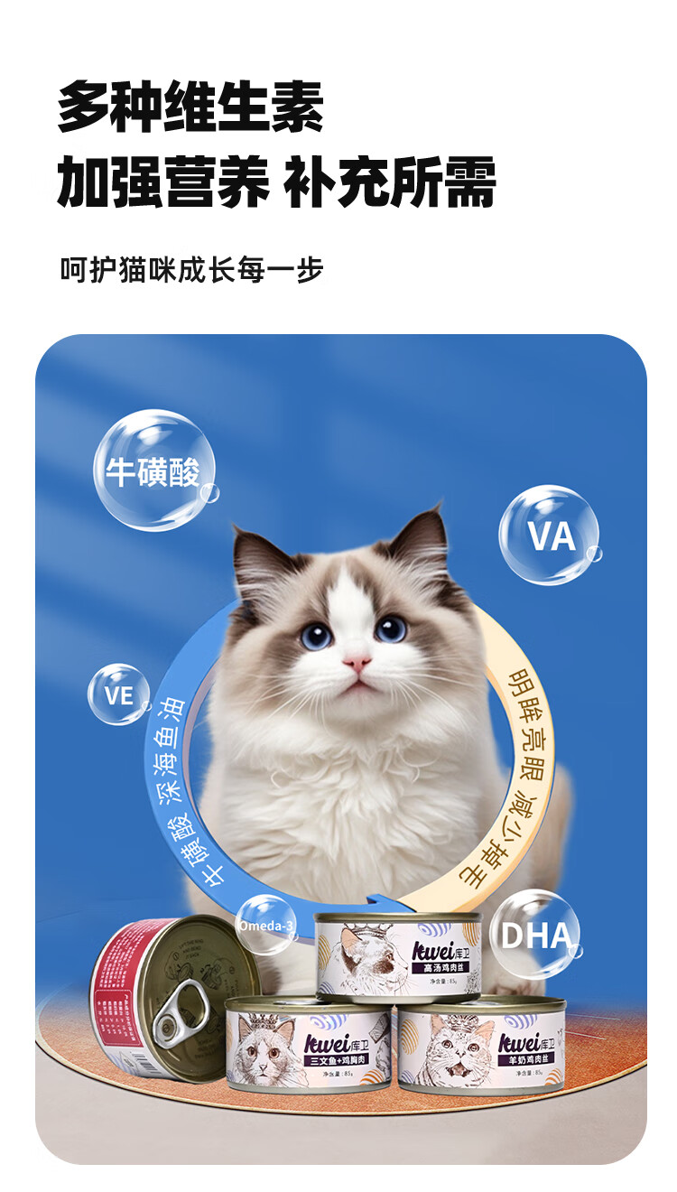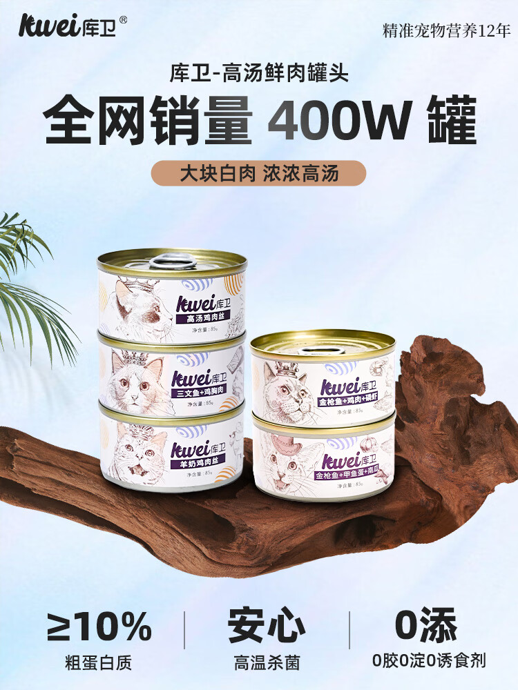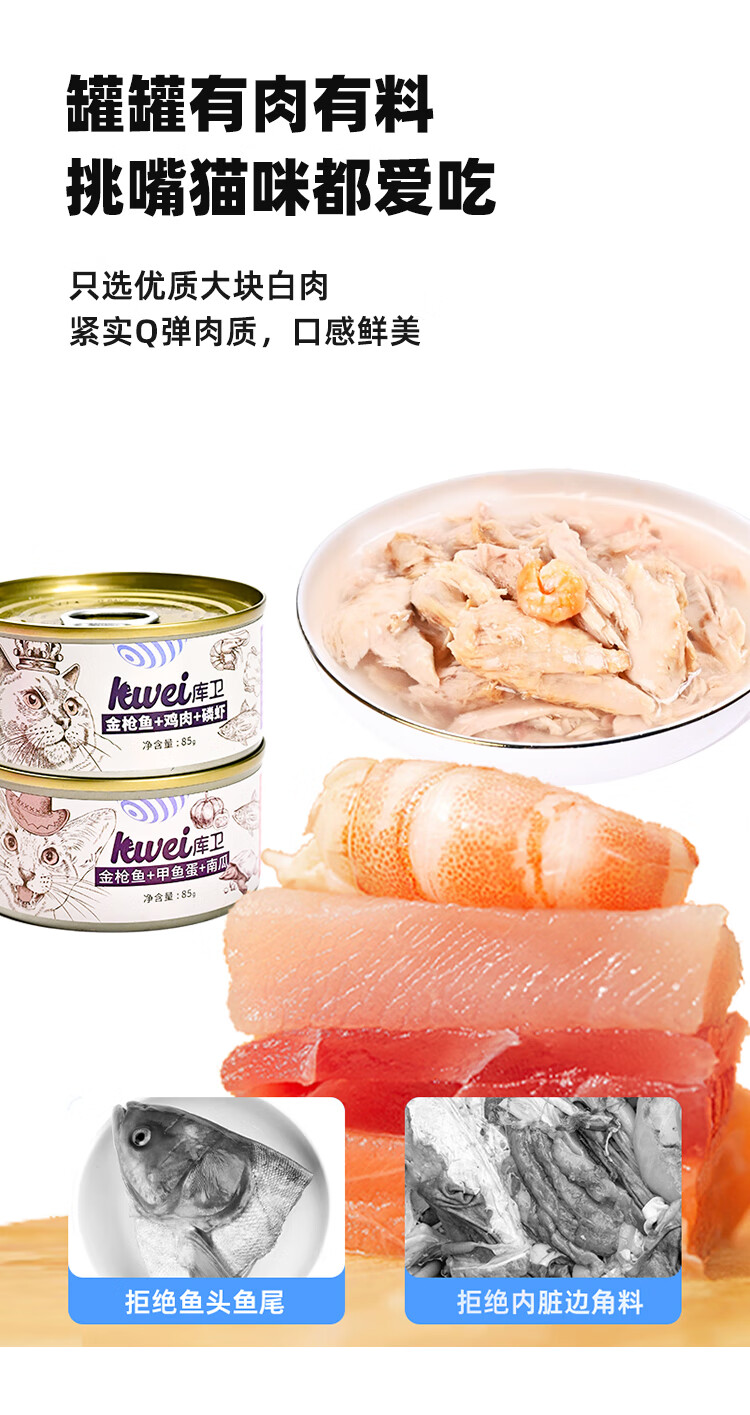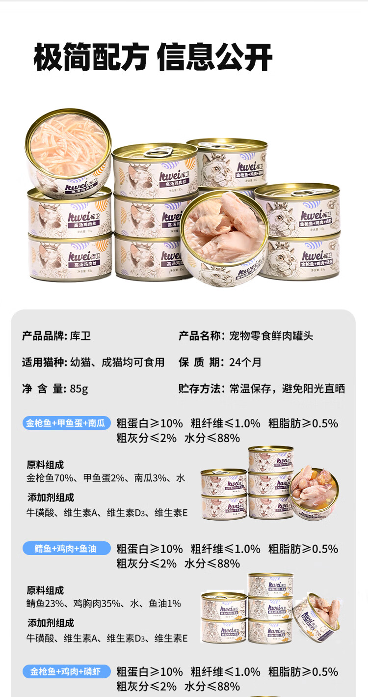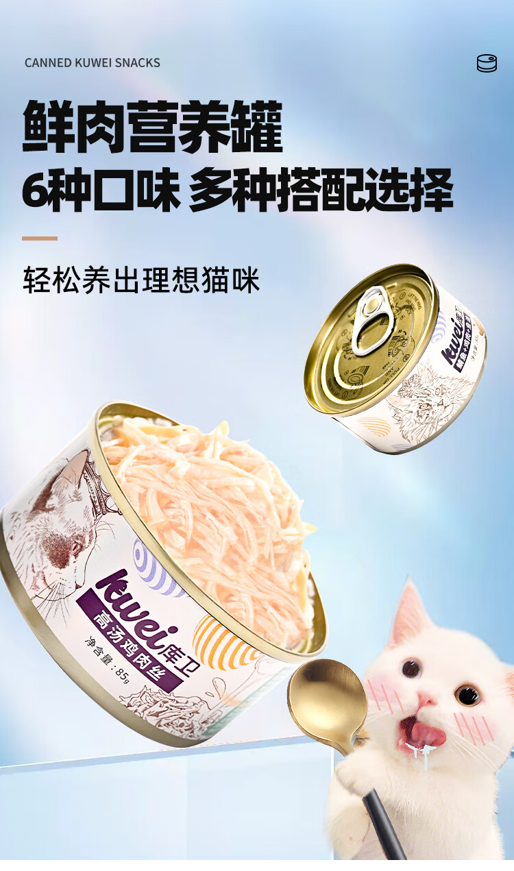 库卫猫罐头猫咪幼猫成猫宠物零食主食罐增肥发鳃 高汤鸡肉丝1罐*85g