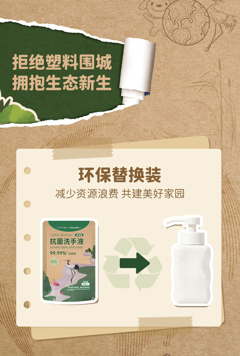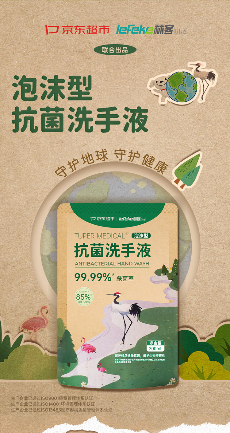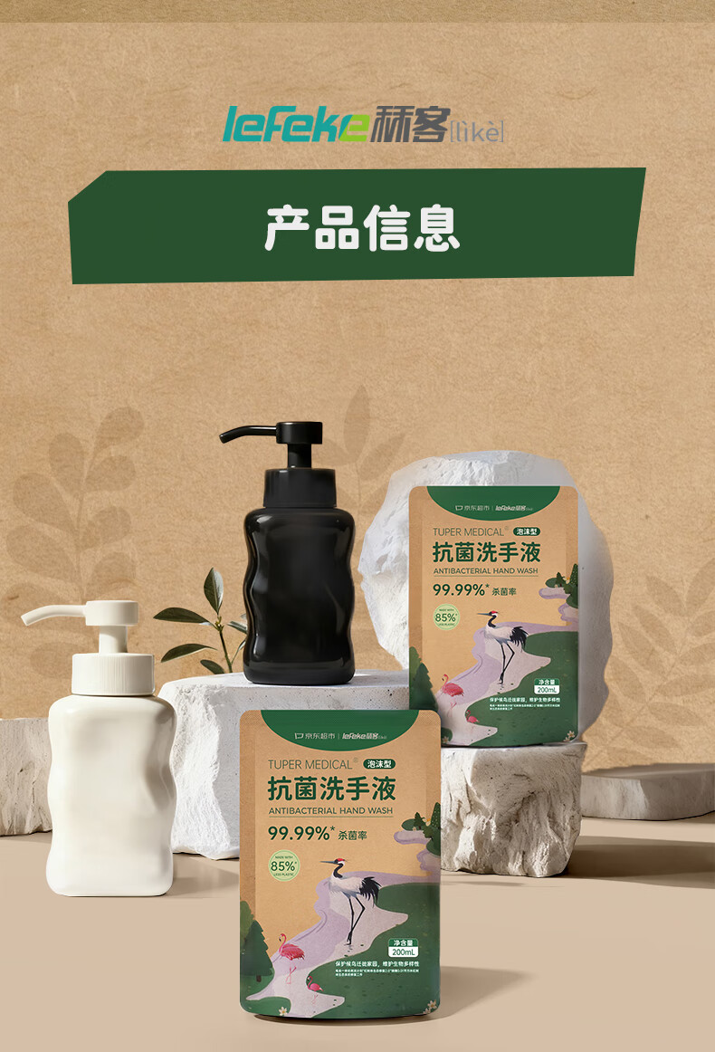 秝客lefeke环保泡沫洗手液补充装抑菌杀菌消毒200ml*2泡泡家用清洁