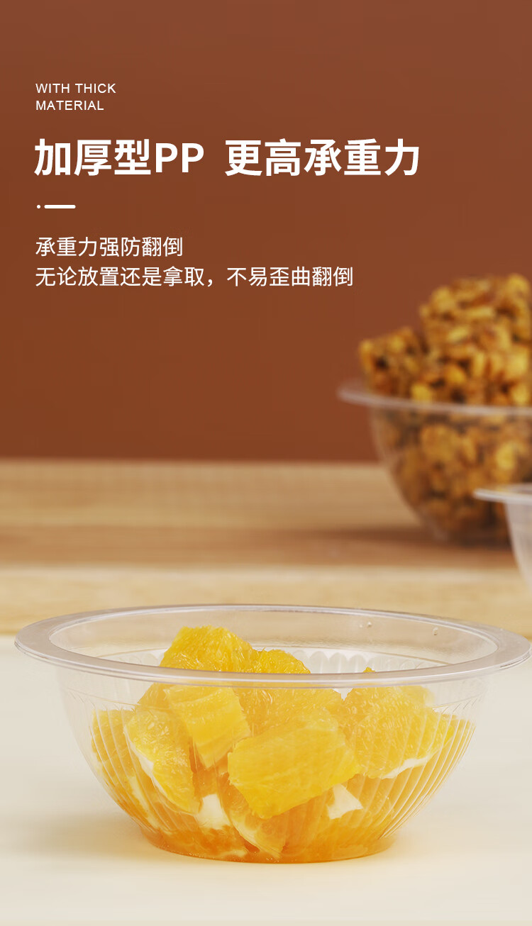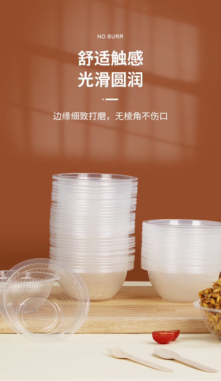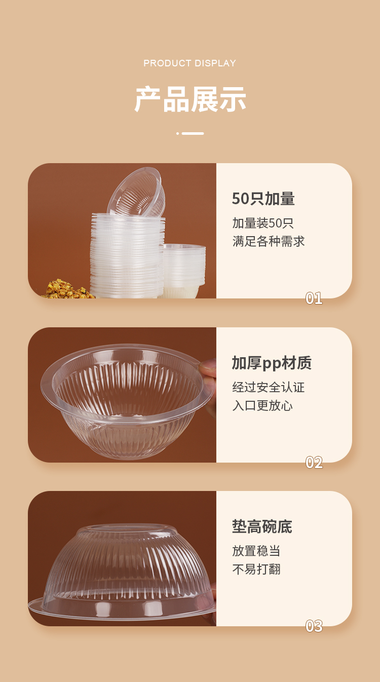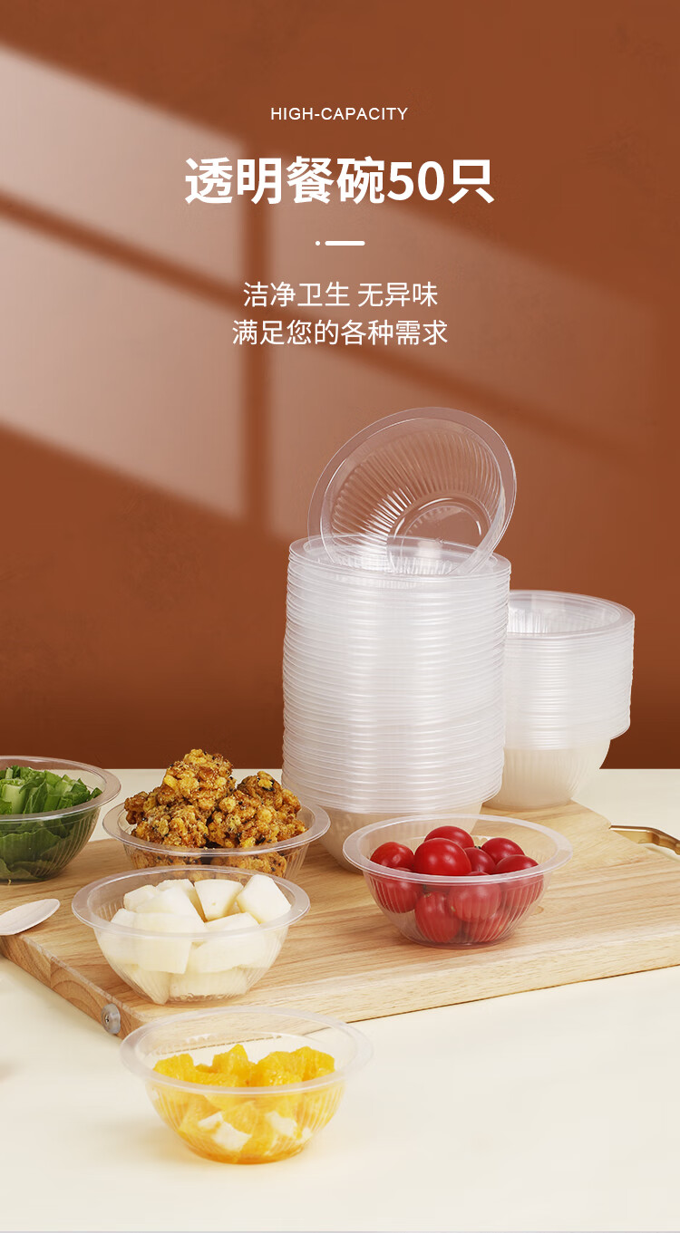 优奥一次性碗345ml*50只加厚透明饺子汤圆汤碗户外野餐露营餐具免洗