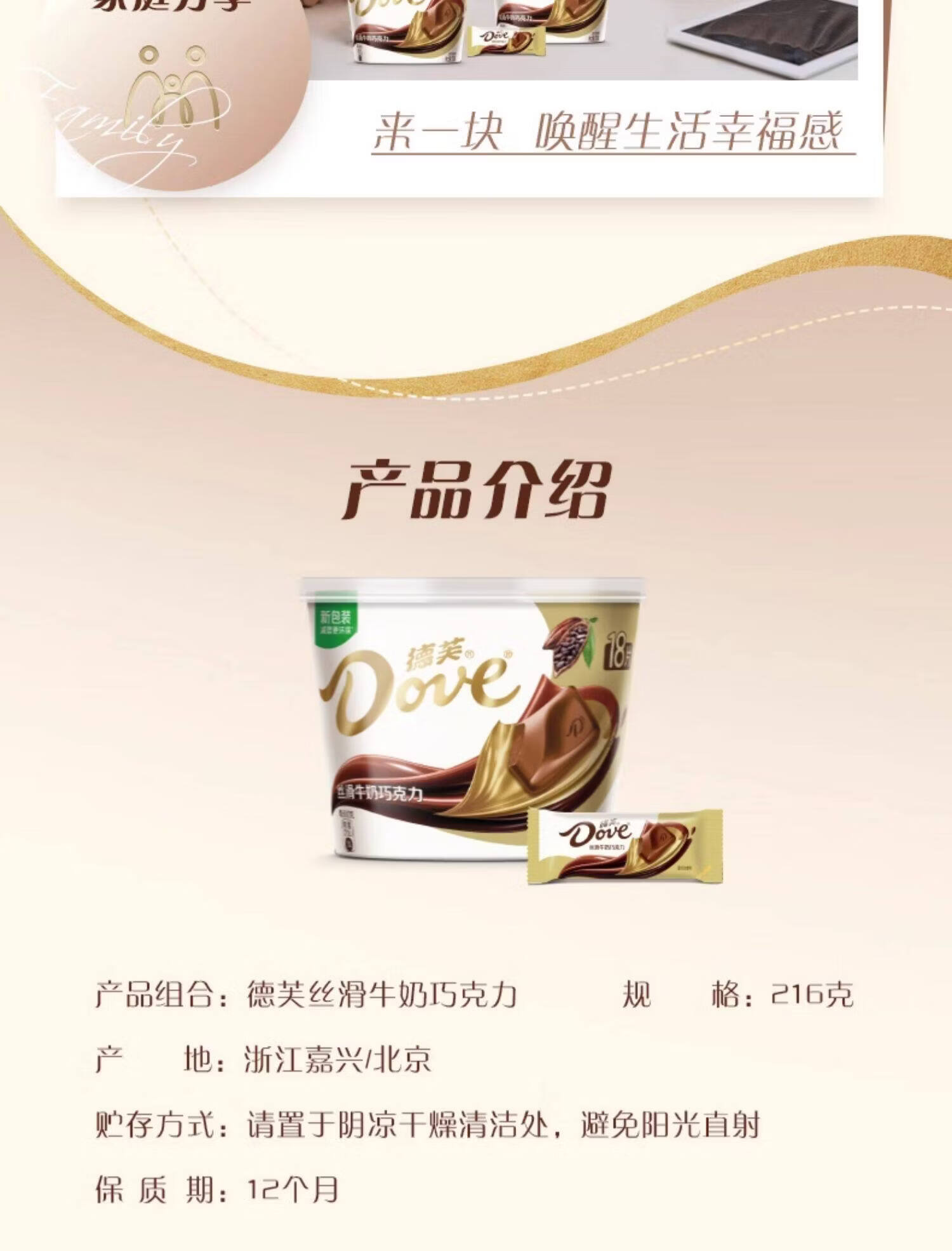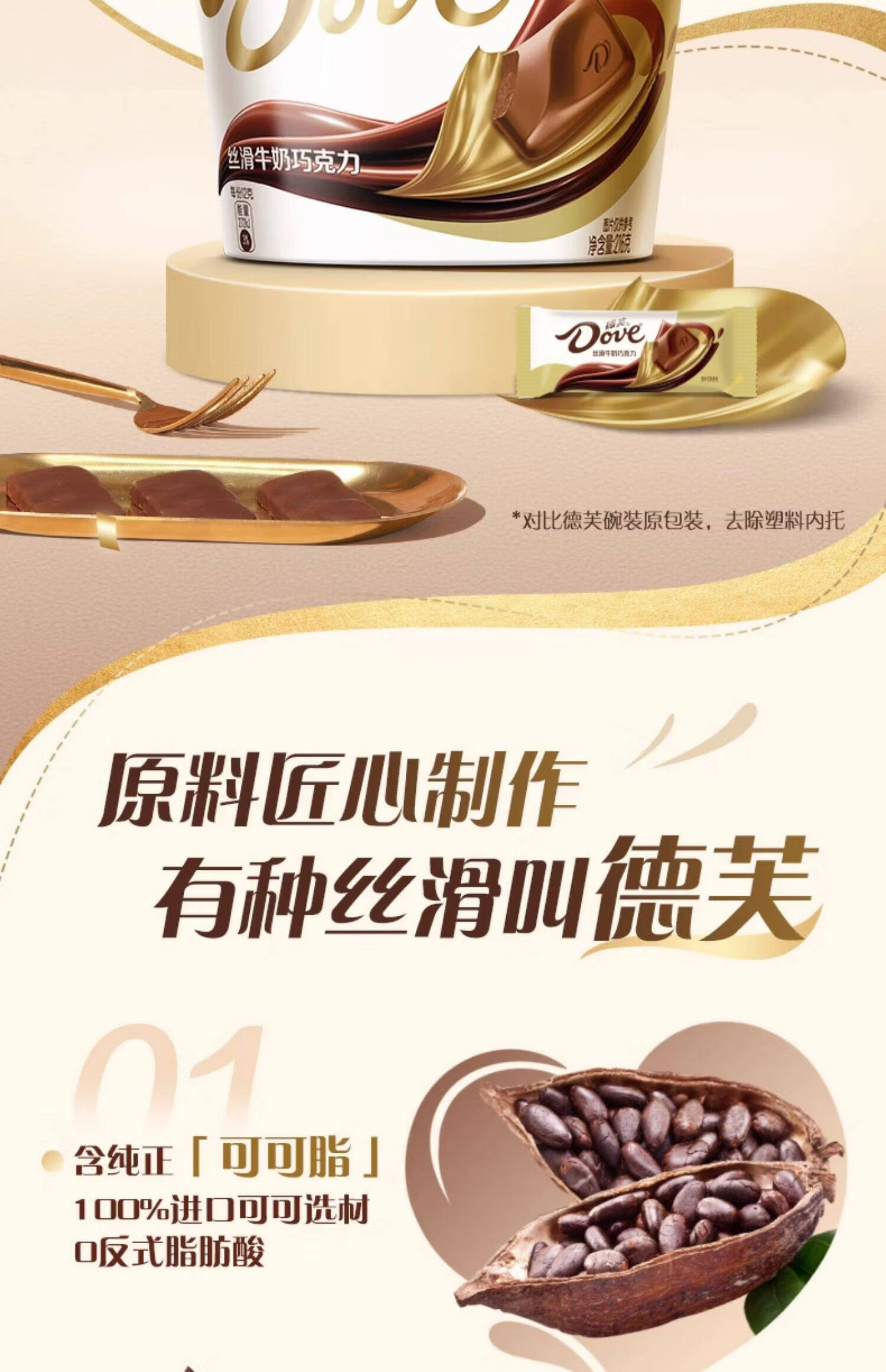 德芙牛奶丝滑巧克力216g碗装纯可可脂多口味休闲零食官方旗舰店 德芙丝滑巧克力216g*2赠袋装84g德芙丝滑