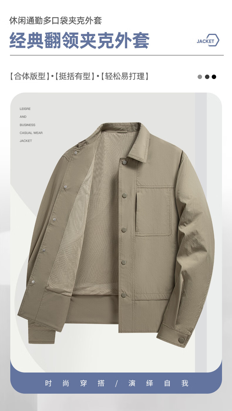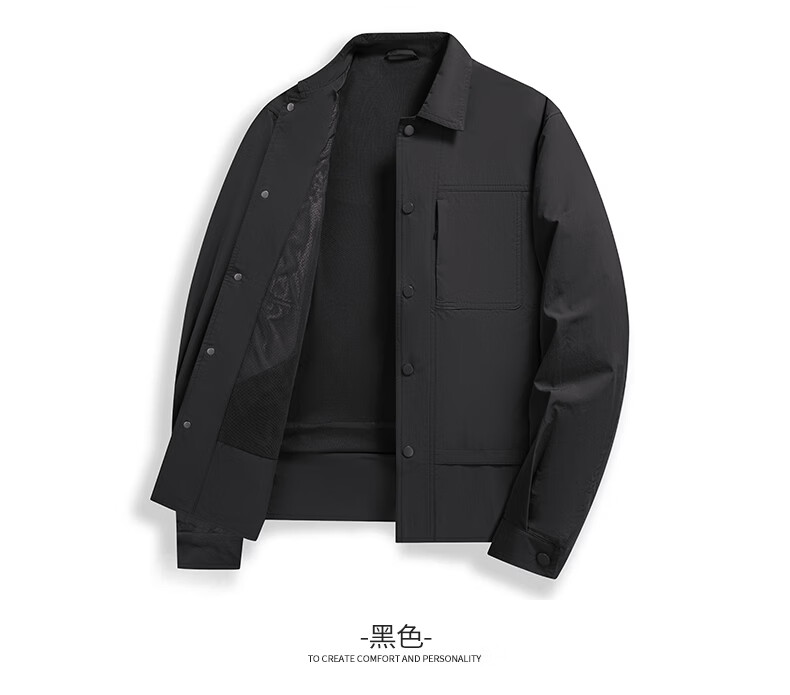 SHANSHAN杉杉男士夹克2026春季新款翻领休闲商务外套长袖衣服百搭时尚上衣 黑色 XL /180