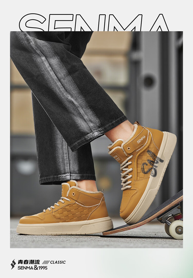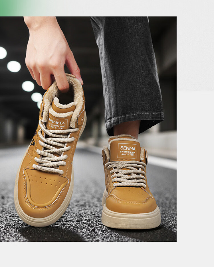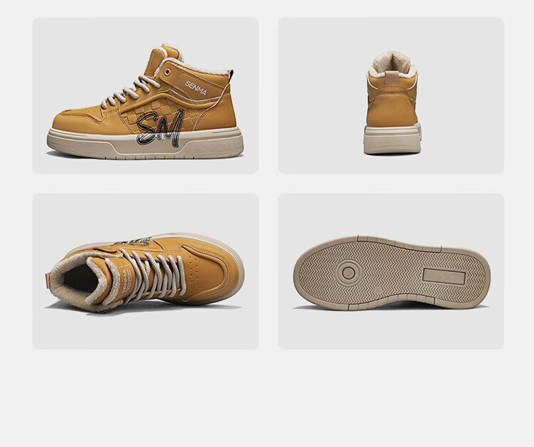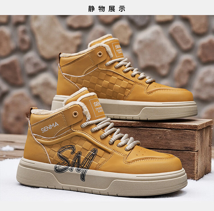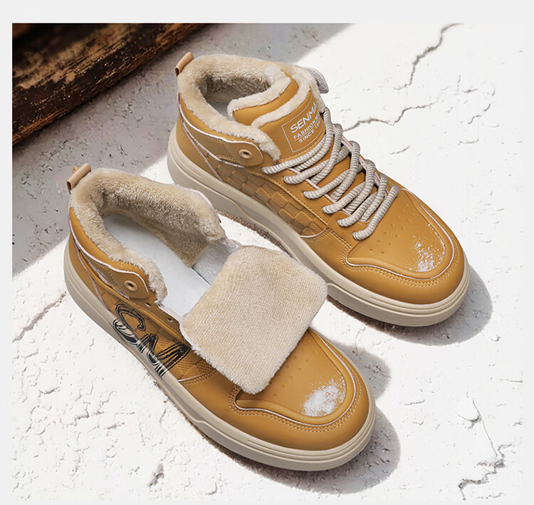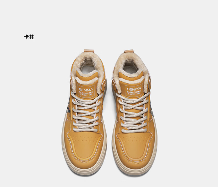 森馬森马男鞋冬季百搭青少年加绒保暖二棉鞋运动休闲复古麦色板鞋潮鞋 卡其【基础款】 39 标准码数/现货秒发