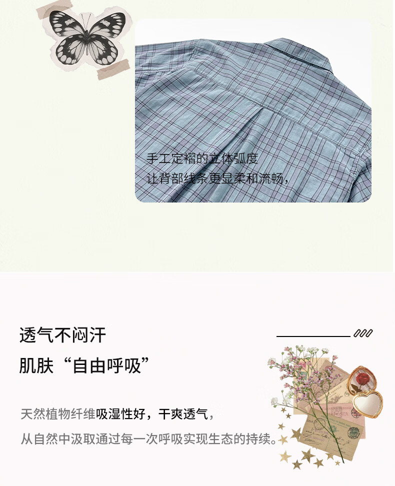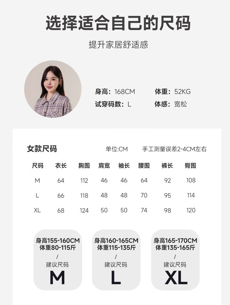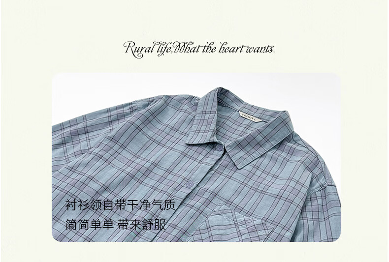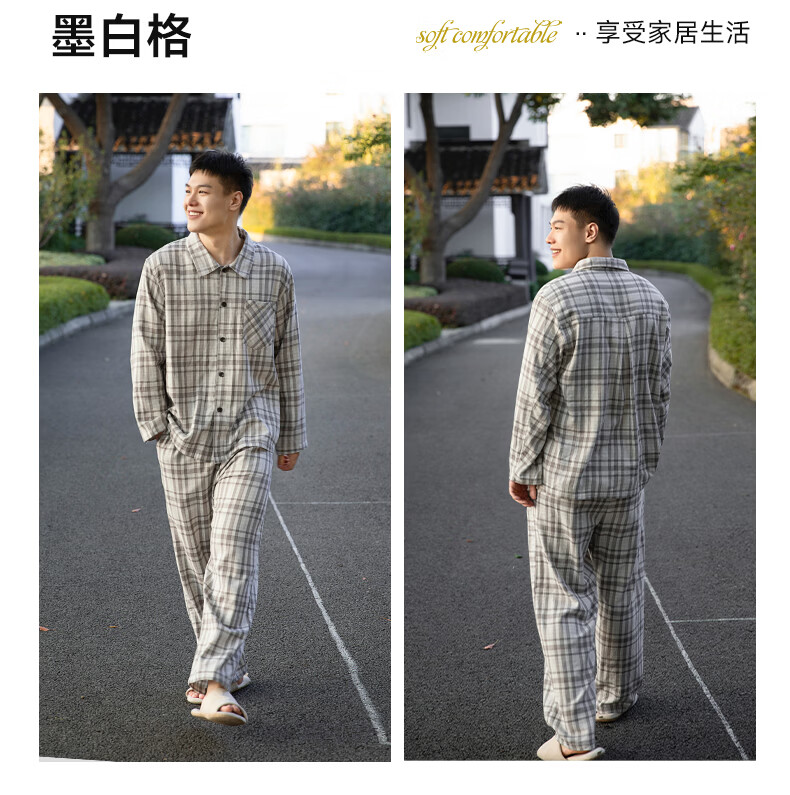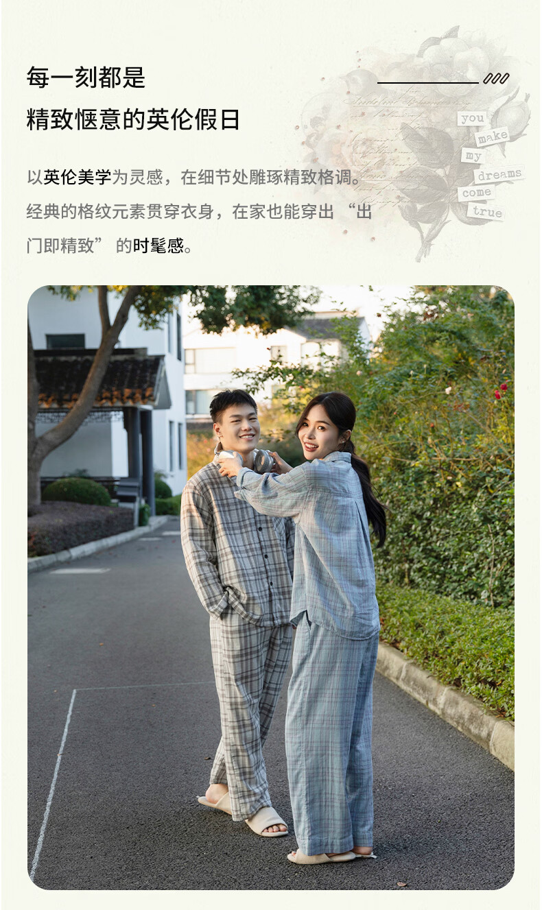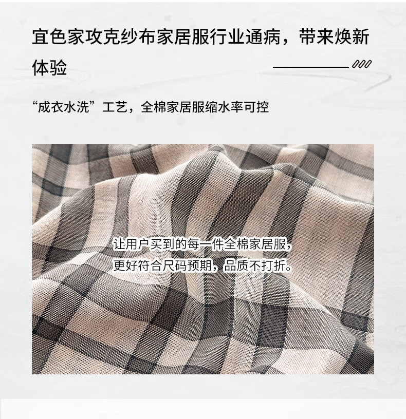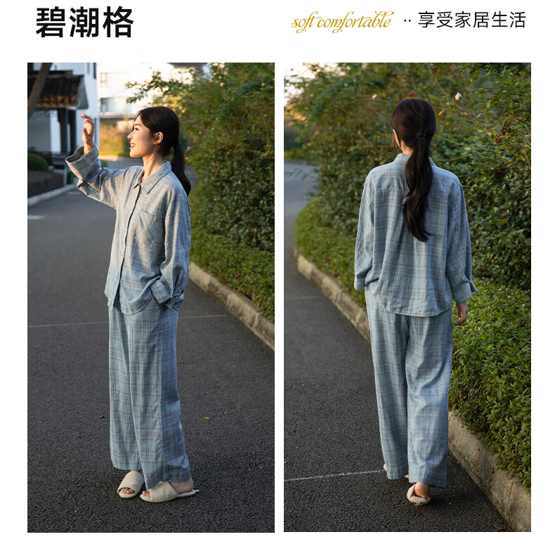 宜色家纯棉睡衣家居服 双层纱翻领长袖格纹情侣家居服A类透气睡衣英伦风 女款-粉黛格 小英伦·里约书店 L (女115-135斤/男145-165斤)