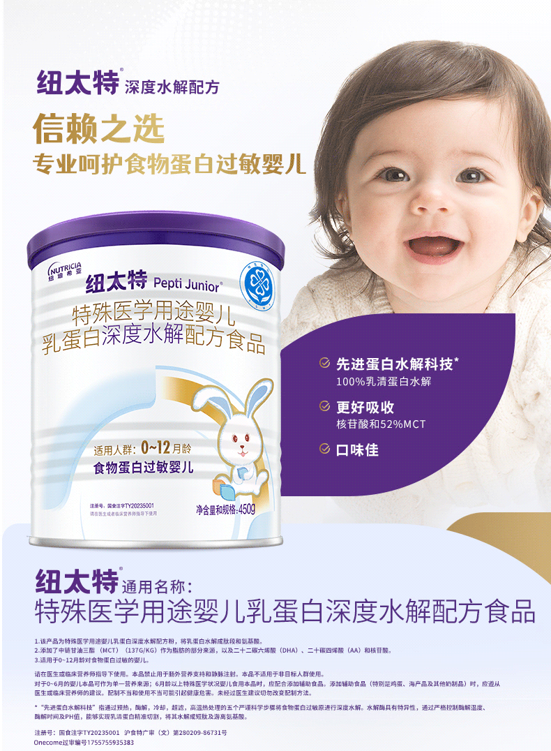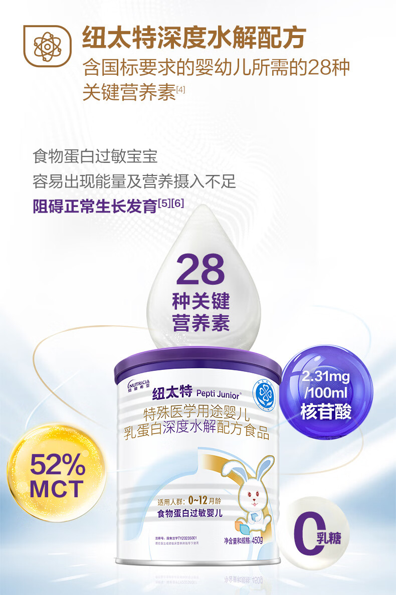纽太特 特殊医学用途婴儿乳蛋白深度水解配方食品 0-12月适用 450g