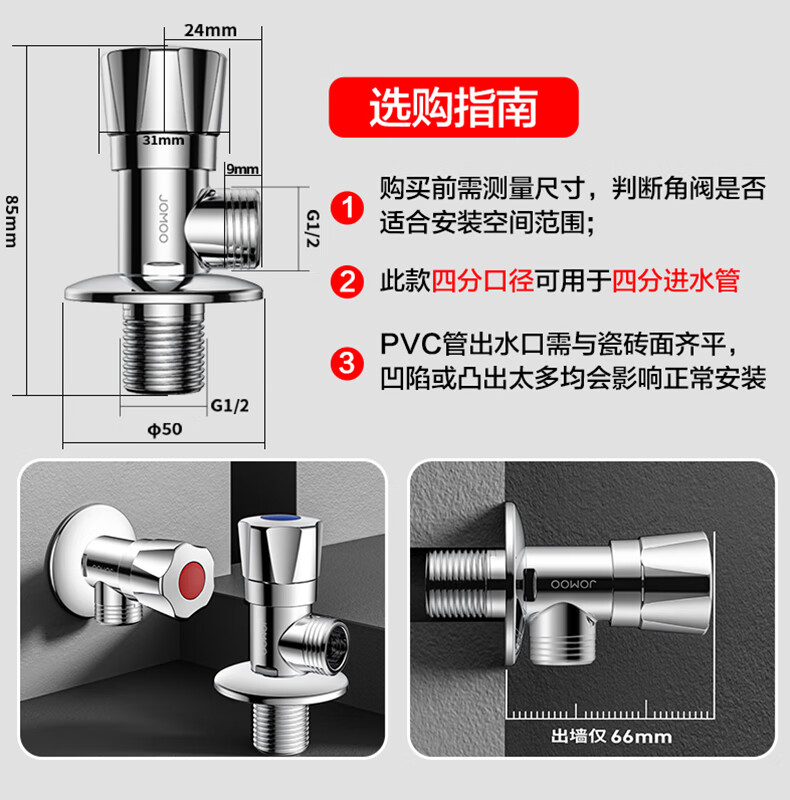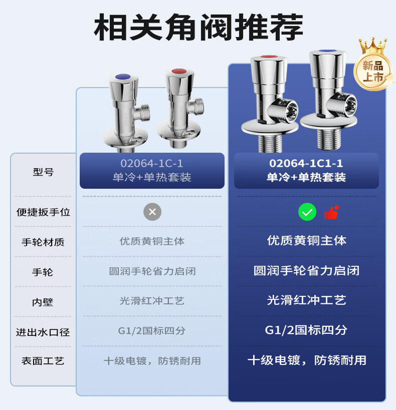九牧(JOMOO)黄铜加厚角阀三角阀1冷1热套装 02064-1C1-1