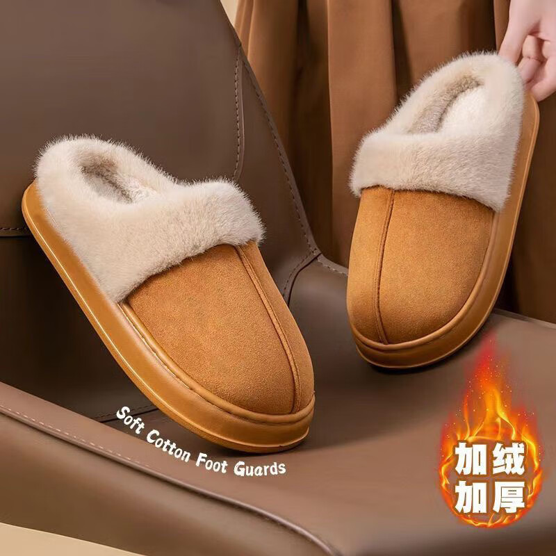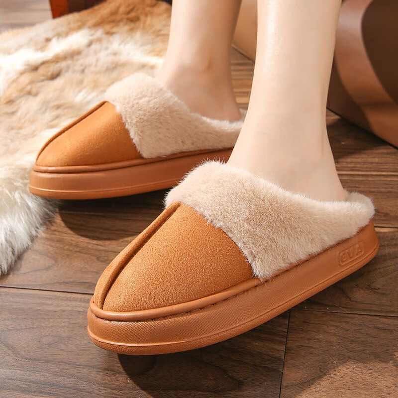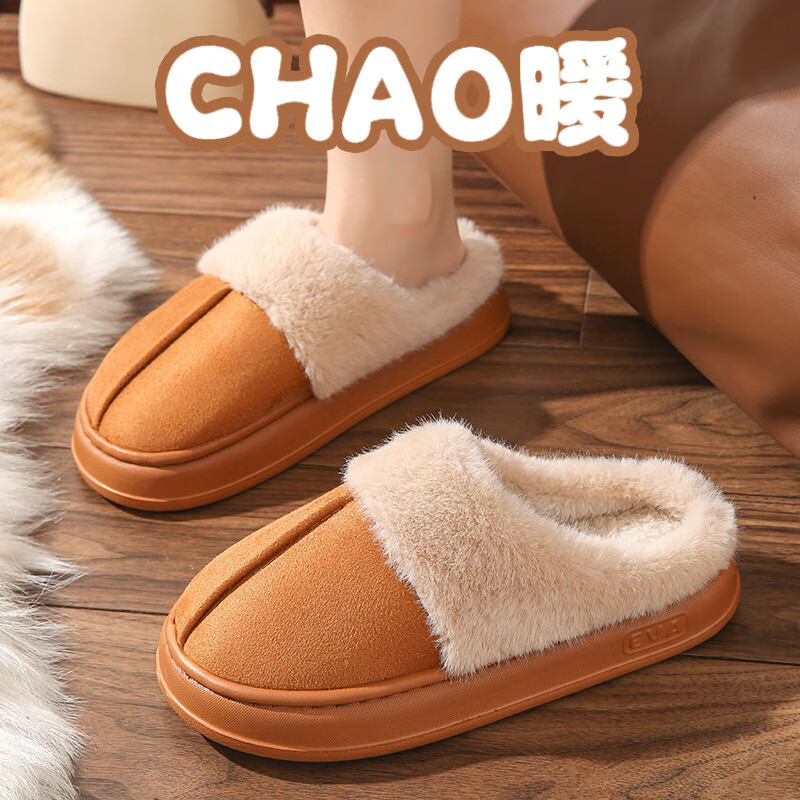 4.5CM厚底2025年新款麂皮绒外穿棉拖鞋女秋冬室内居家用毛毛棉 8805厚底4.5公分-黄色 36-37 适合35-36