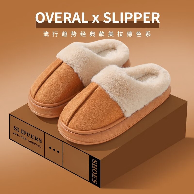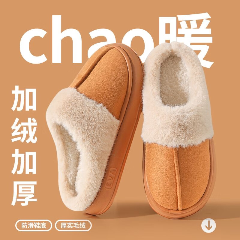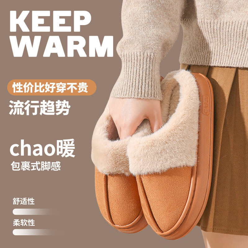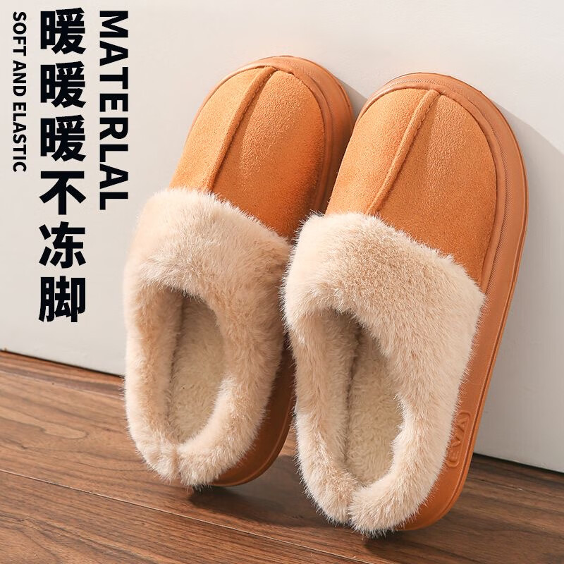 棉拖男棉拖女居家棉拖鞋加绒棉拖鞋男保暖鞋月子鞋女包头拖女 卡其色 38-39 偏小一码