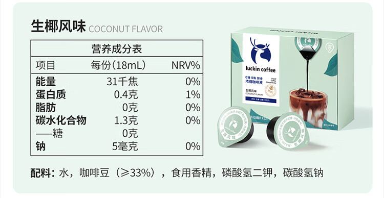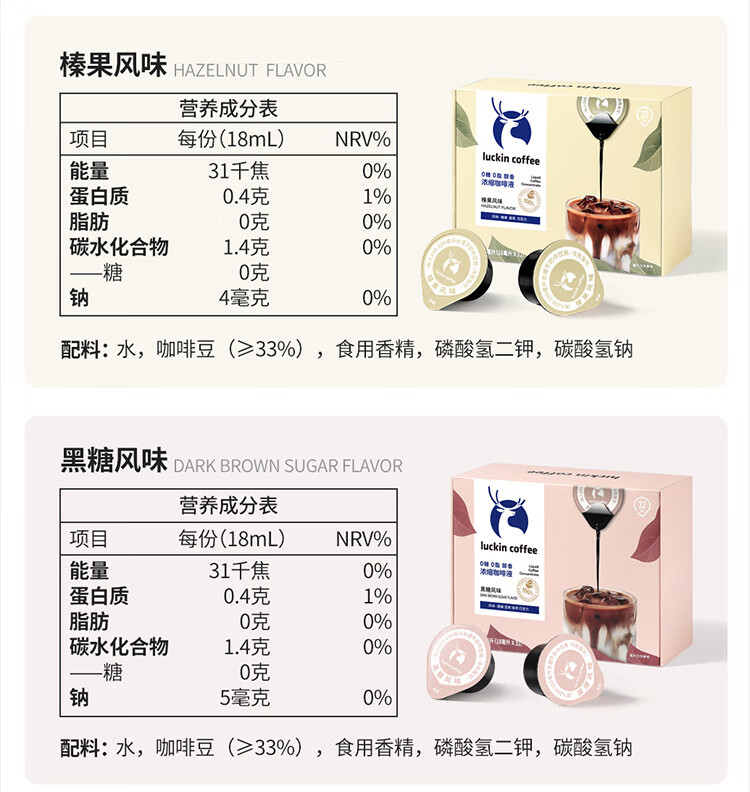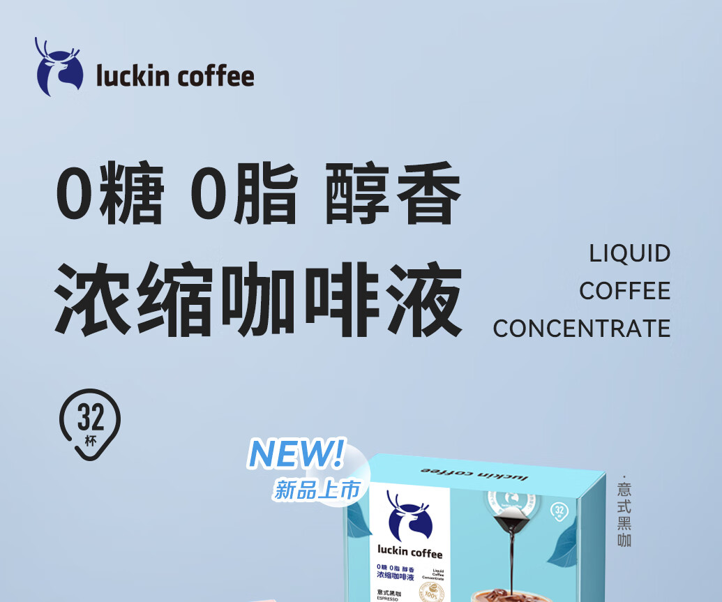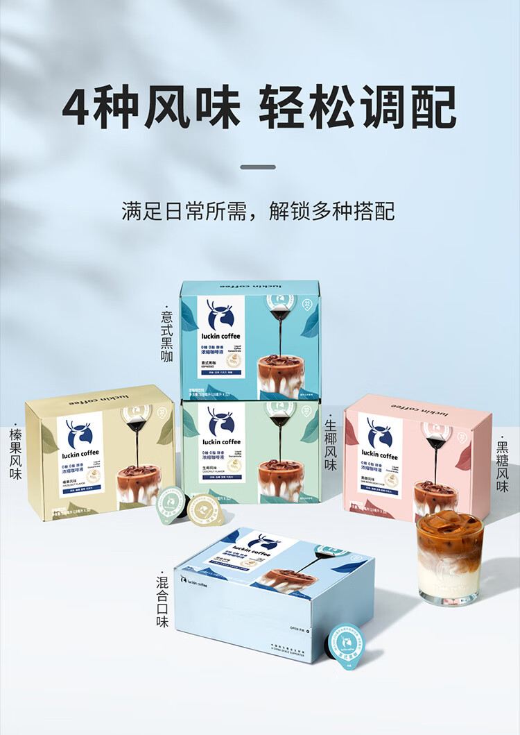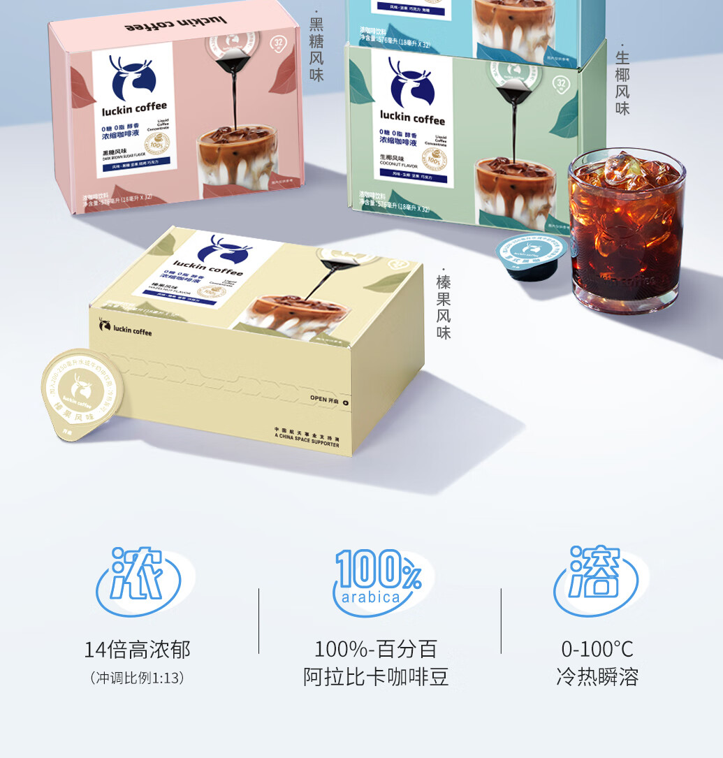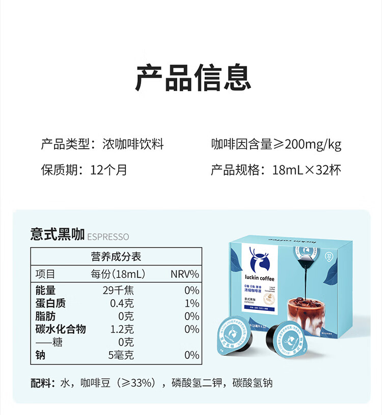瑞幸咖啡0糖0脂醇香浓缩咖啡液意式黑咖18ml*32颗/盒冰美式生椰拿铁黑咖啡
