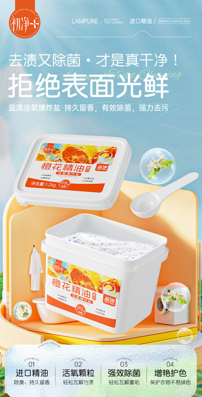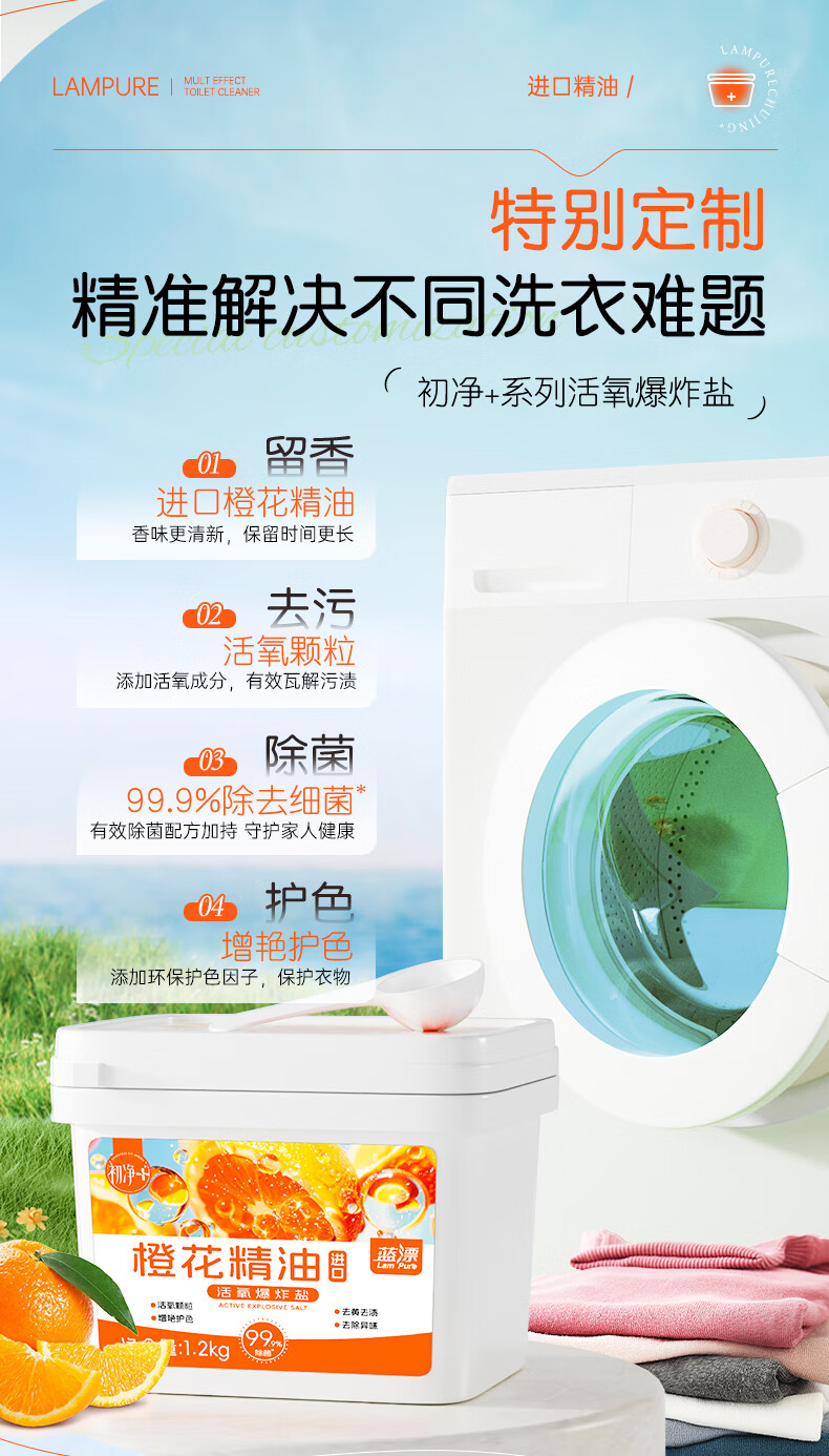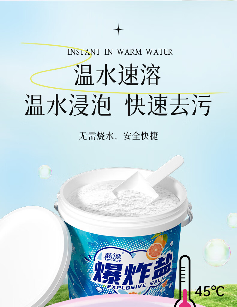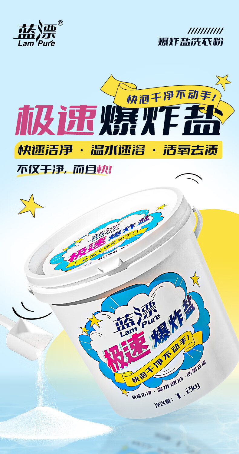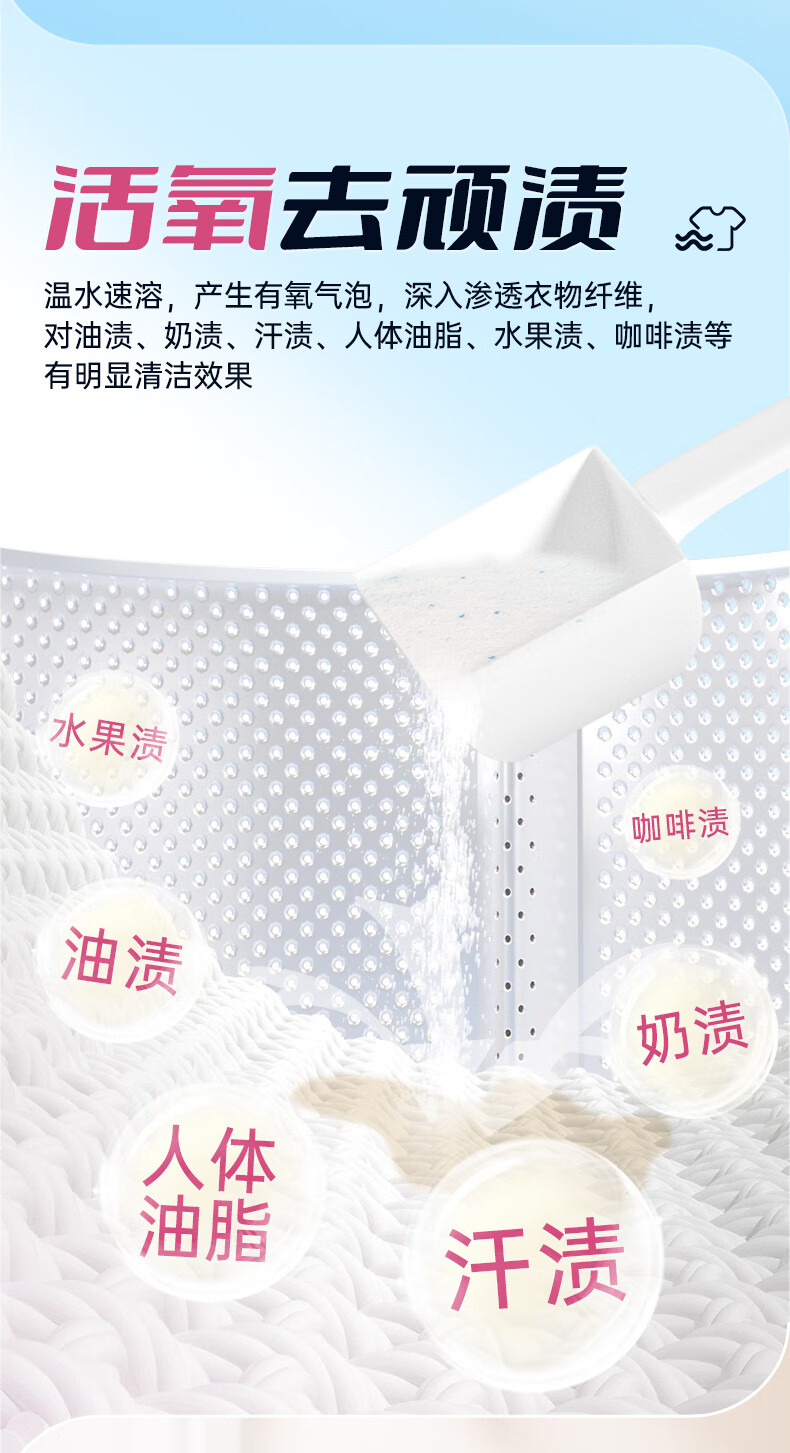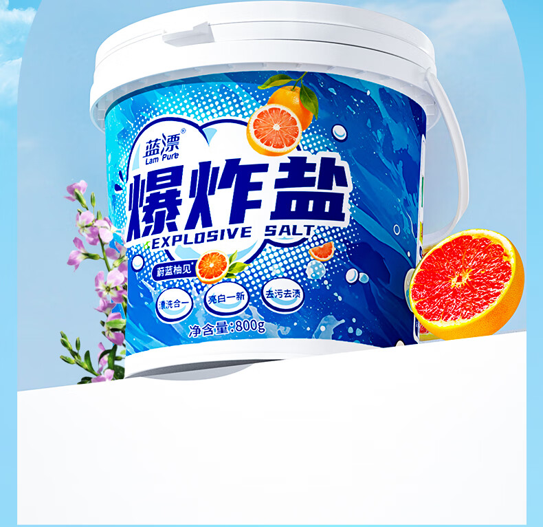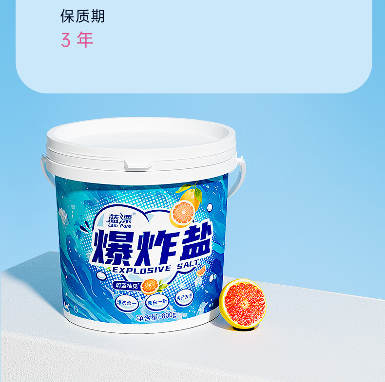 蓝漂活氧爆炸盐校服净彩漂粉学生白鞋白衣衬衫去顽渍亮白增艳衣鞋焕新 800g 1桶 【全新升级西柚香】