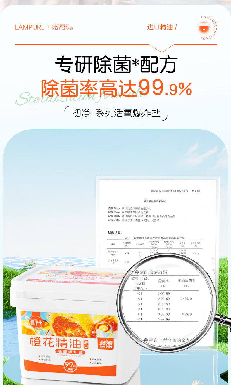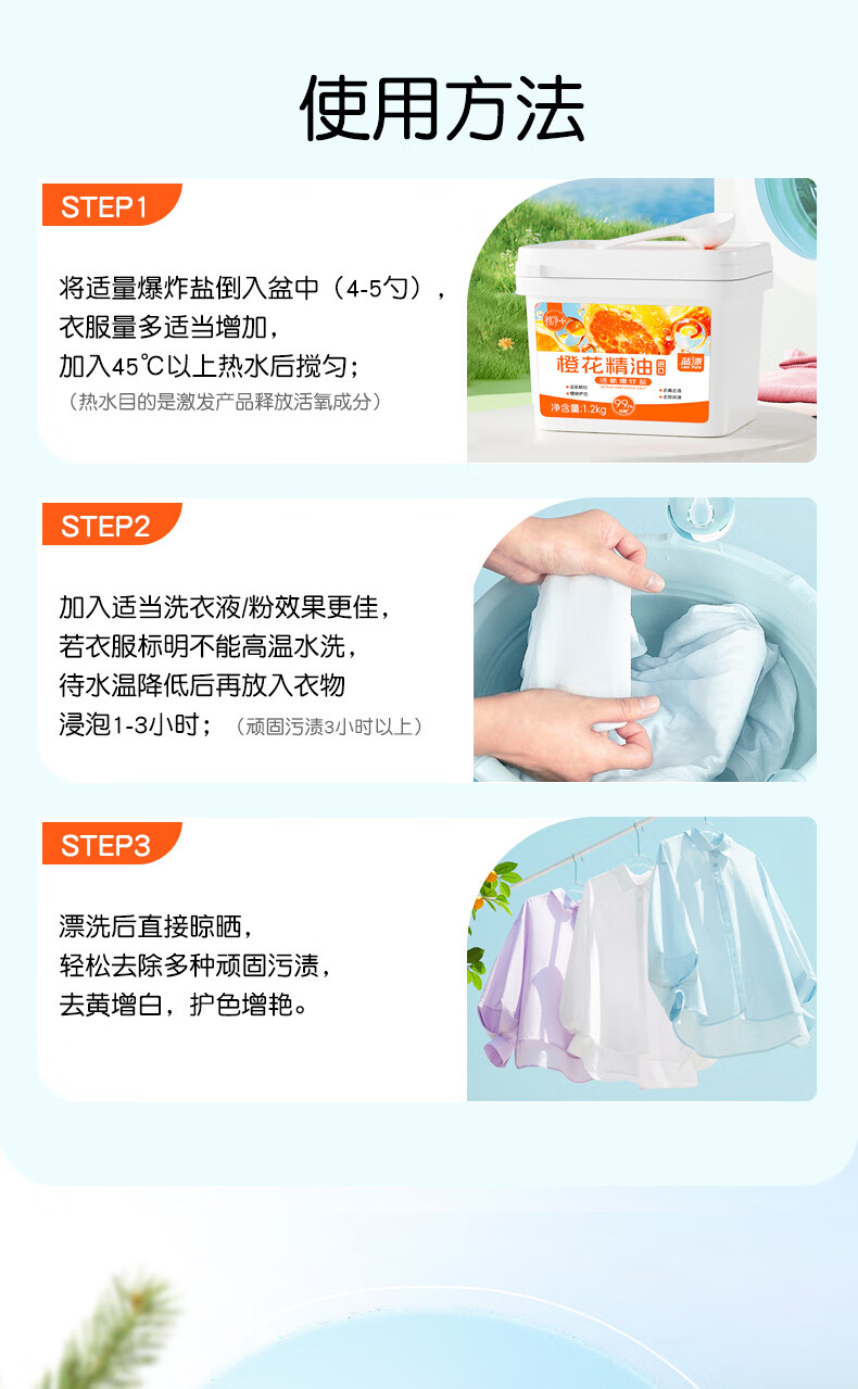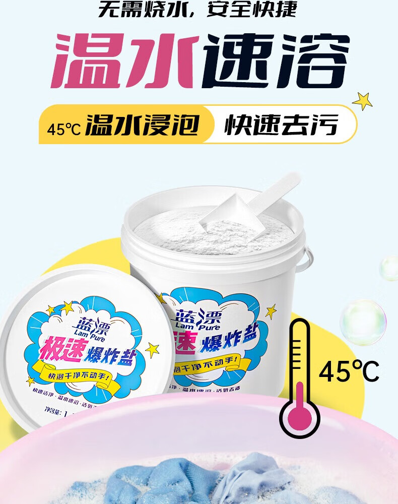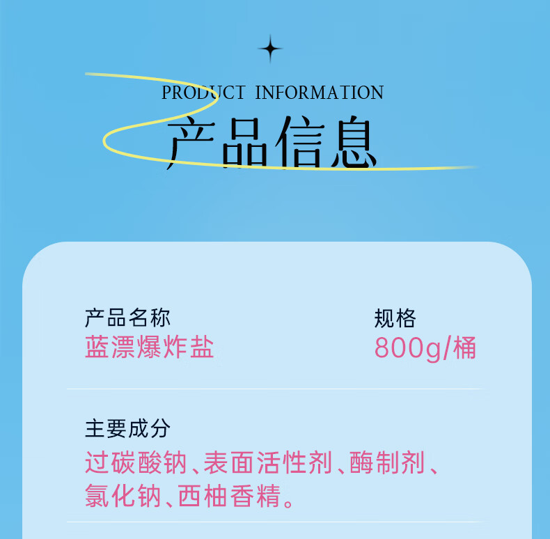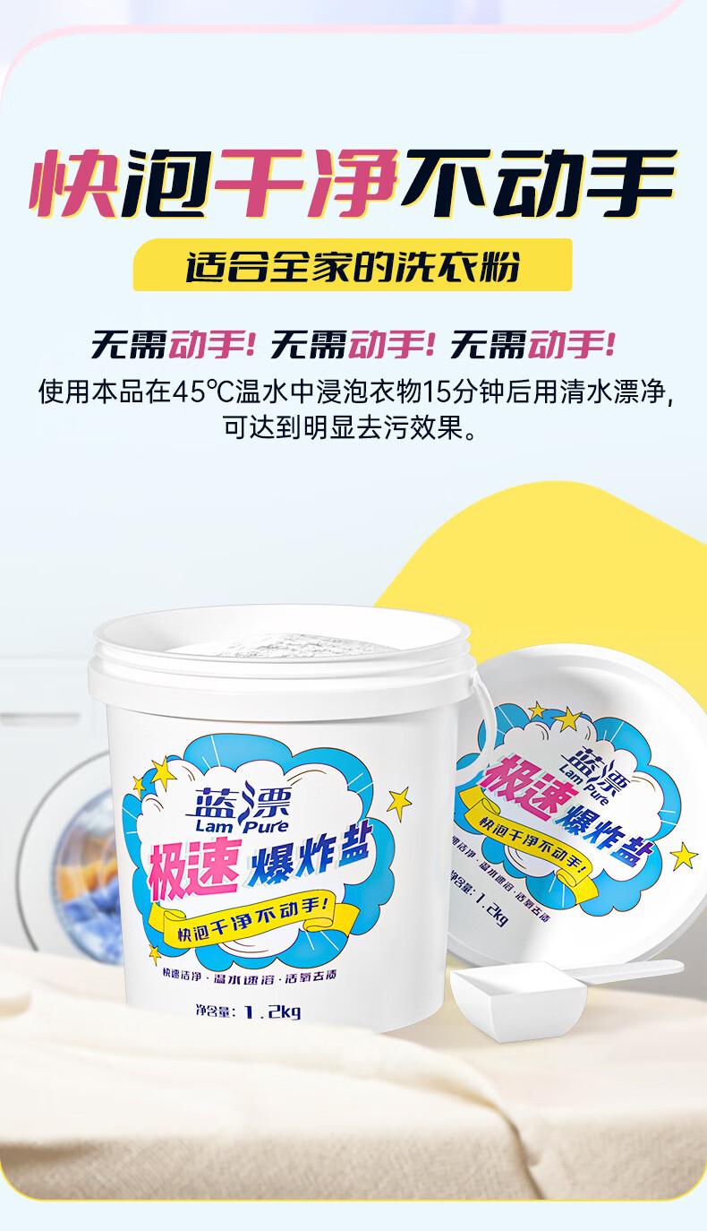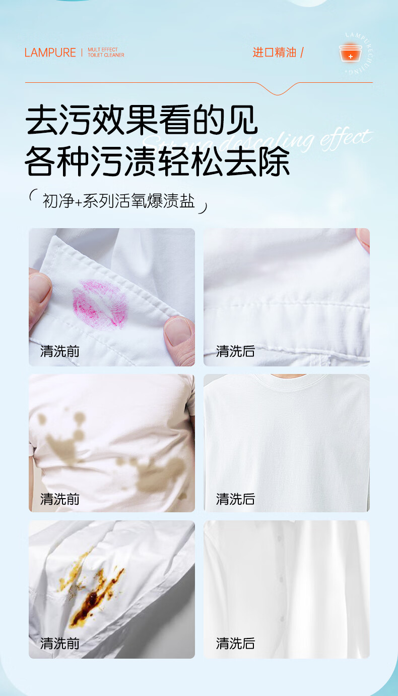 蓝漂活氧爆炸盐校服净彩漂粉学生白鞋白衣衬衫去顽渍亮白增艳衣鞋焕新 800g 1桶 【全新升级西柚香】