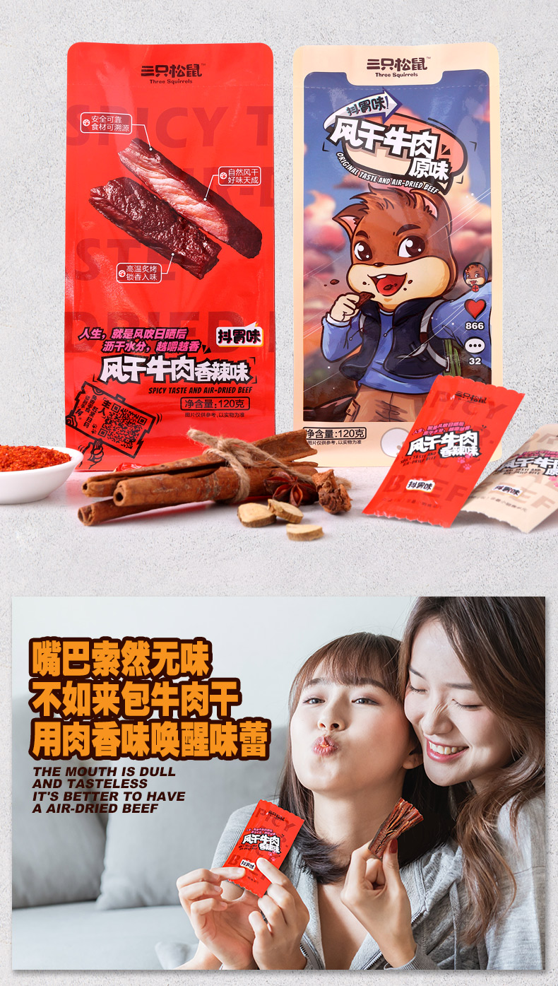 三只松鼠 风干牛肉条原味120g袋装休闲零食内蒙古特产手撕牛肉肉干肉脯
