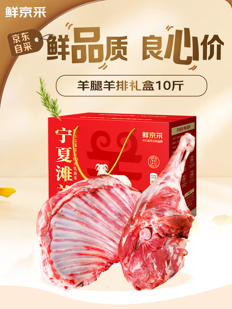 鲜京采【京东超市 年货礼盒】宁夏滩羊肉生鲜羊腿羊排组合10斤 源头直发