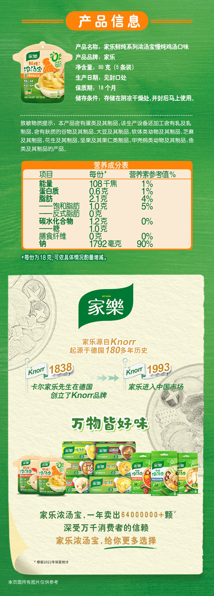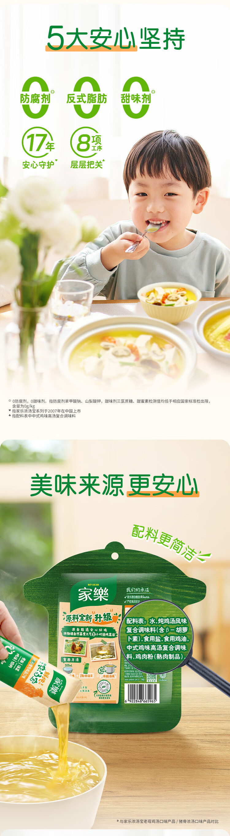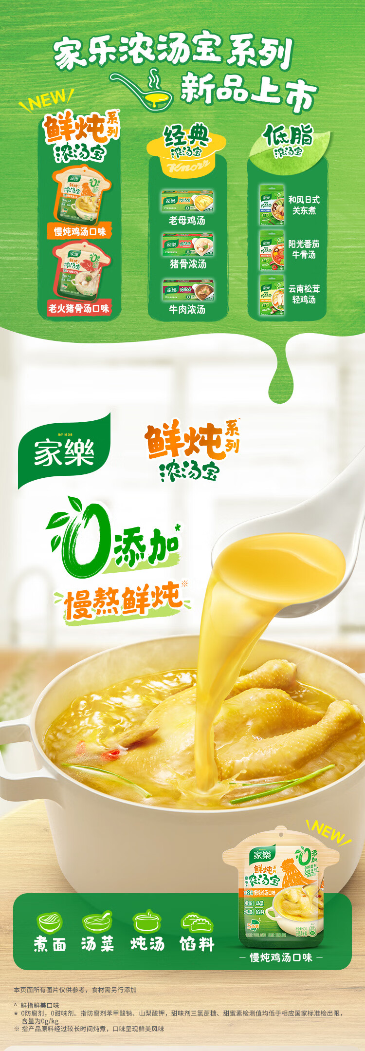 家乐鲜炖浓汤宝0添加防腐剂 水煮菜面条高汤料 老母鸡汤味18g*5条