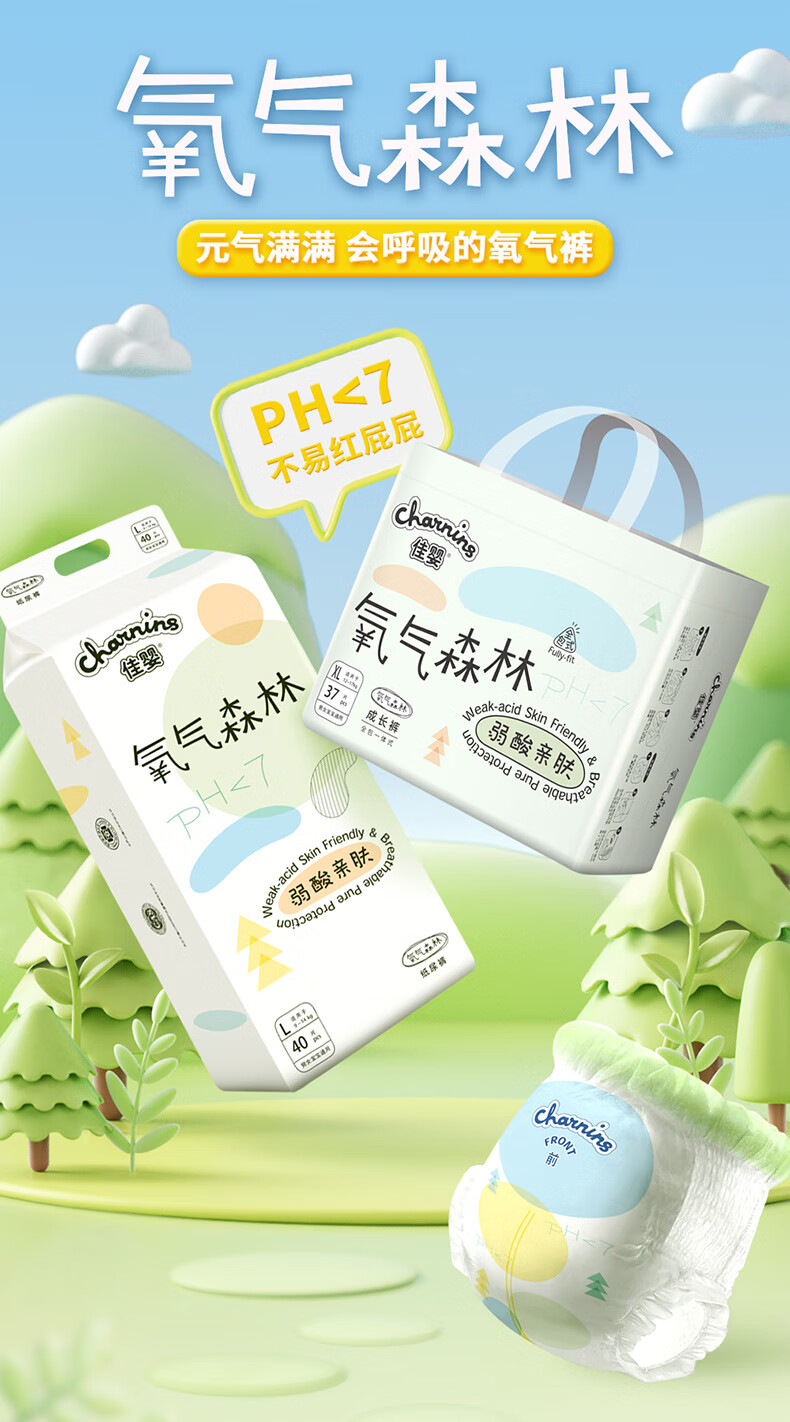 佳婴氧气森林拉拉裤XL码74片(12-17KG)全包臀婴儿尿不湿亲肤成长裤