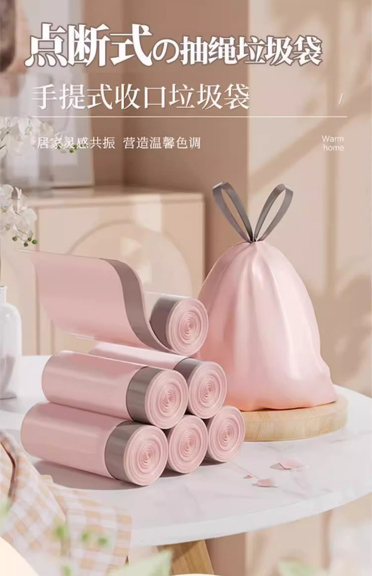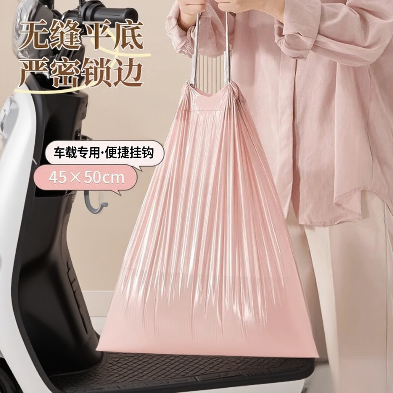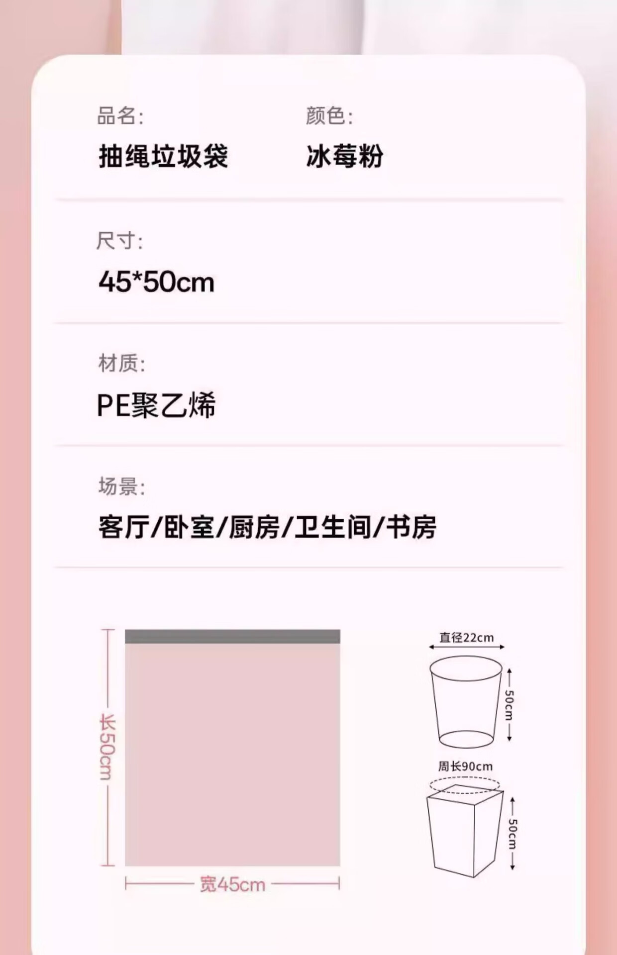 电动车冰莓粉加厚大号粉色垃圾袋学生宿舍办公室一次性抽绳式 冰莓粉垃圾袋【2卷】20只