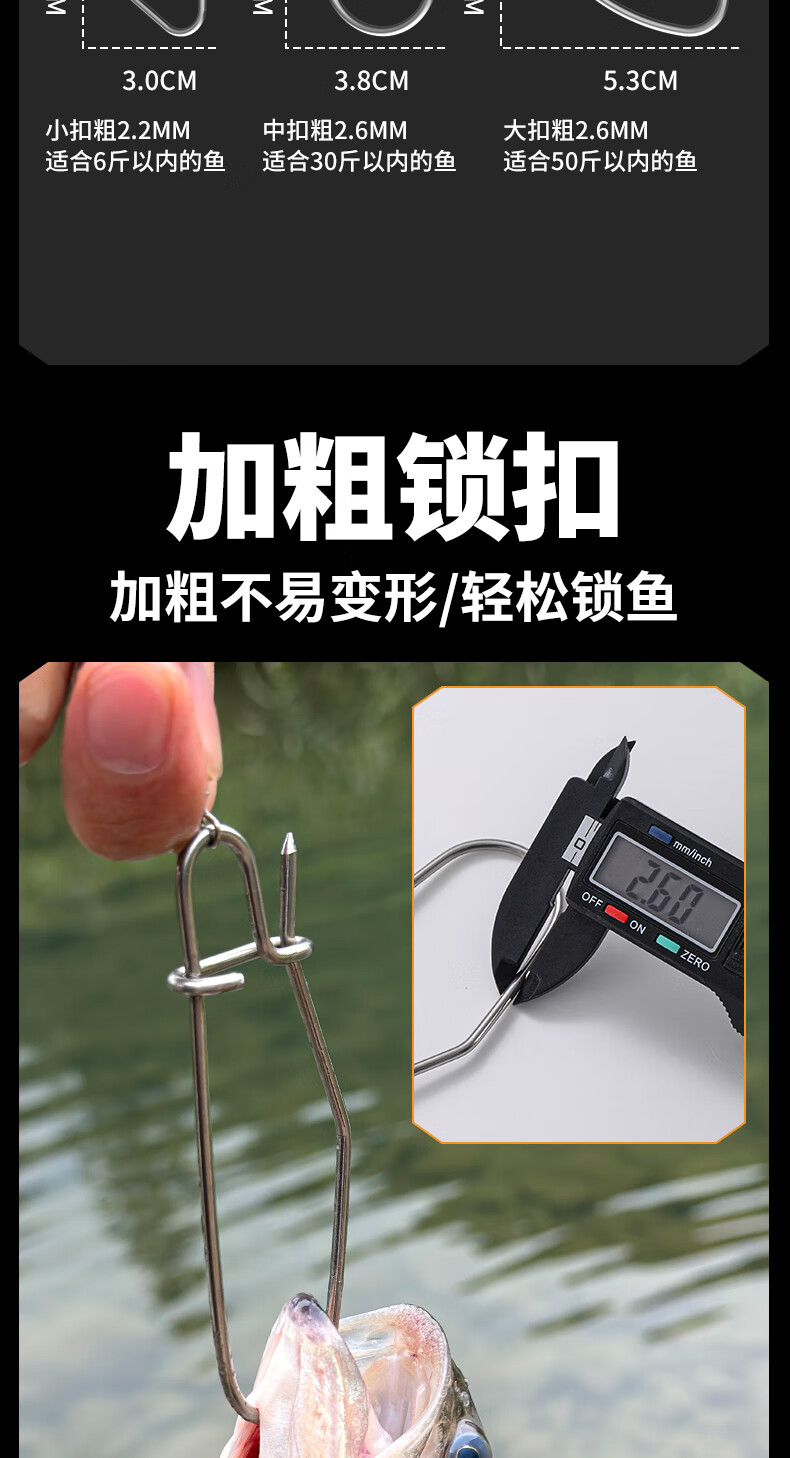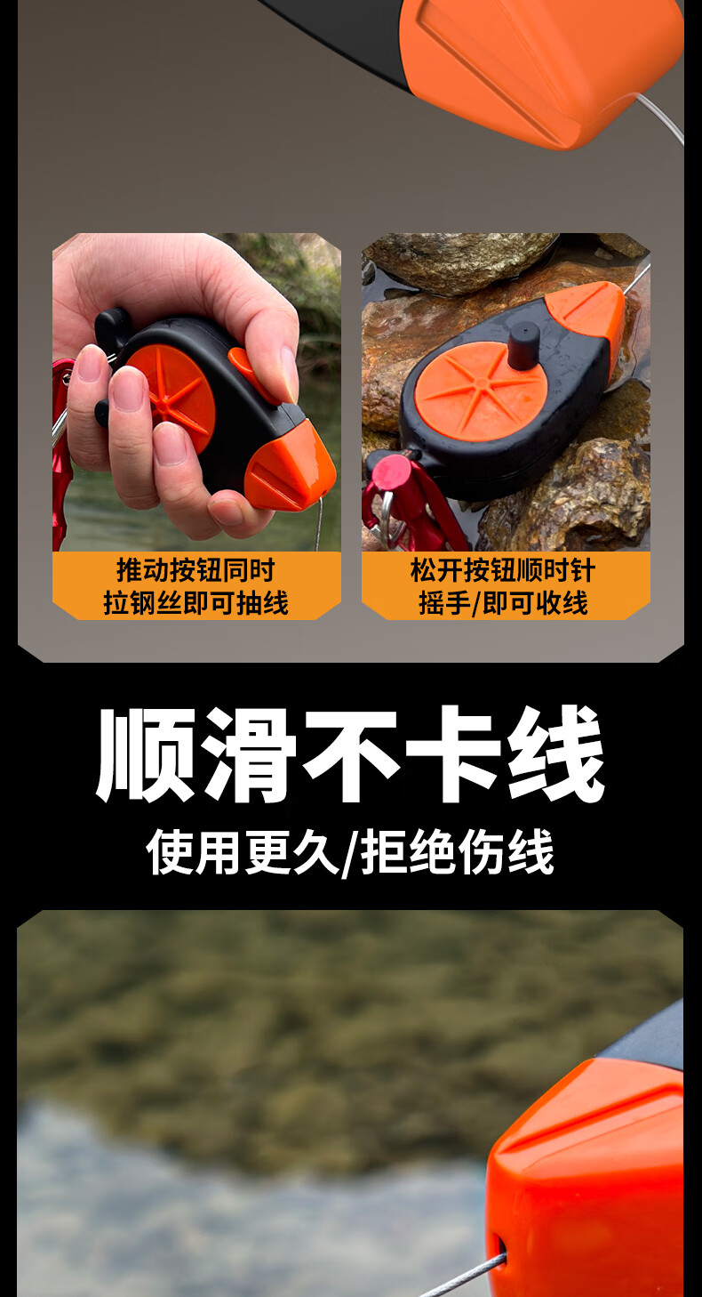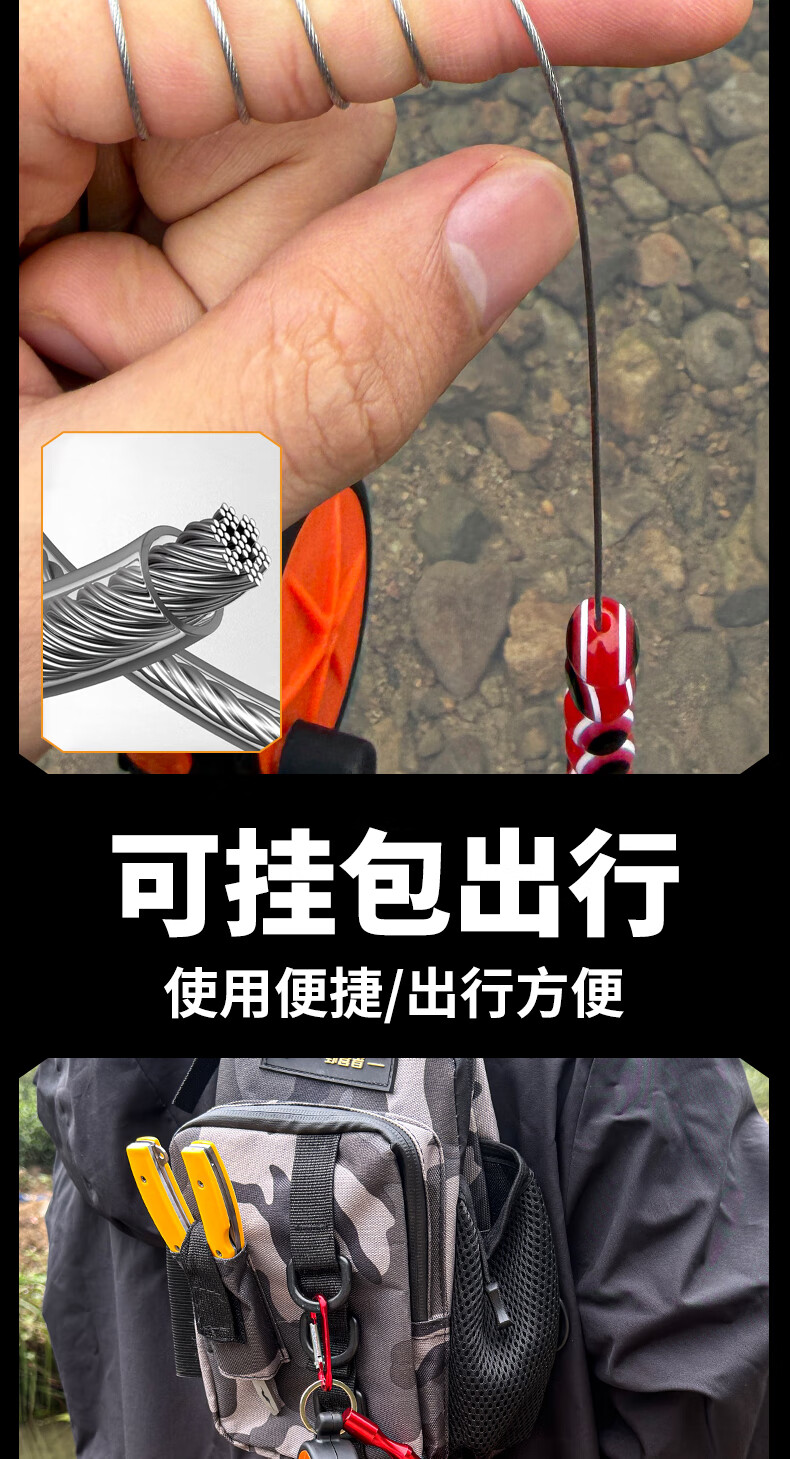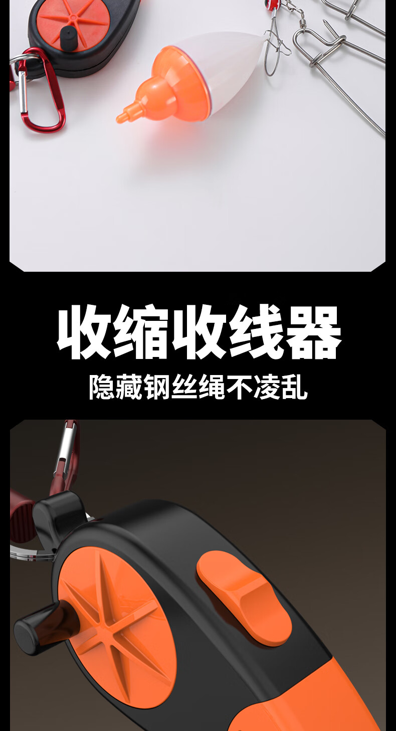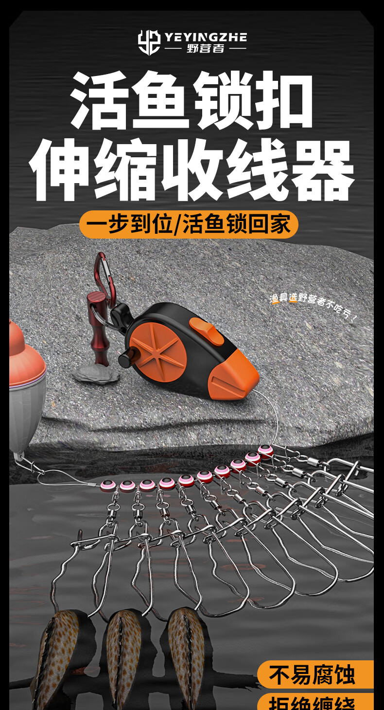 野营者伸缩路亚活鱼扣鱼锁不锈钢大物鲢鳙巨物翘嘴钢丝绳挂鱼锁扣 收线器隐藏款【小5扣】便携伸缩