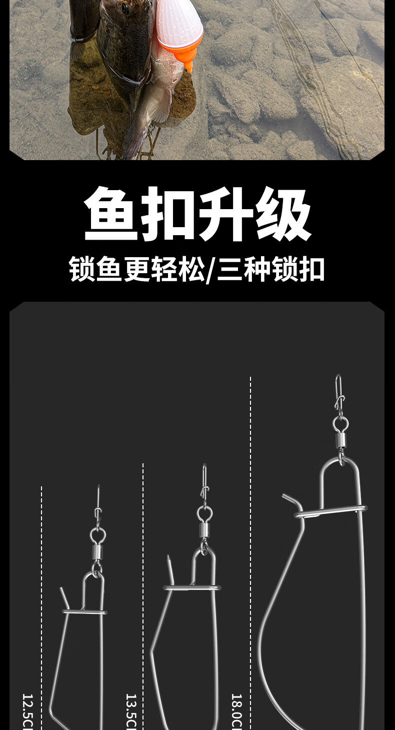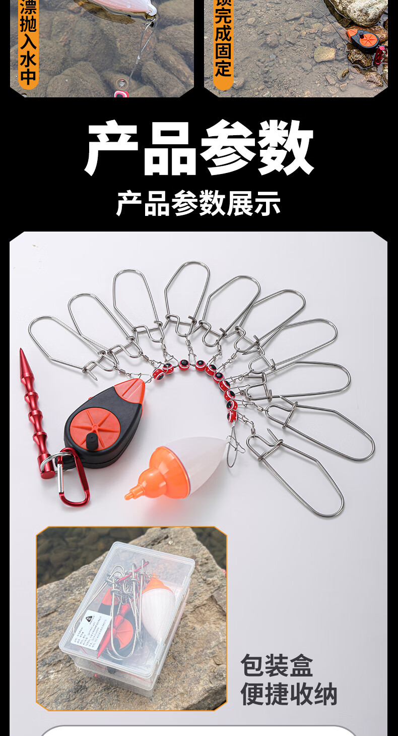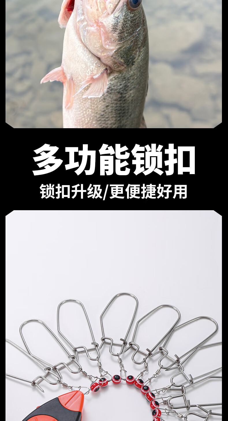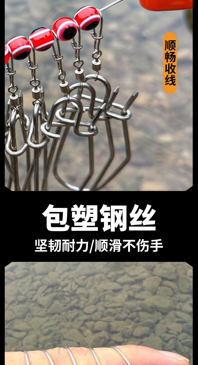 野营者伸缩路亚活鱼扣鱼锁不锈钢大物鲢鳙巨物翘嘴钢丝绳挂鱼锁扣 收线器隐藏款【小5扣】便携伸缩