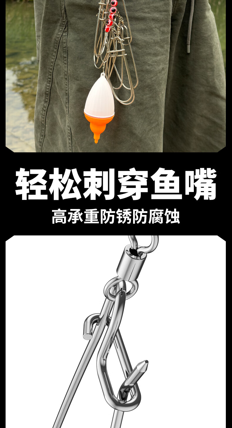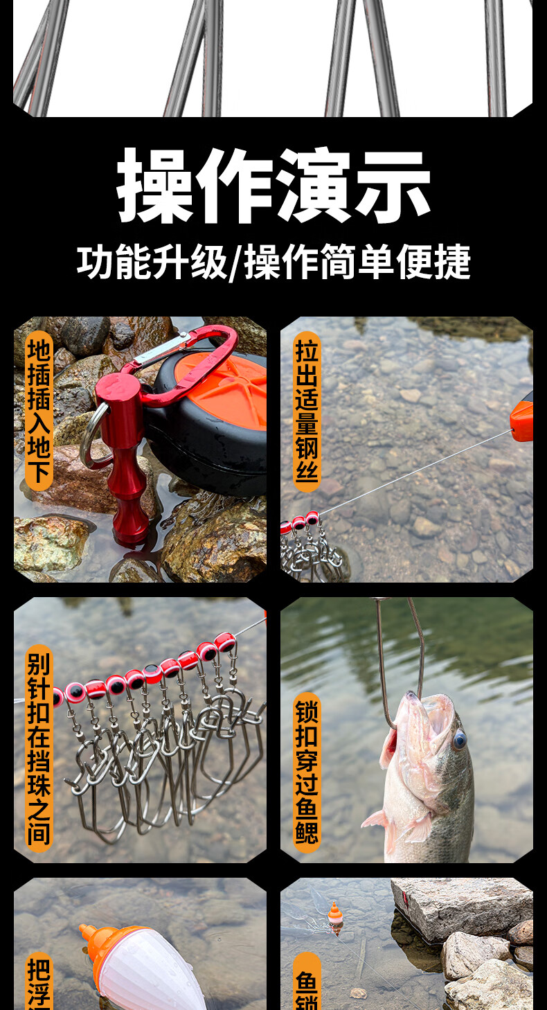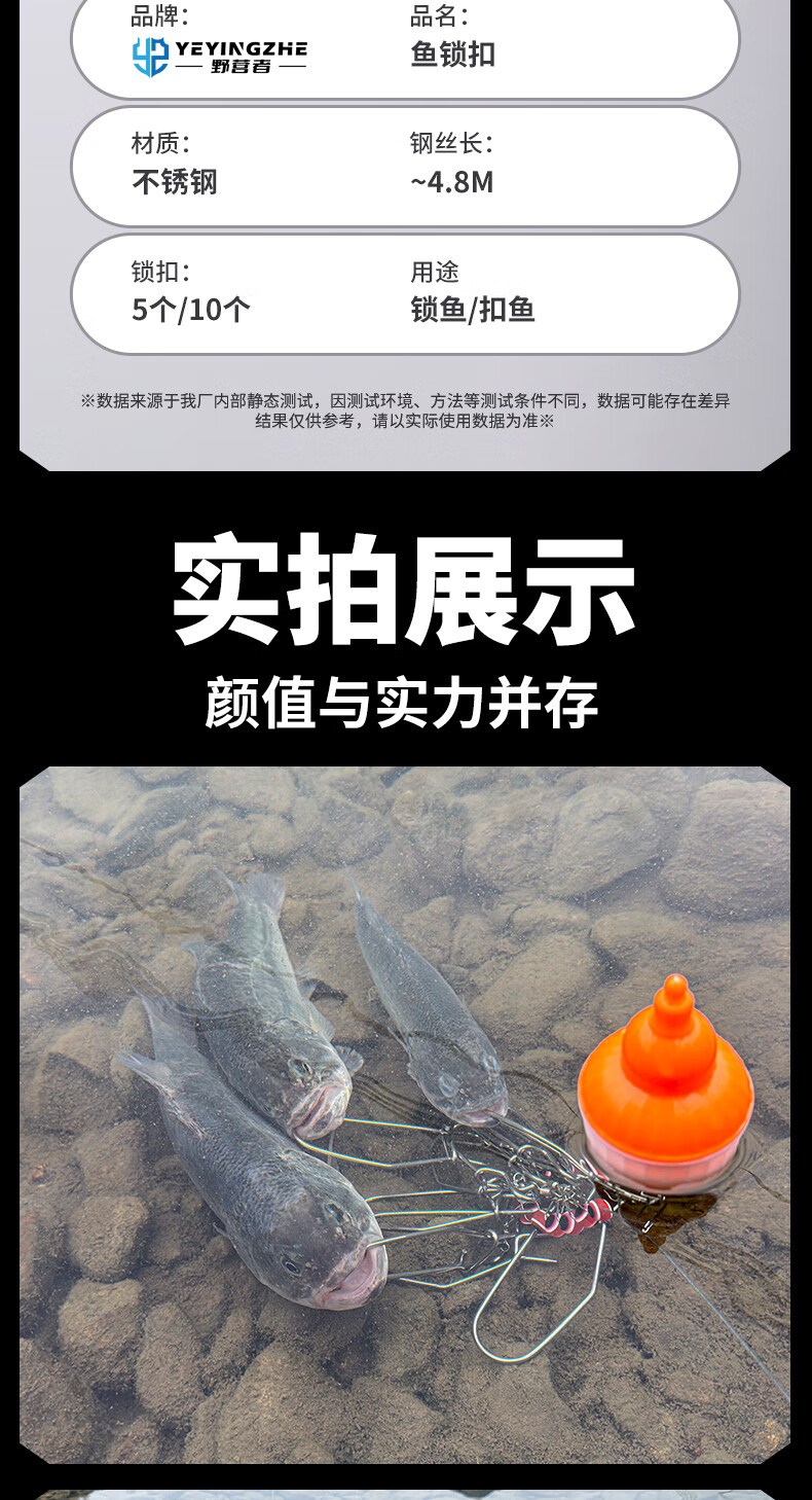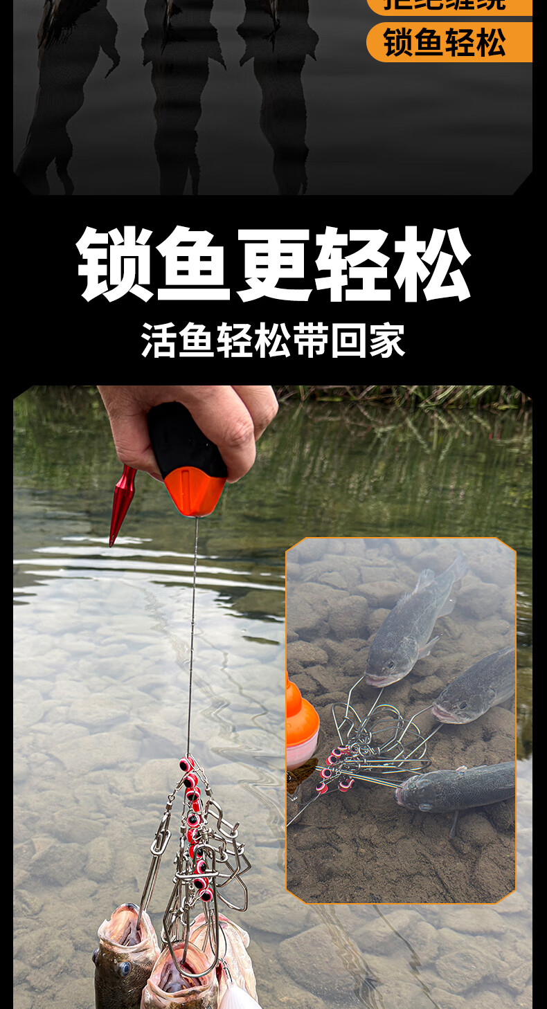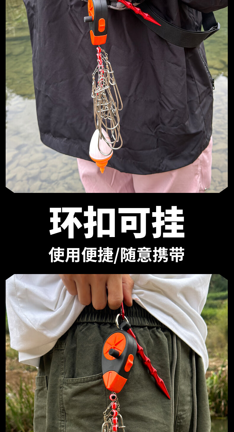 野营者伸缩路亚活鱼扣鱼锁不锈钢大物鲢鳙巨物翘嘴钢丝绳挂鱼锁扣 收线器隐藏款【小5扣】便携伸缩