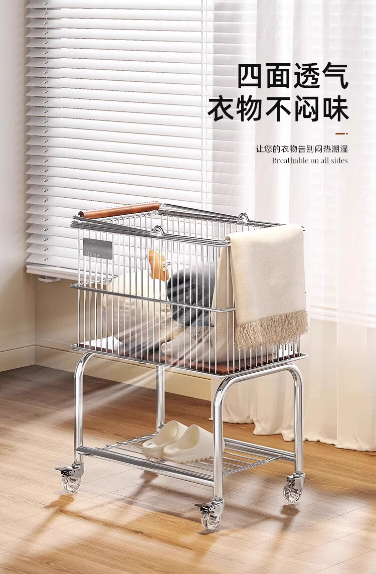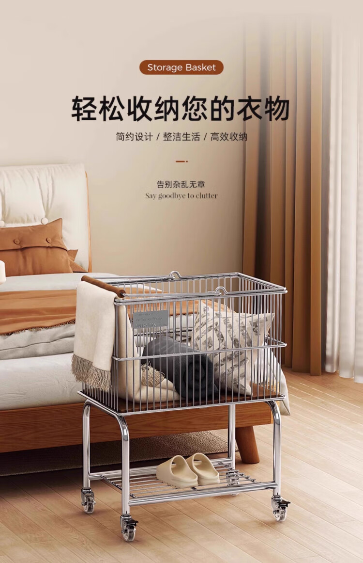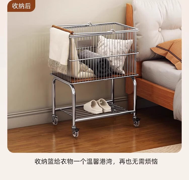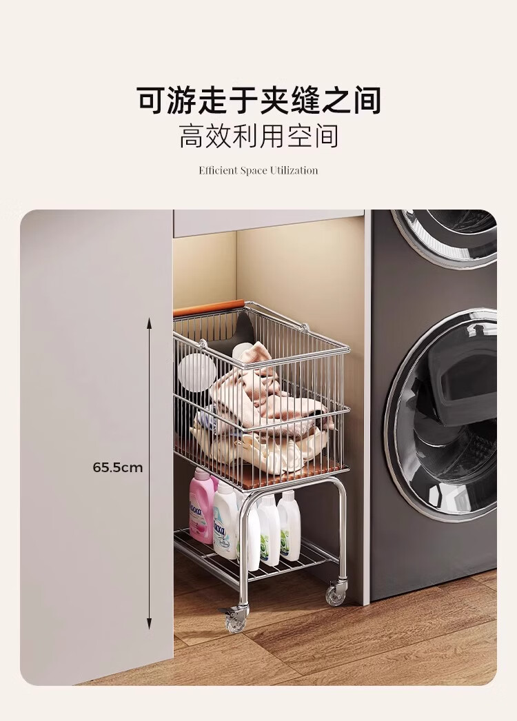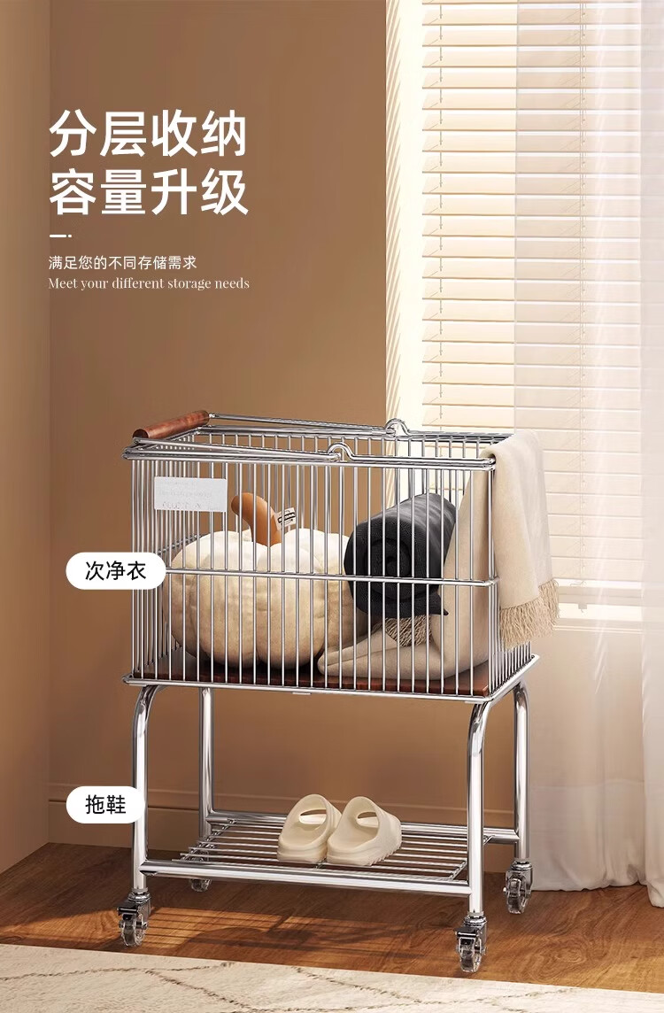 衣炫中古脏衣篮双层衣服收纳筐小推车置物架家用浴室卫生间移动脏衣篓 银色