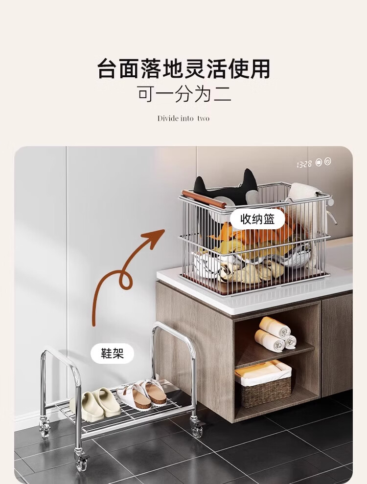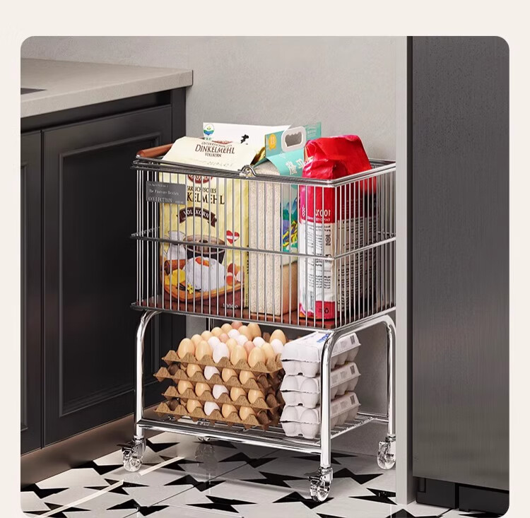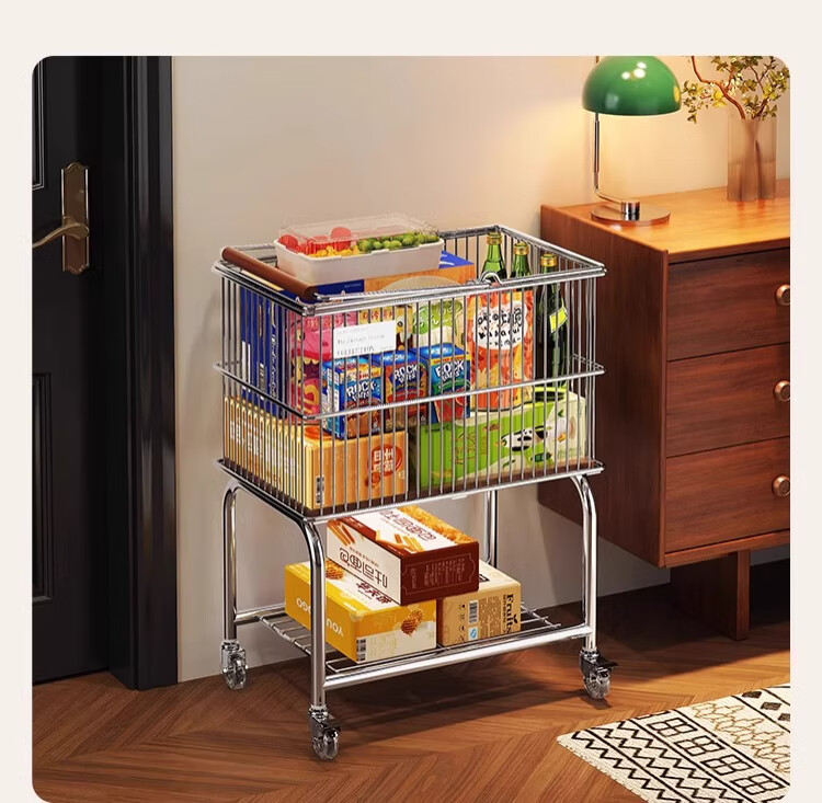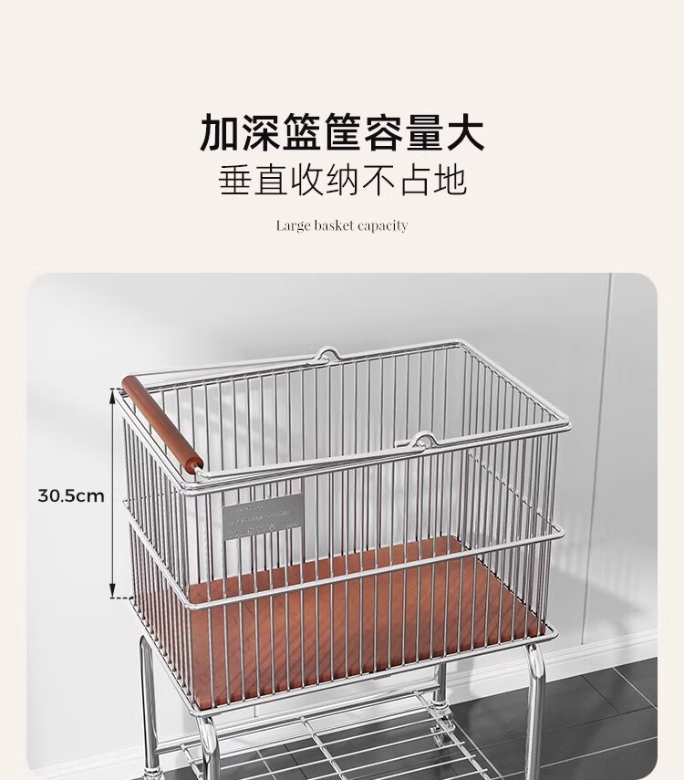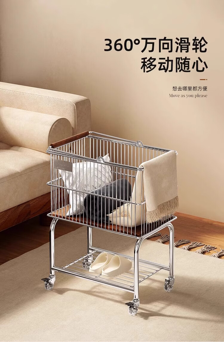 衣炫中古脏衣篮双层衣服收纳筐小推车置物架家用浴室卫生间移动脏衣篓 银色