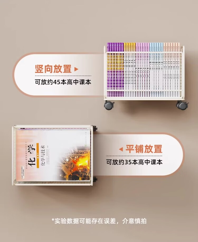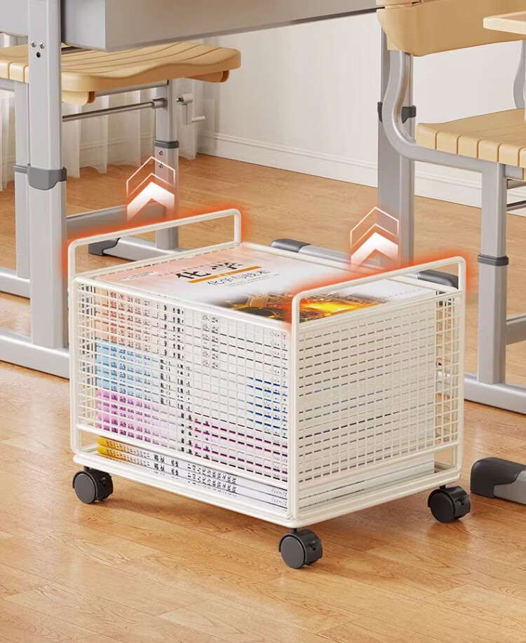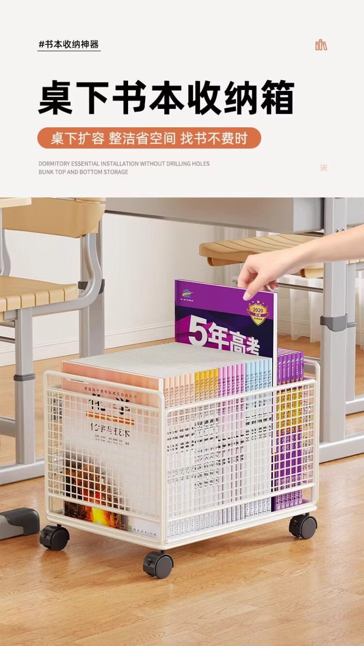 尔思家书本收纳架书箱学生教室用桌下置物架落地可移动书架办公桌展示架 白色-大号