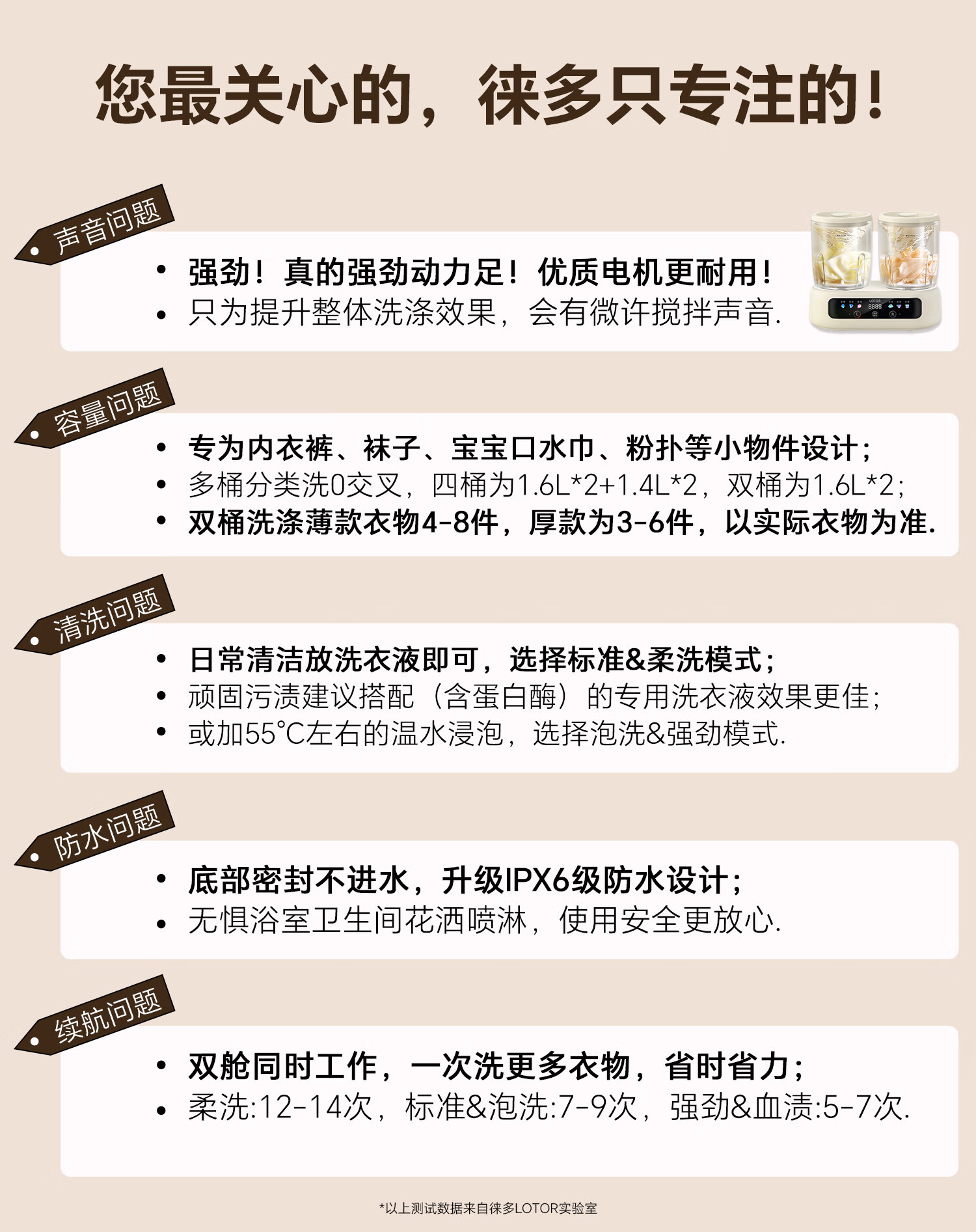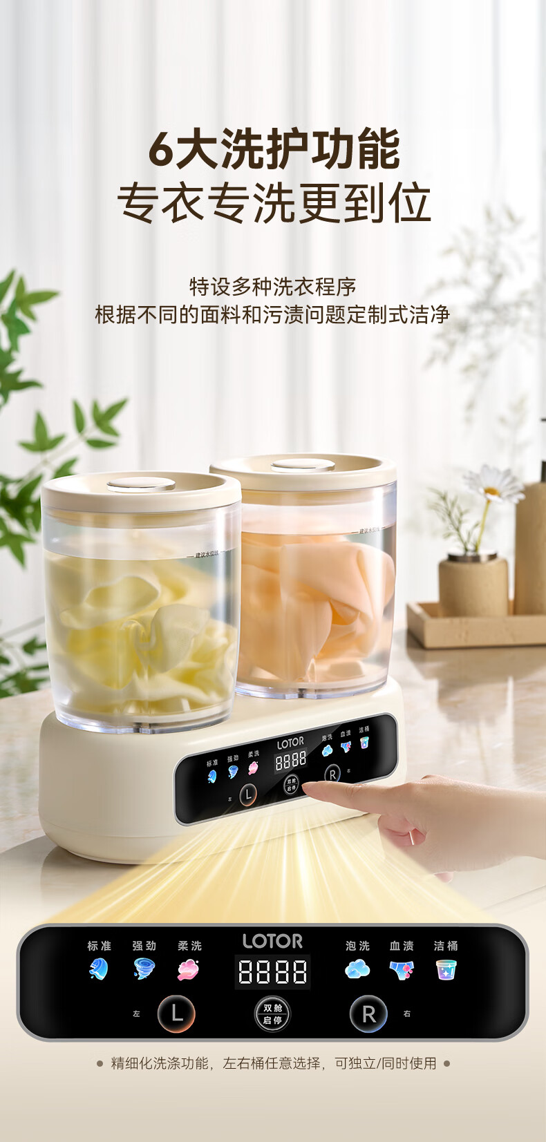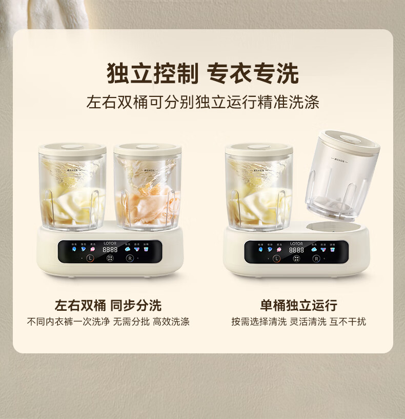 LOTOR徕多一体式内衣洗衣机洗袜子机内裤袜子洗衣机大容量分洗内衣内裤专用清洗机双桶内裤洗衣杯 【独立分洗+UV/银离子双抗菌】四桶款
