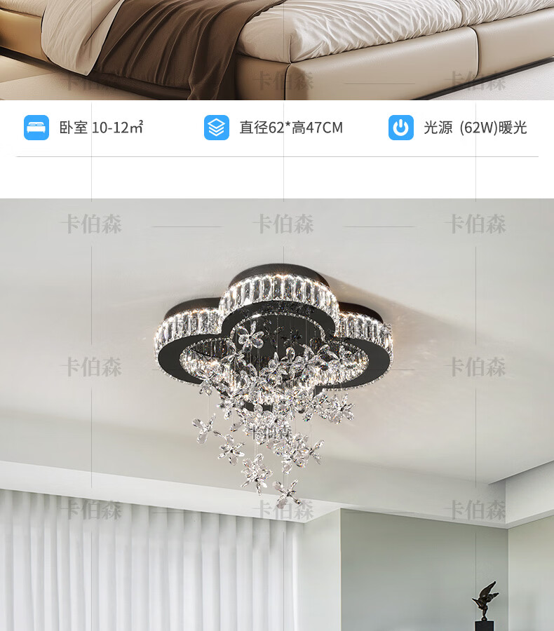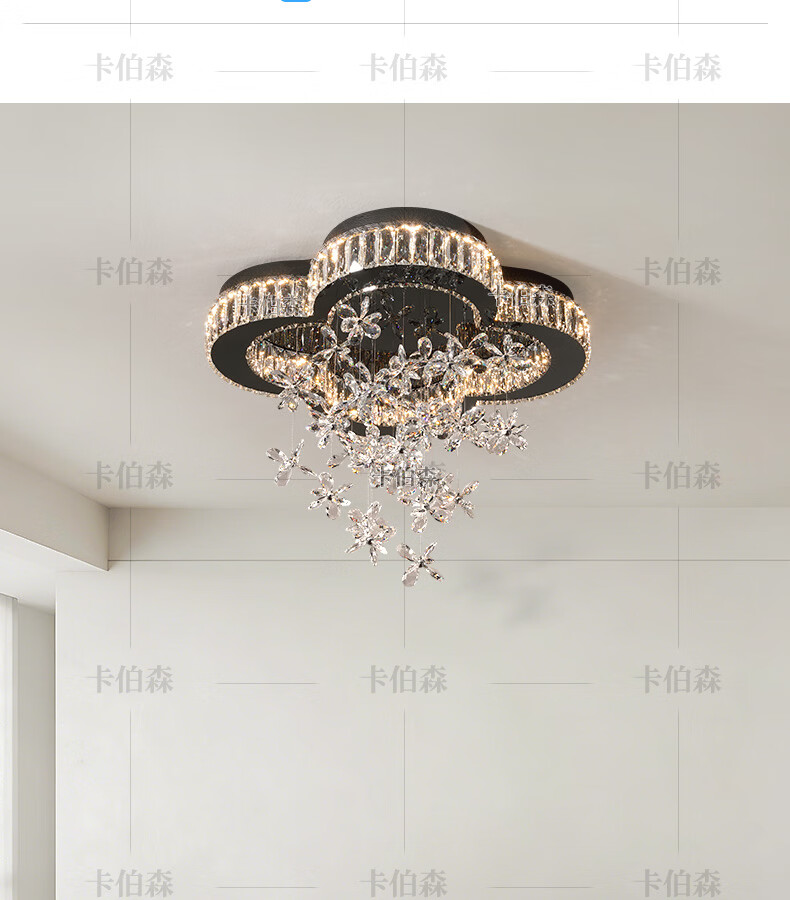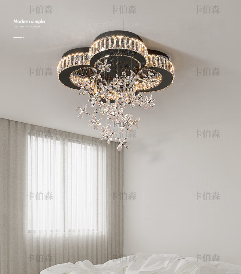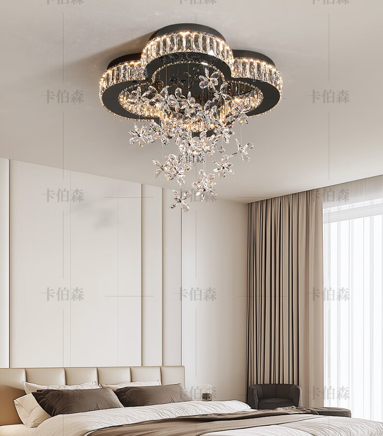 卡伯森意式极简卧室水晶吸顶灯现代轻奢大气高级感别墅艺术花瓣书房灯 透明色花款-直径52*高47CM【无极+天猫精灵】