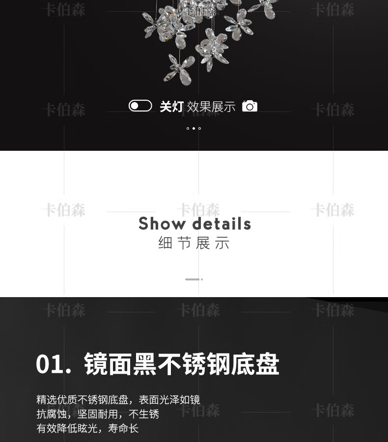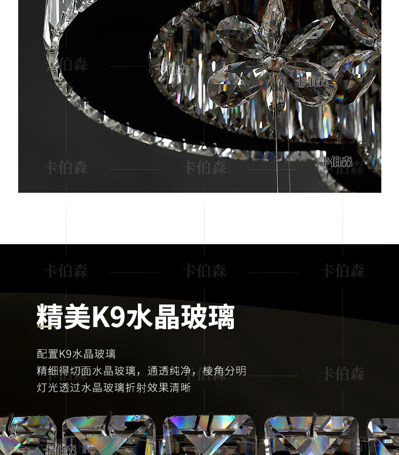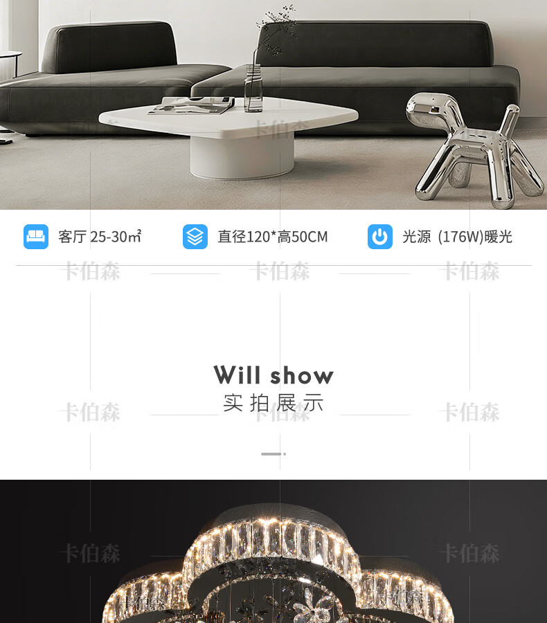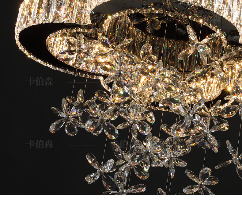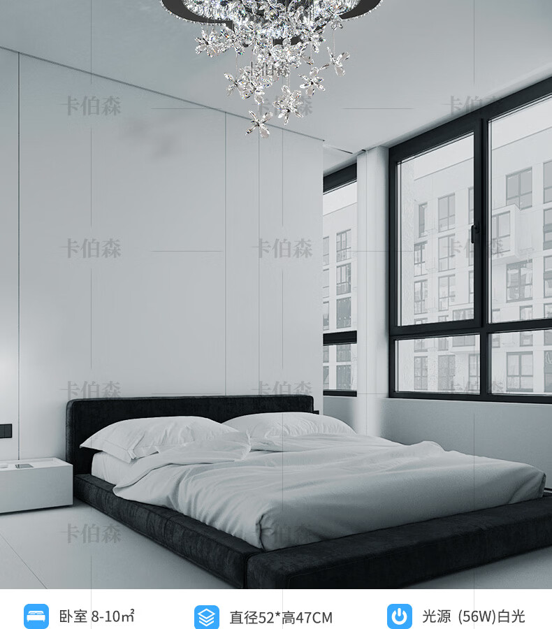 卡伯森意式极简卧室水晶吸顶灯现代轻奢大气高级感别墅艺术花瓣书房灯 透明色花款-直径52*高47CM【无极+天猫精灵】