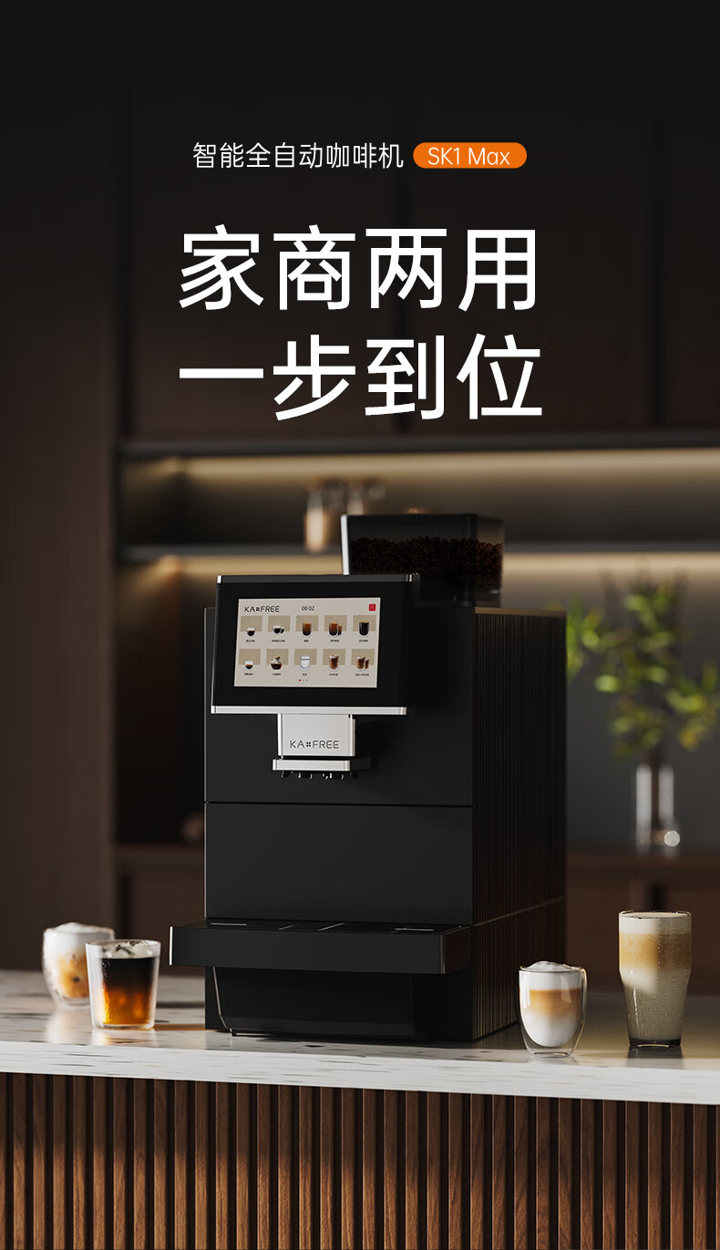 咖啡自由(KAxFREE)SK1 Max全自动意式咖啡机家用商用咖啡机意式美式一键萃取研磨一体机美式奶咖触摸屏