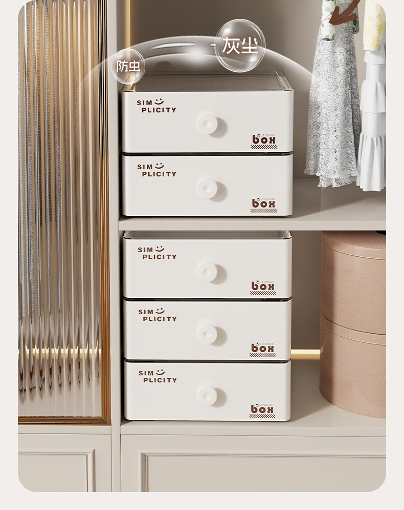 吱凡日本内衣内裤整理收纳盒女生贴身衣物袜子三合一衣柜抽屉式储物箱 晶盾白【内裤盒+袜子盒】