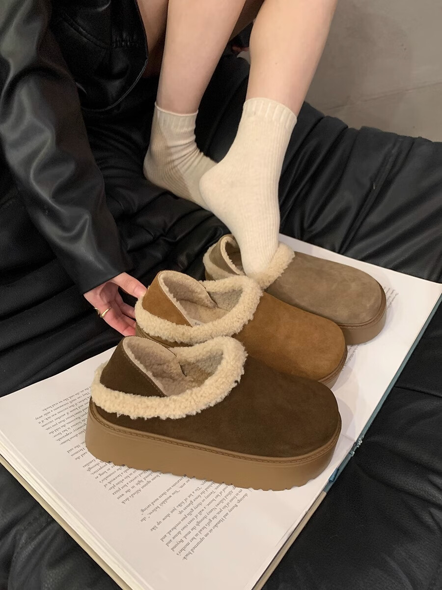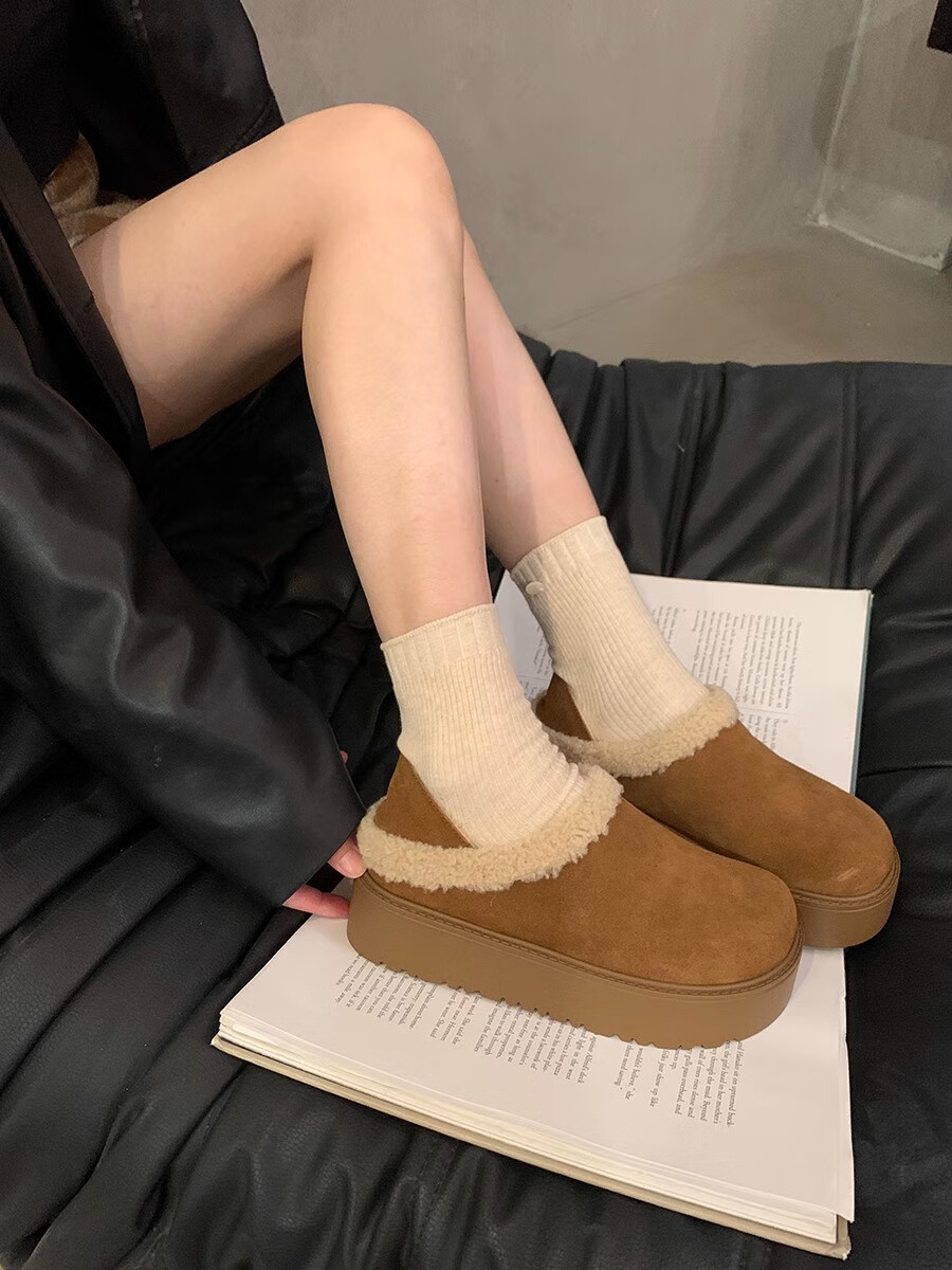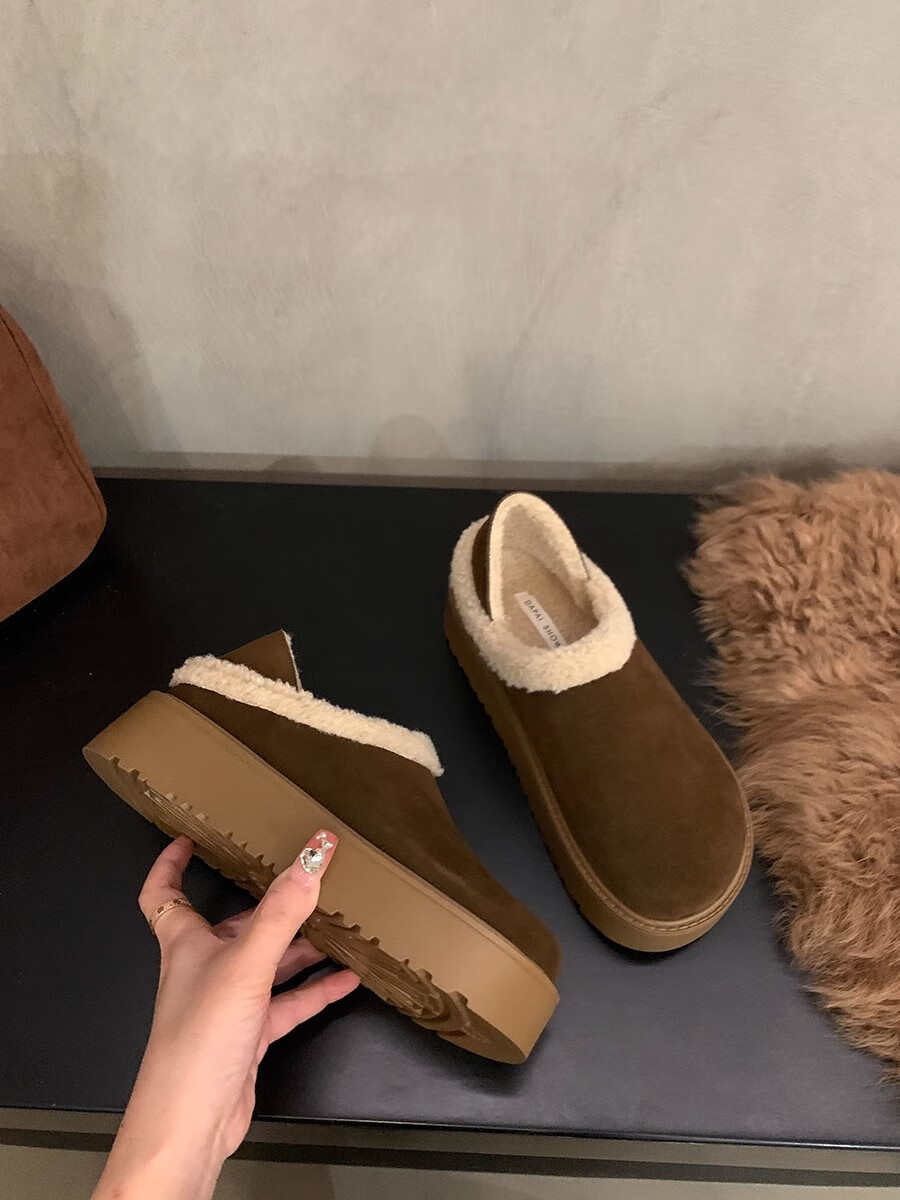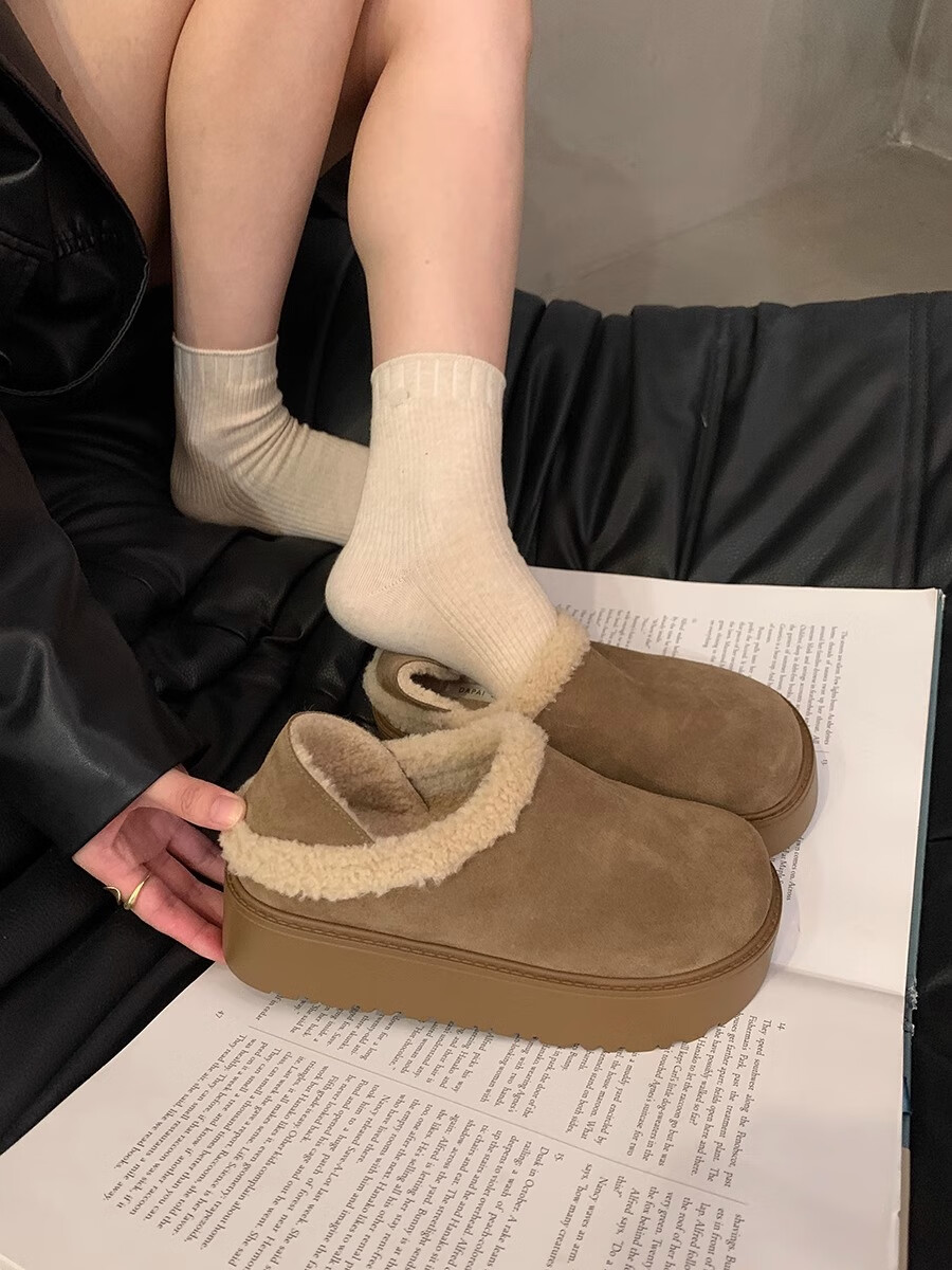 妙丽勃肯鞋女厚底复古加绒时尚保暖潮流2025冬季新款包头半拖鞋 咖色 37 (235mm) 标准码