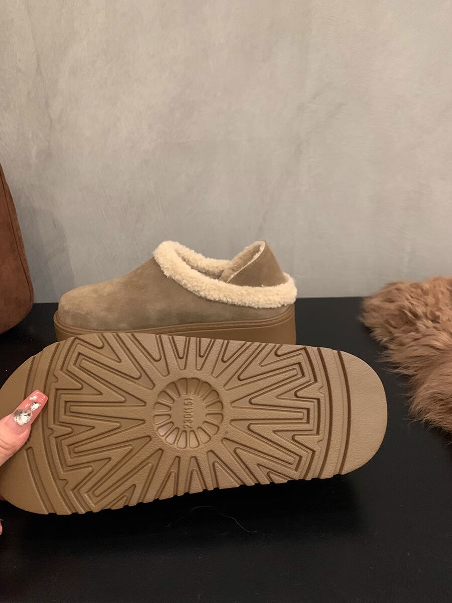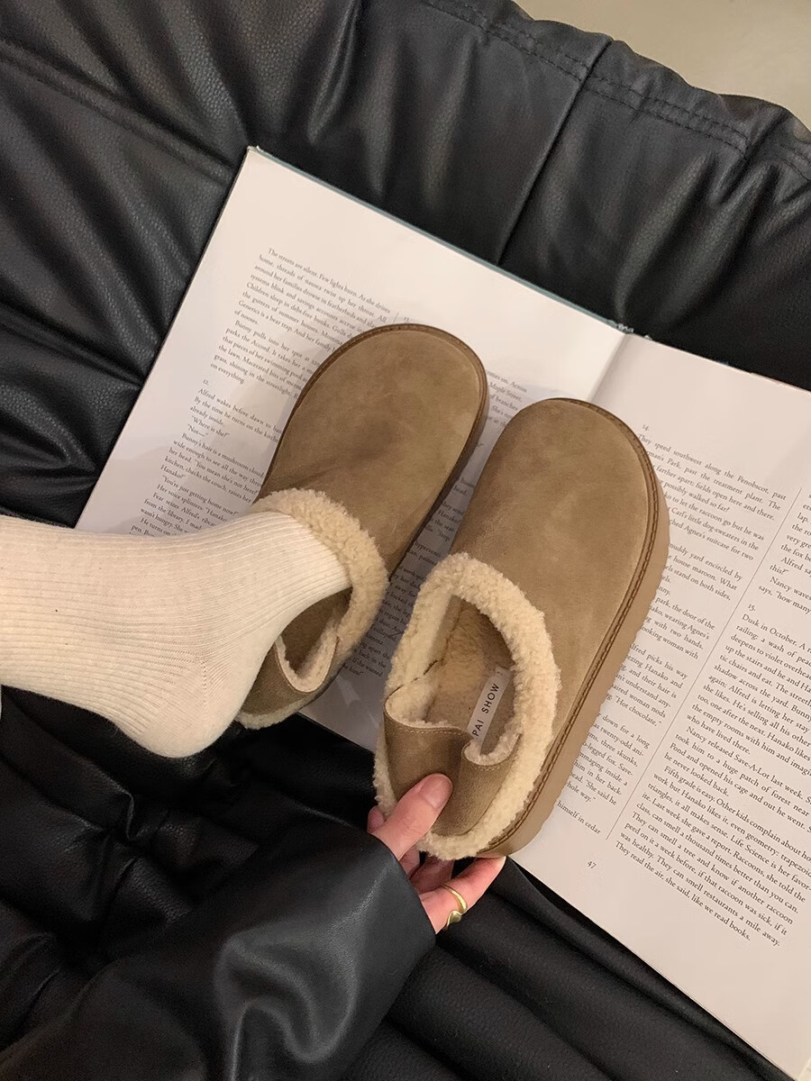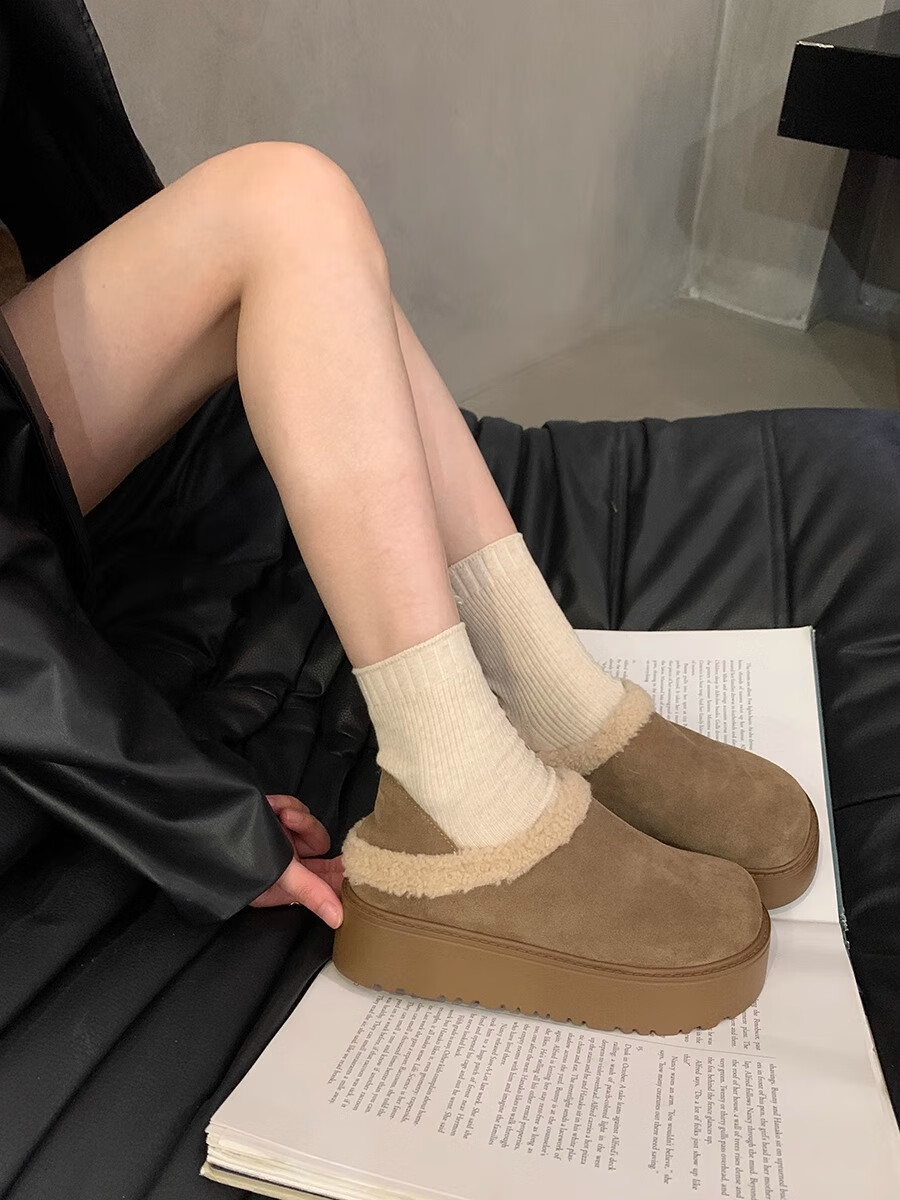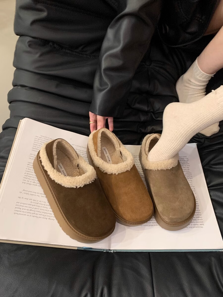 妙丽勃肯鞋女厚底复古加绒时尚保暖潮流2025冬季新款包头半拖鞋 咖色 37 (235mm) 标准码