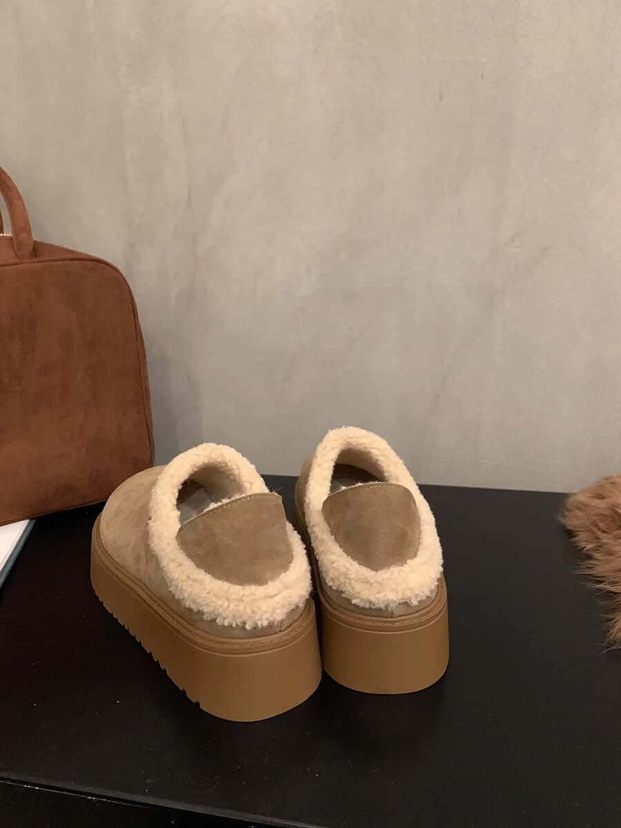 稻草人(MEXICAN)厚底增高勃肯鞋女毛毛拖鞋外穿2026年新款秋冬一脚蹬加绒包头棉鞋 卡其色【精品专柜升级版】 36