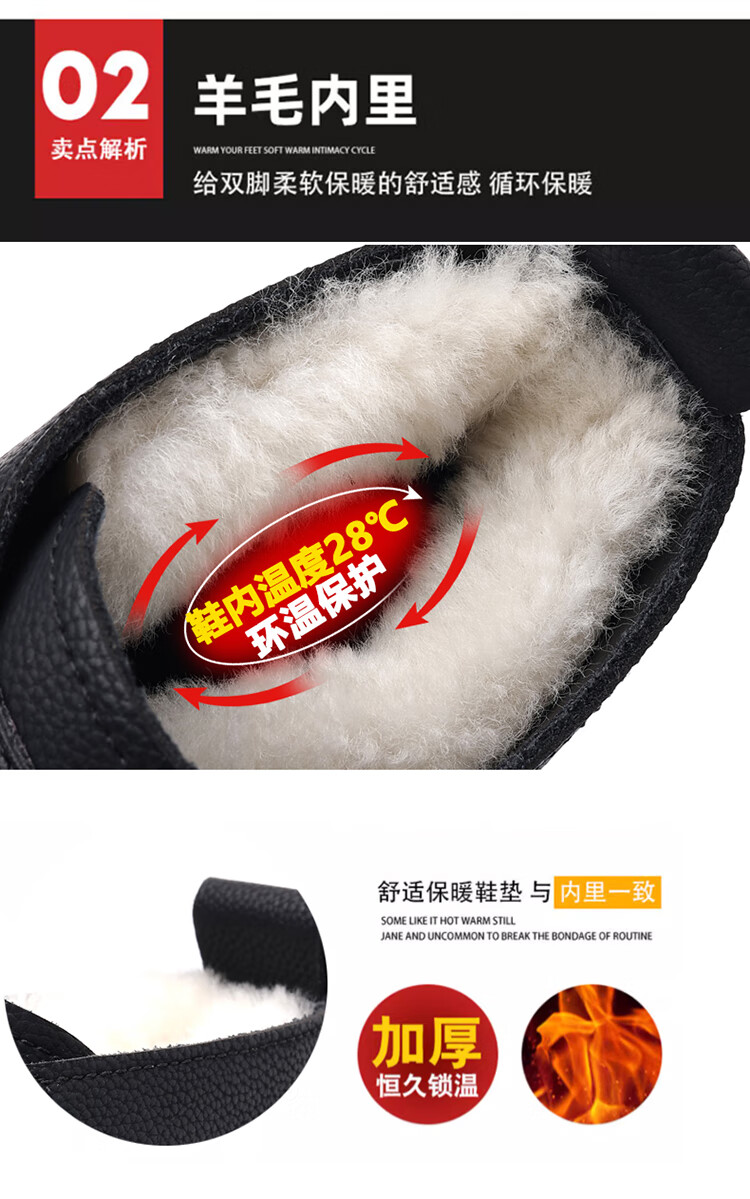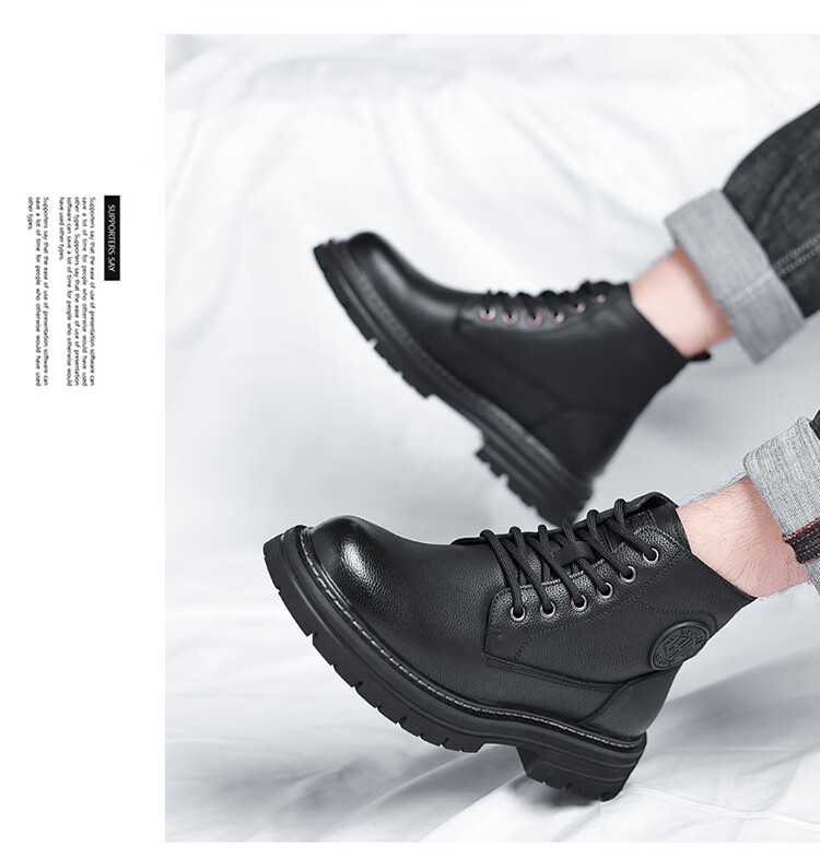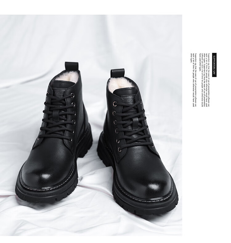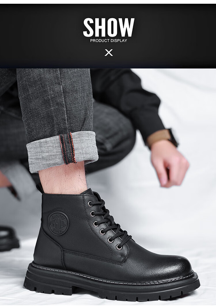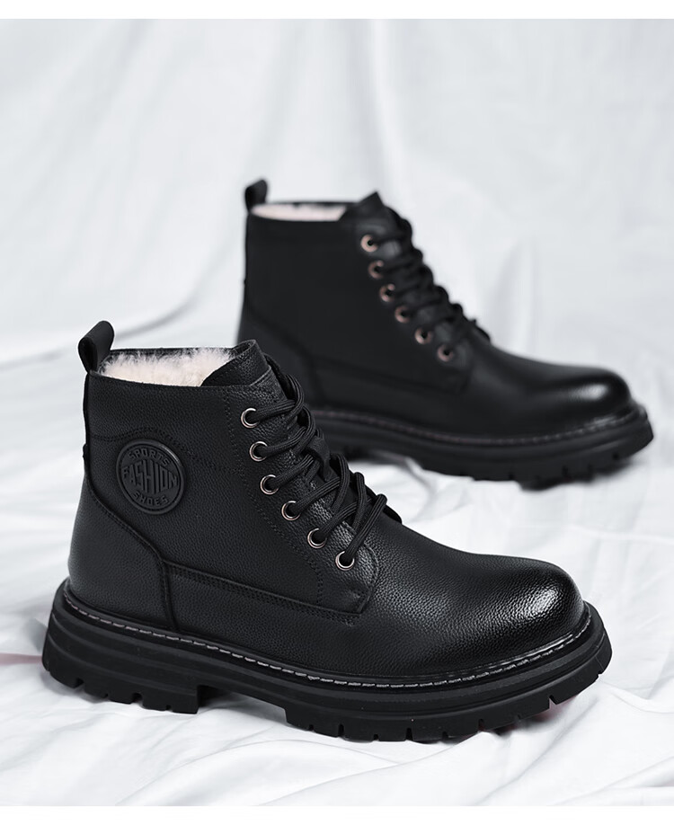 稻草人(MEXICAN)棉皮鞋男款冬季2026新款加绒加厚保暖高帮马丁靴真皮羊毛雪地靴 M22905黑色加绒 加厚羊毛 40