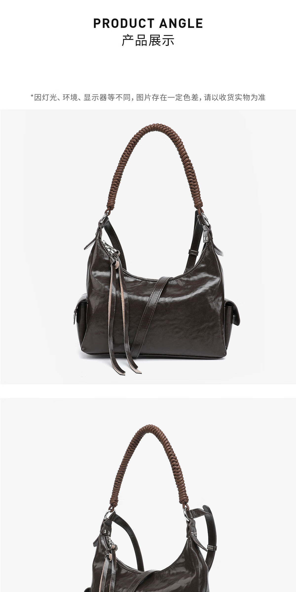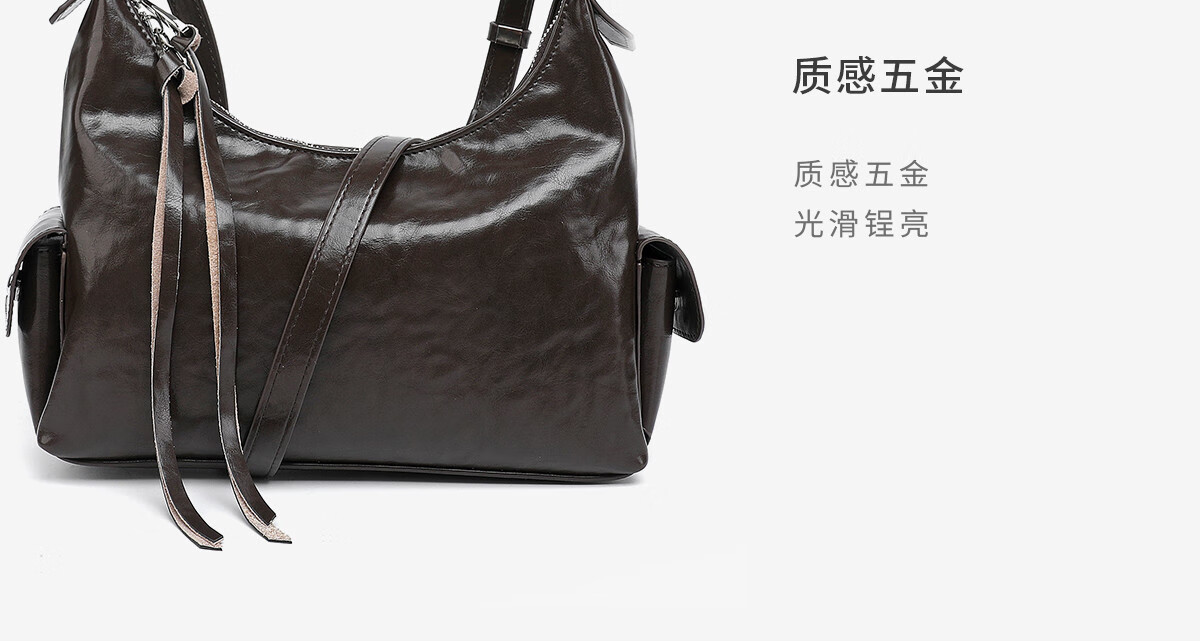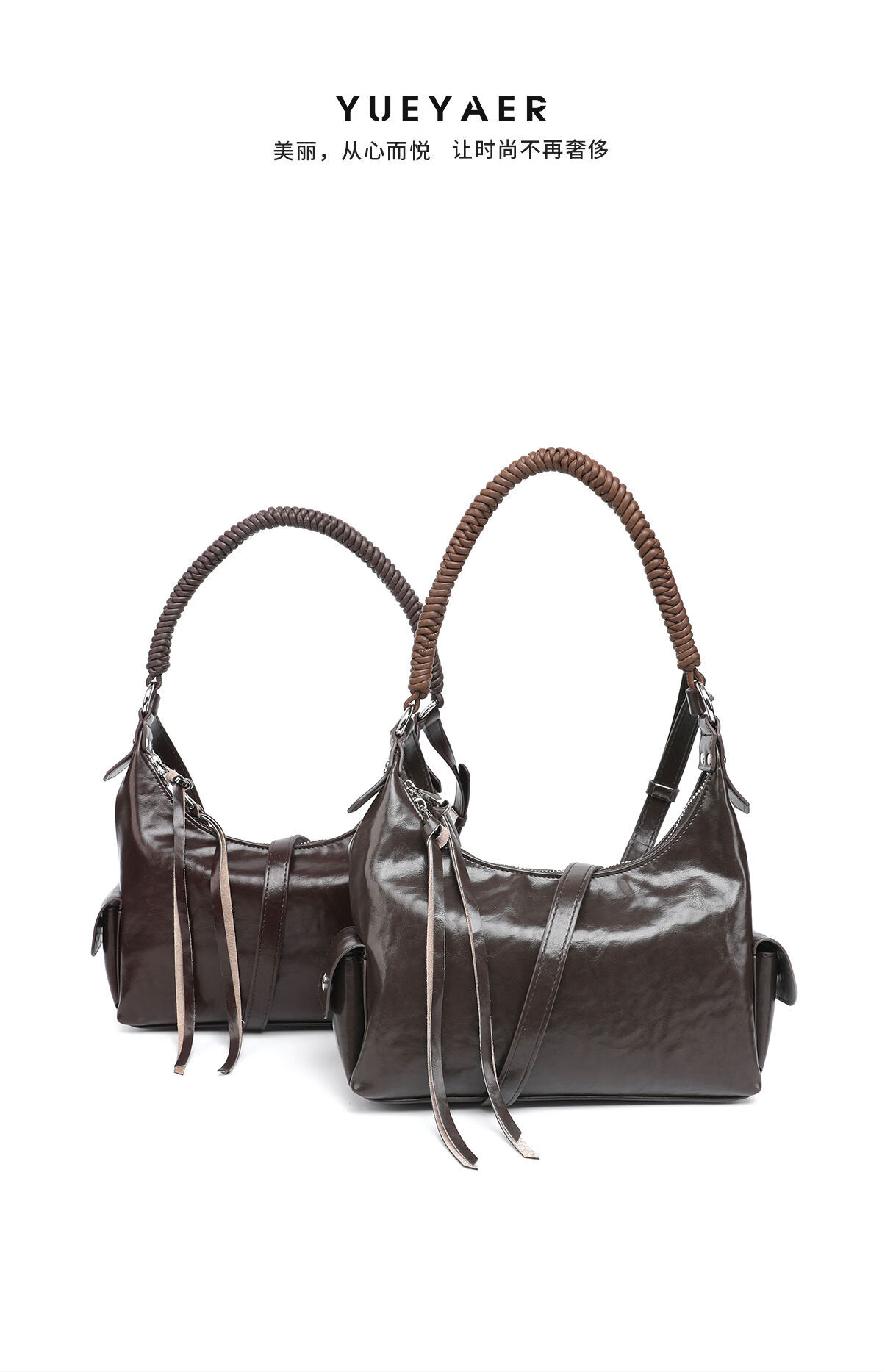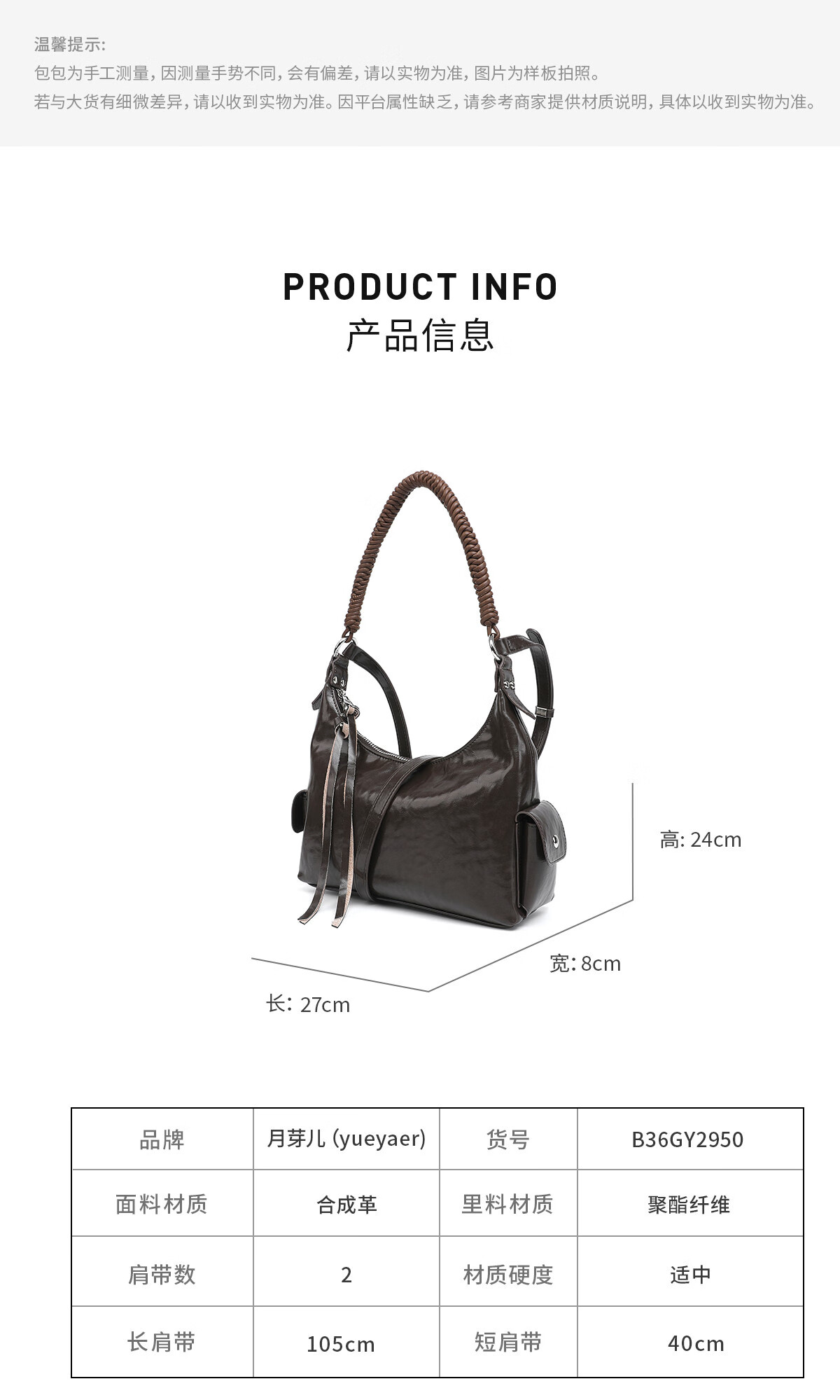 月芽儿时尚百搭托特包大容量手提包复古文艺风单肩斜挎包通勤包女 棕色03