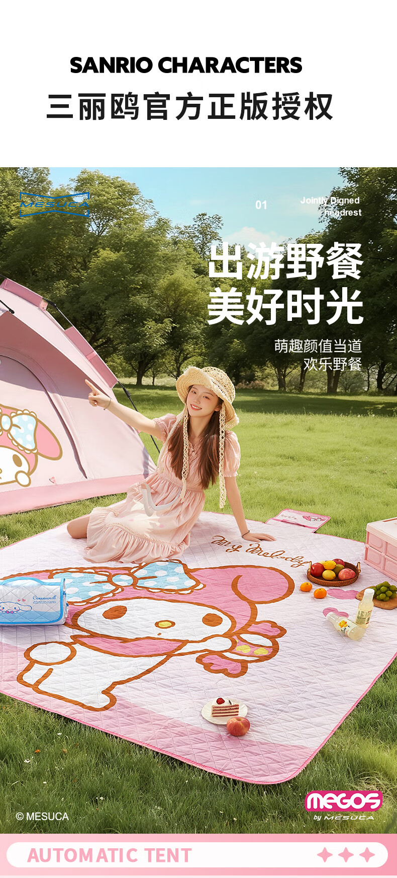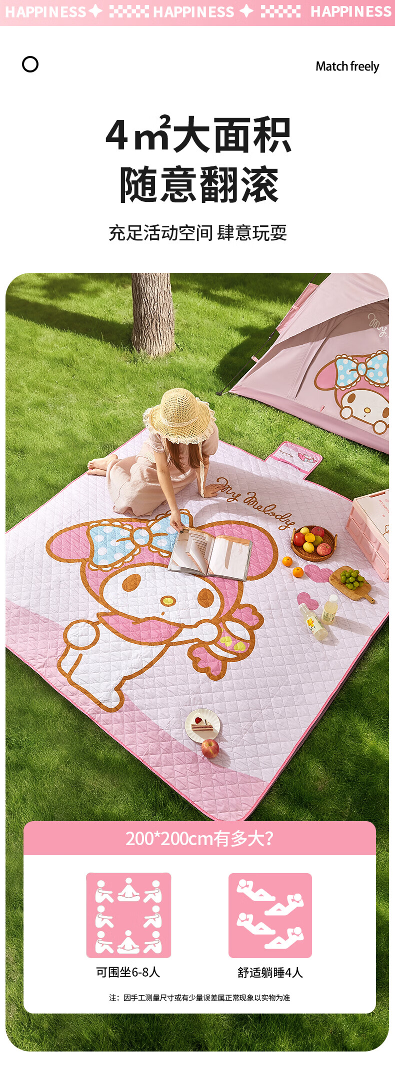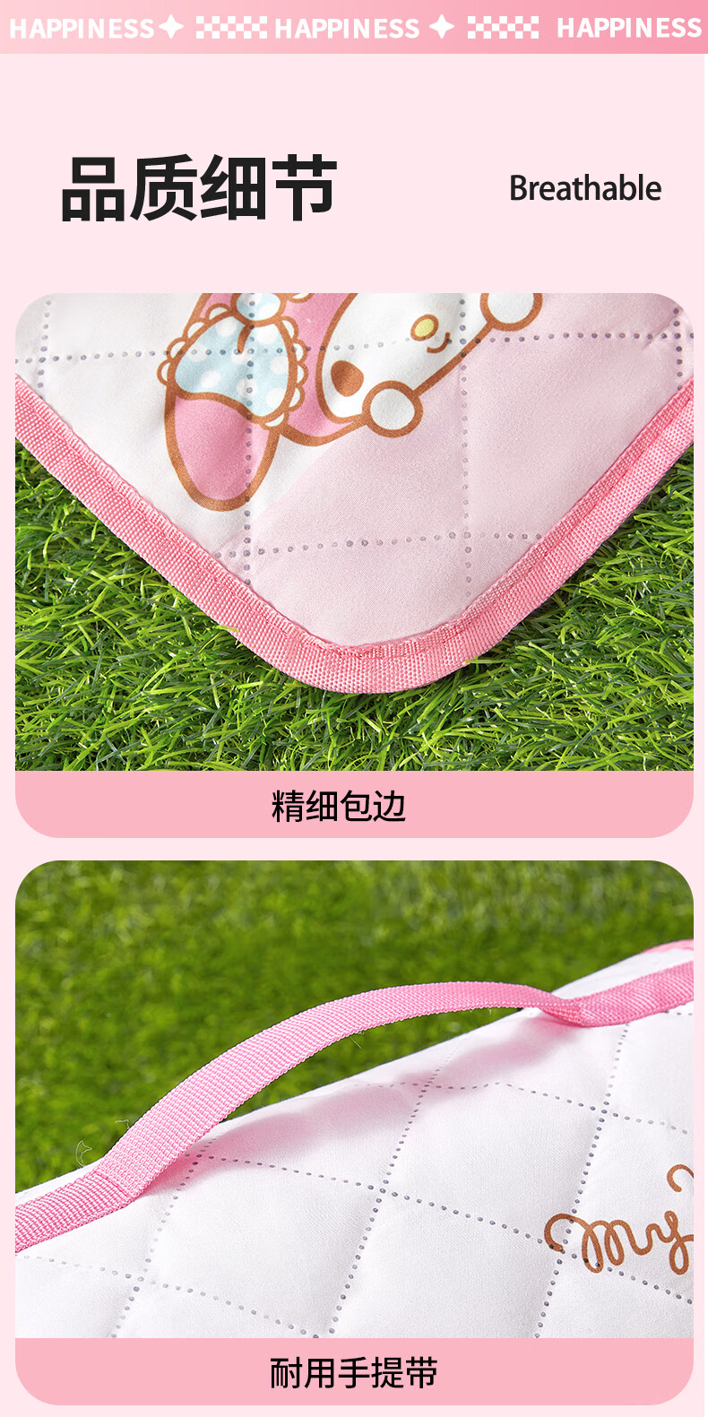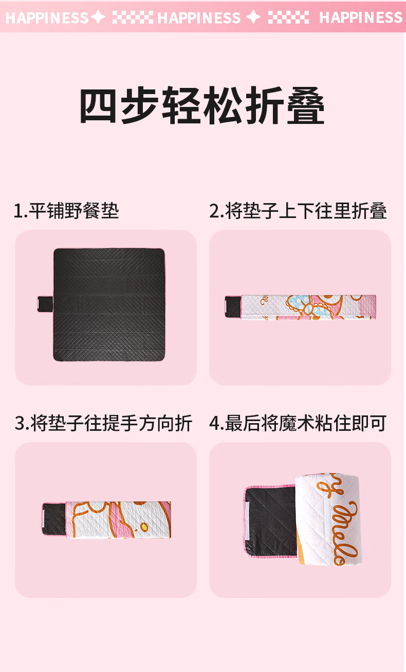 MARSICA三丽鸥防潮垫野餐垫音乐节坐垫加厚户外露营垫沙滩垫子便携地垫 三丽鸥野餐垫-MY MELODY小号