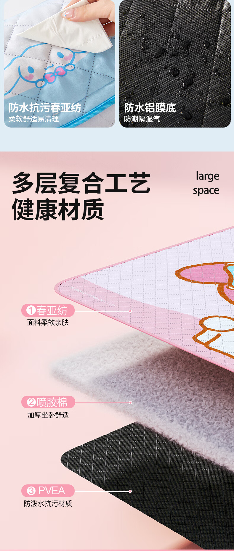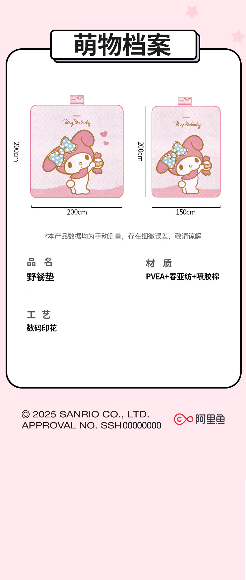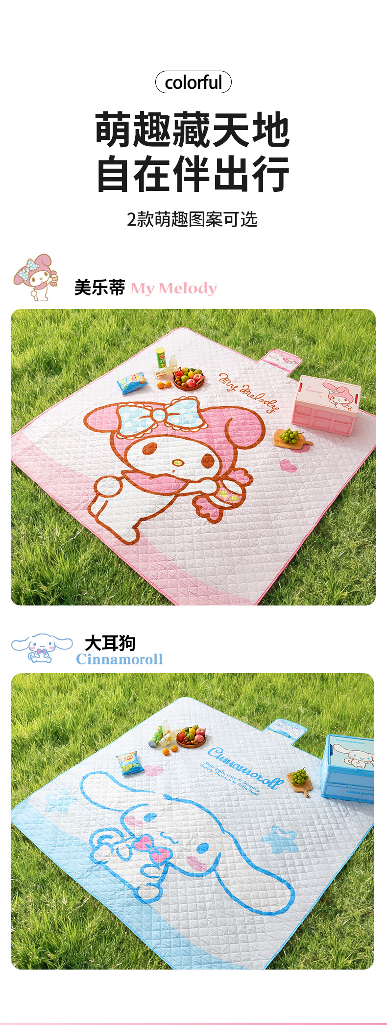 MARSICA三丽鸥防潮垫野餐垫音乐节坐垫加厚户外露营垫沙滩垫子便携地垫 三丽鸥野餐垫-MY MELODY小号