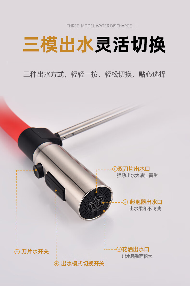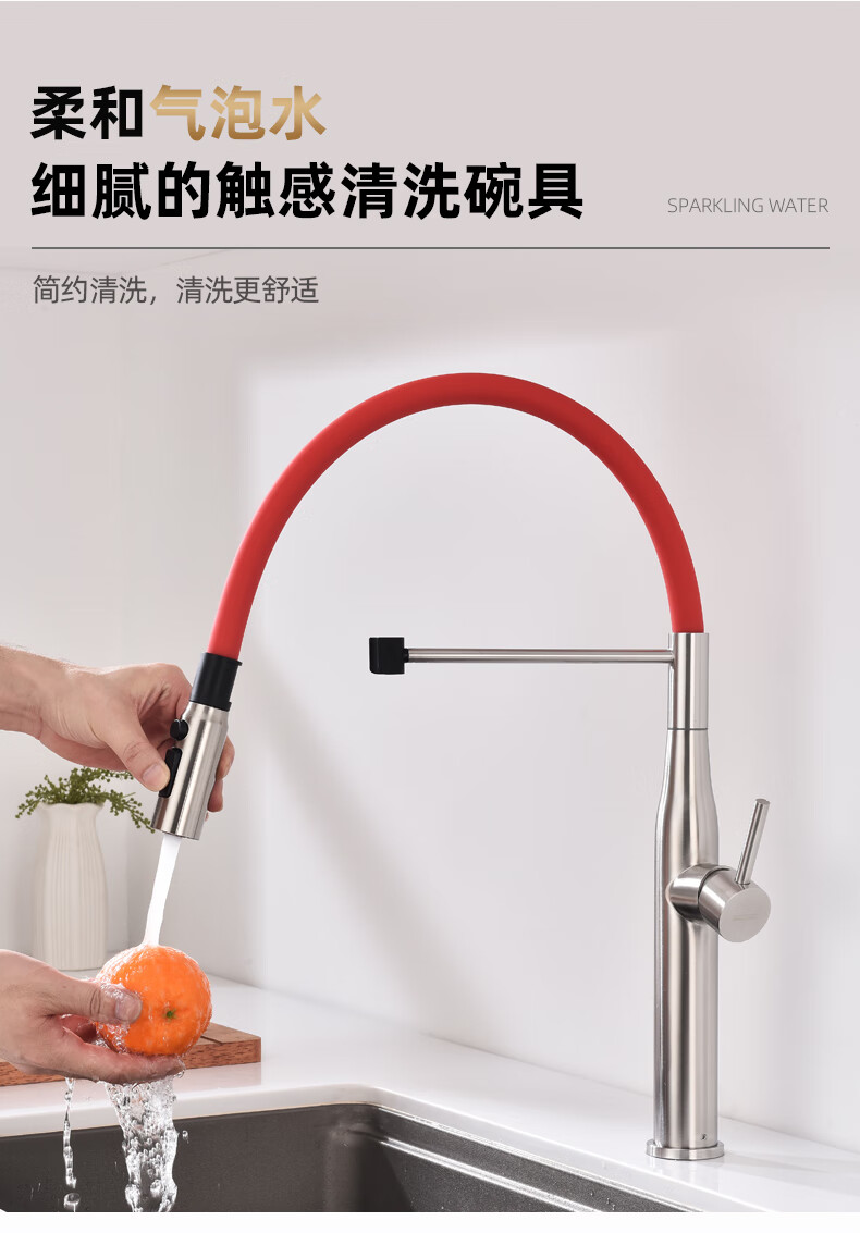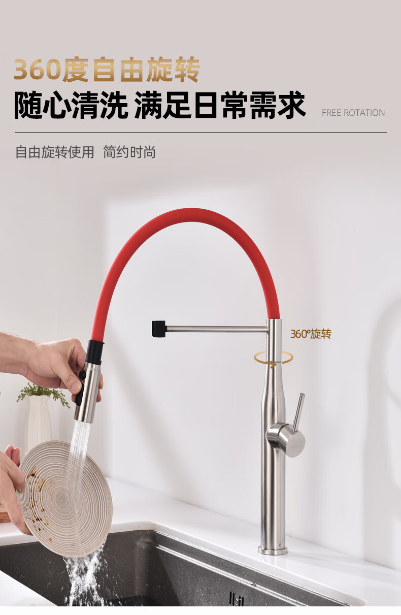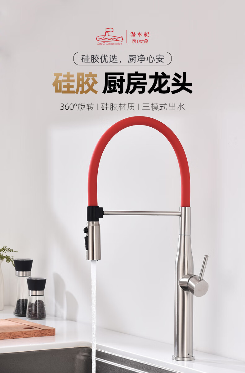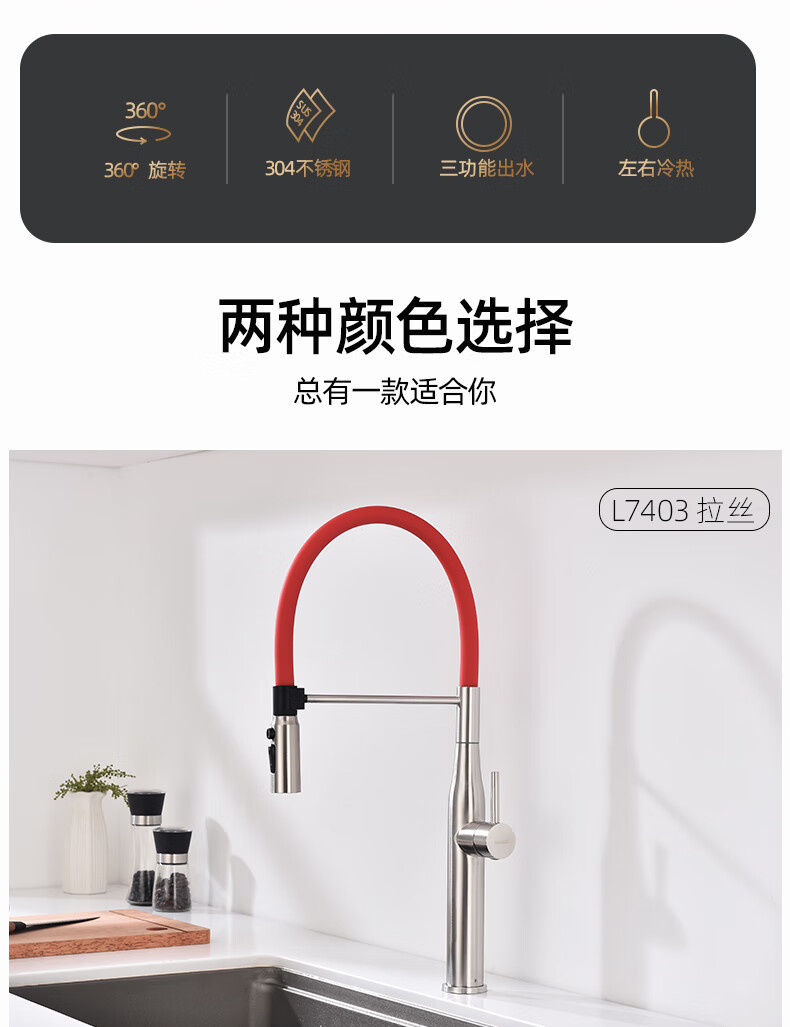 潜水艇厨房水龙头冷热出水二合一两用万向旋转洗菜盆水槽洗碗池磁吸龙头 L7403【不锈钢原色+创新上装】