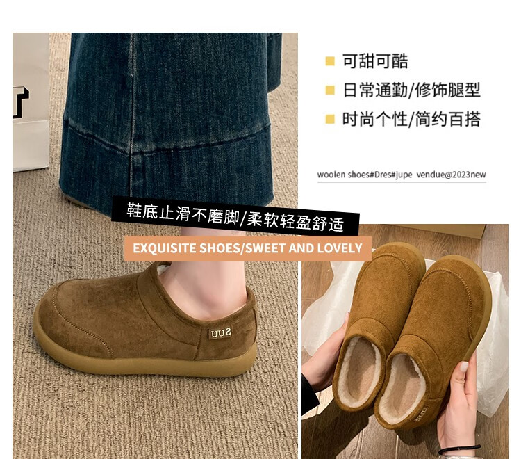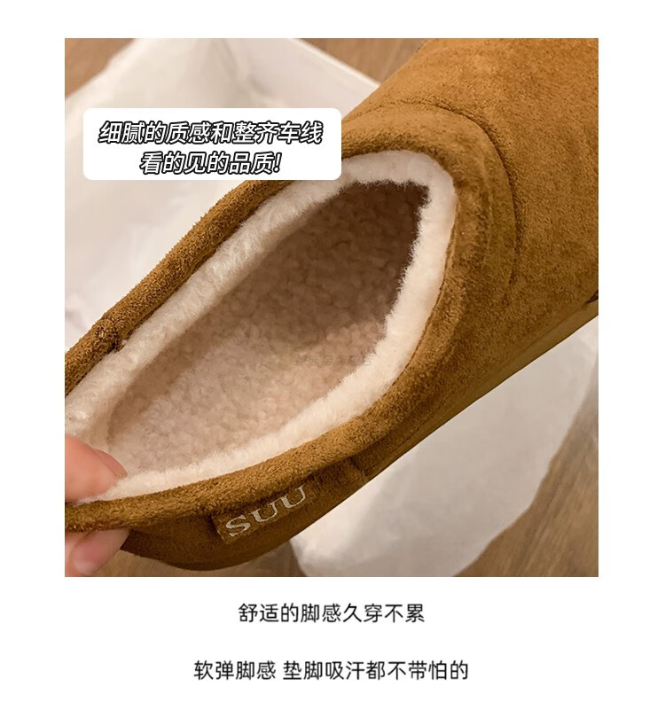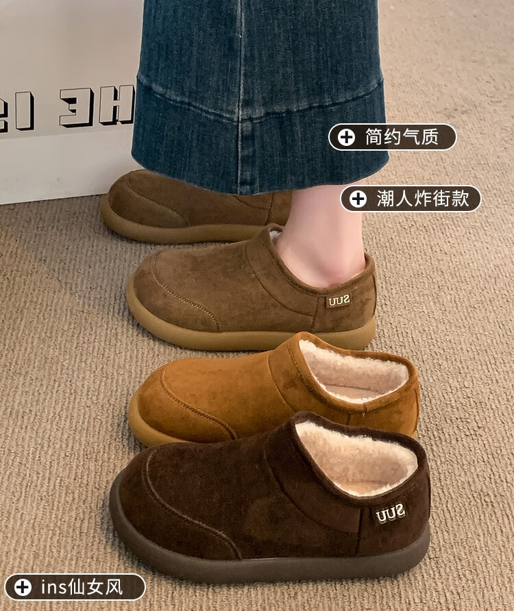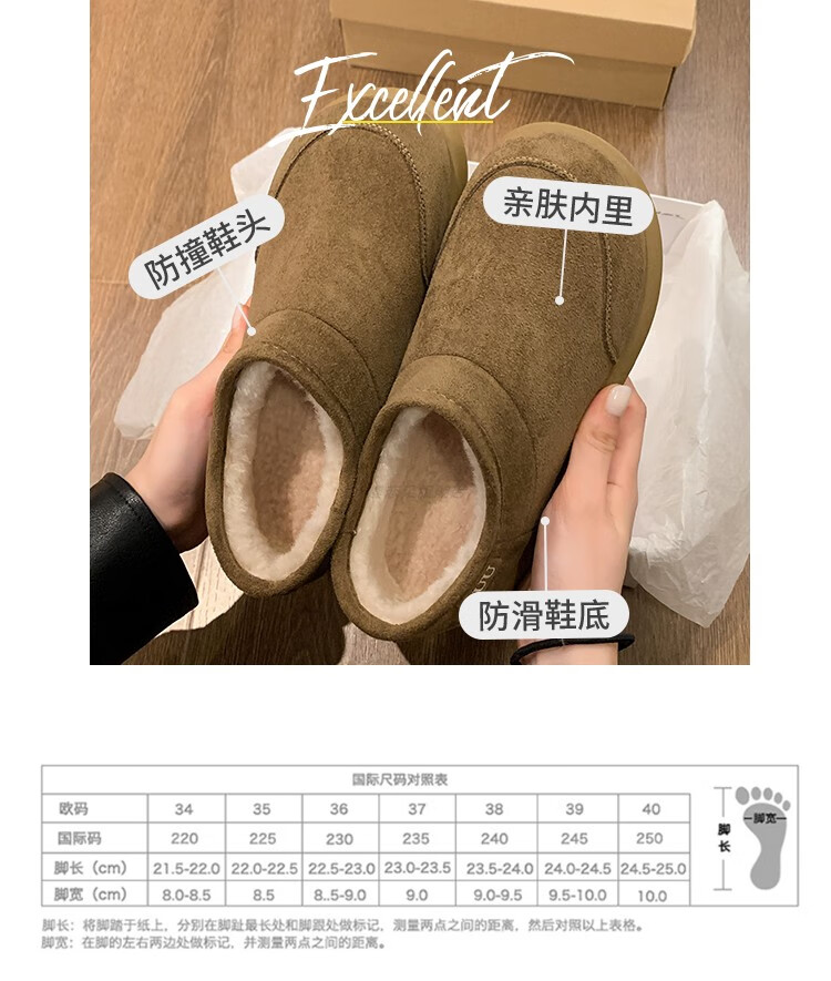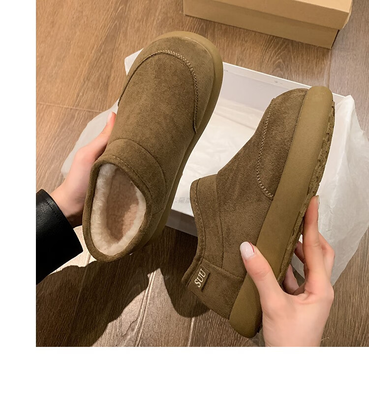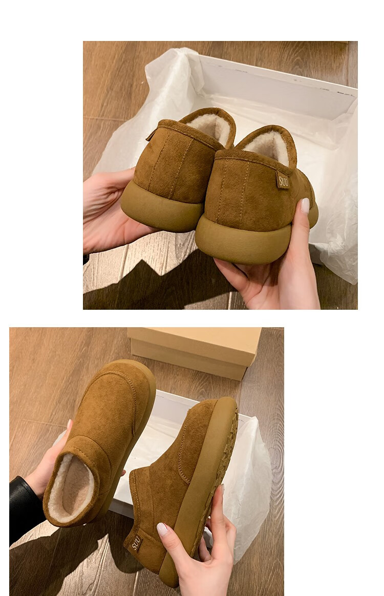 稻草人(MEXICAN)棉鞋女士冬季2026新款爆款加绒加厚保暖防滑雪地靴女款厚底勃肯鞋 驼色【升级版】 35