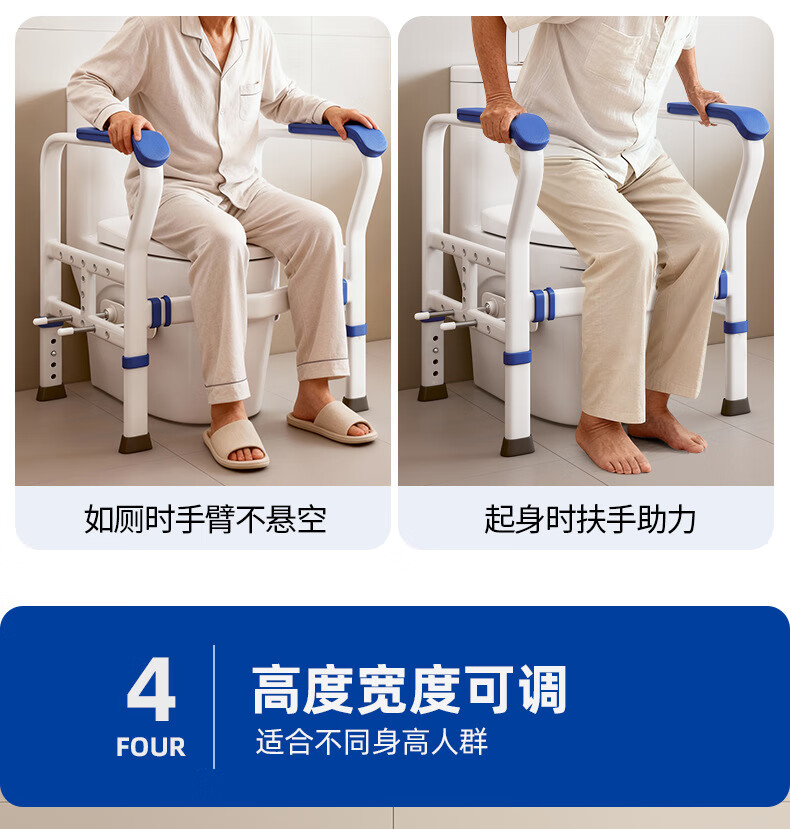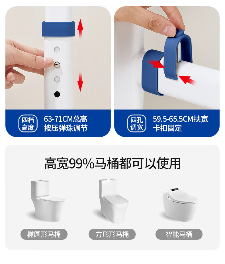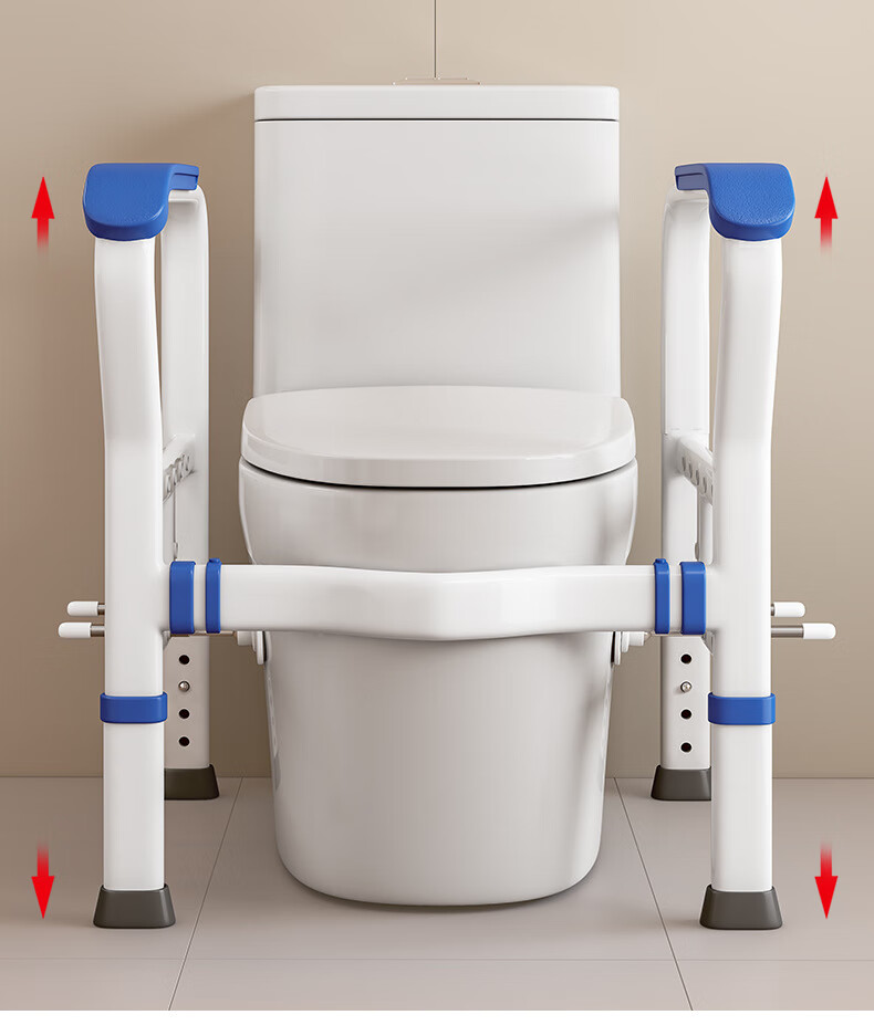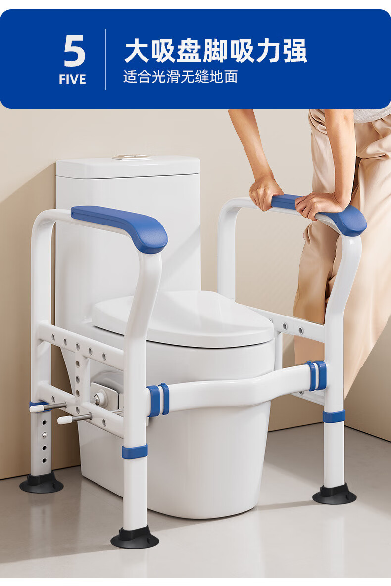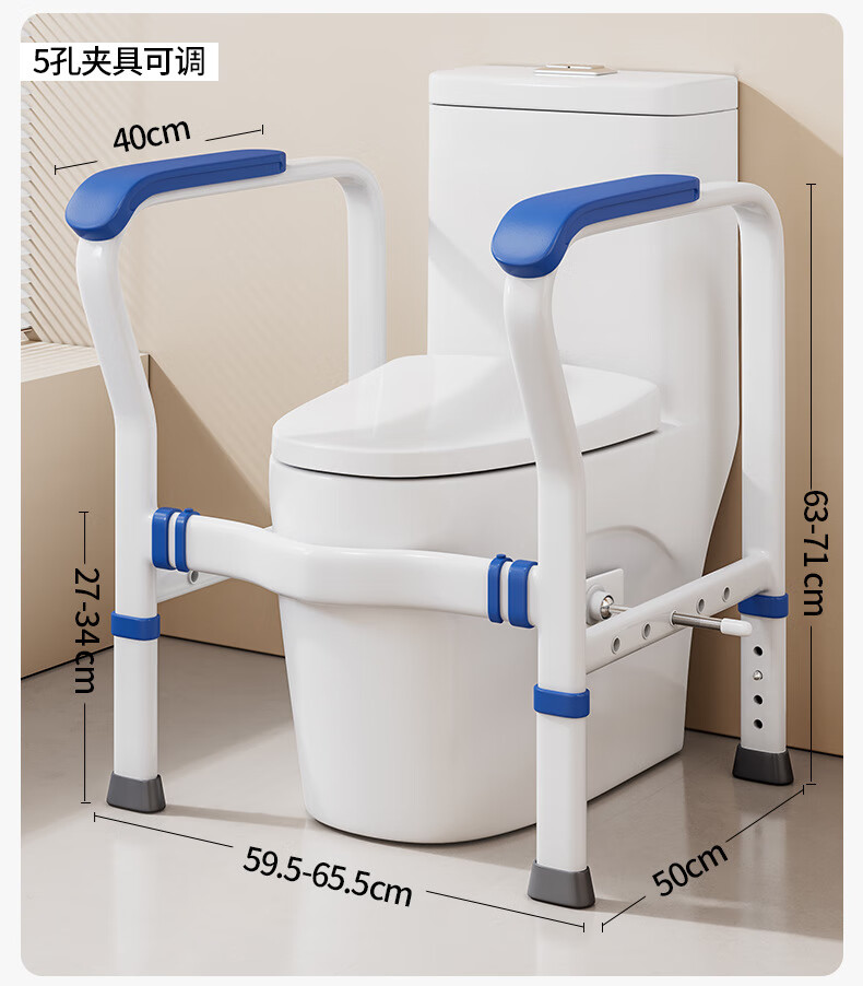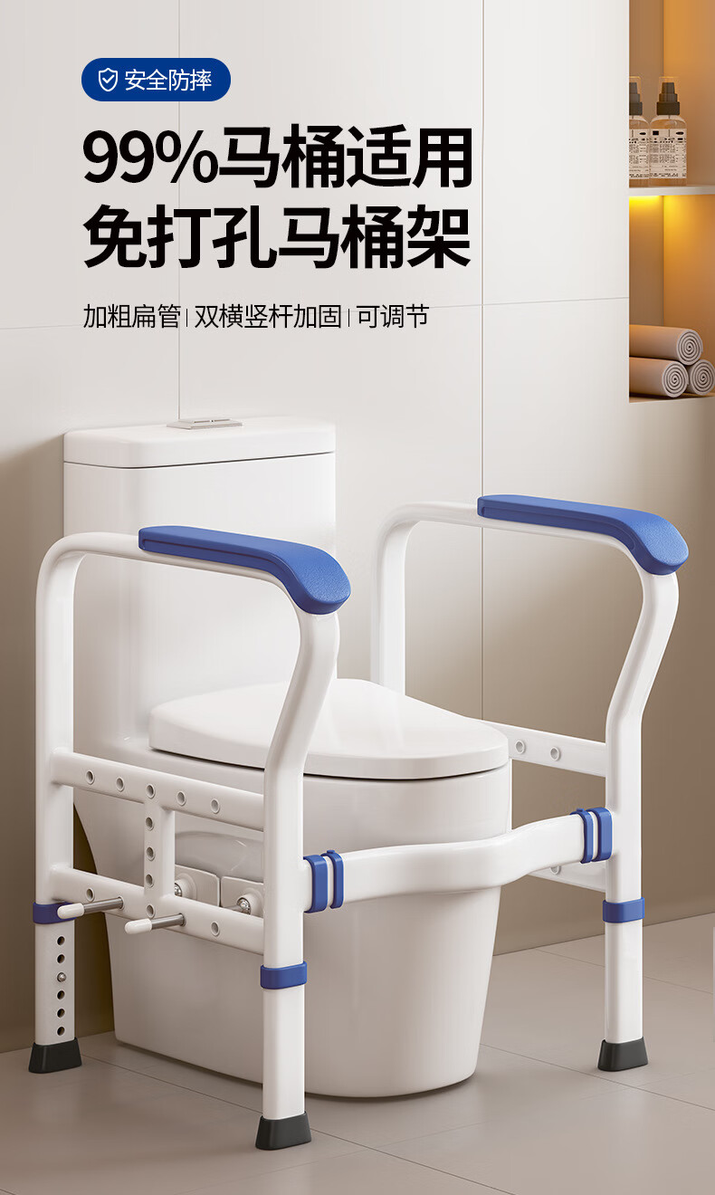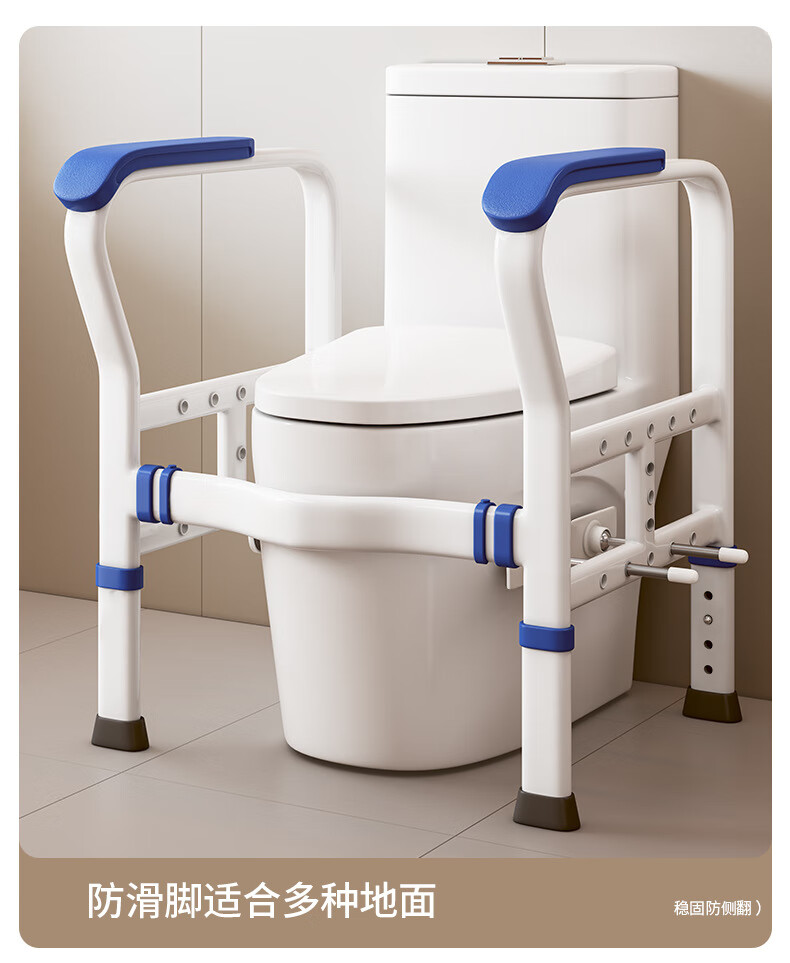 家文化(JIAWENHUA)马桶扶手老人安全助力架卫生间厕所老年坐便辅助器家用免打孔栏杆 适老化扶手架5孔定位蓝扶手-防滑脚 扁管单杆多孔助