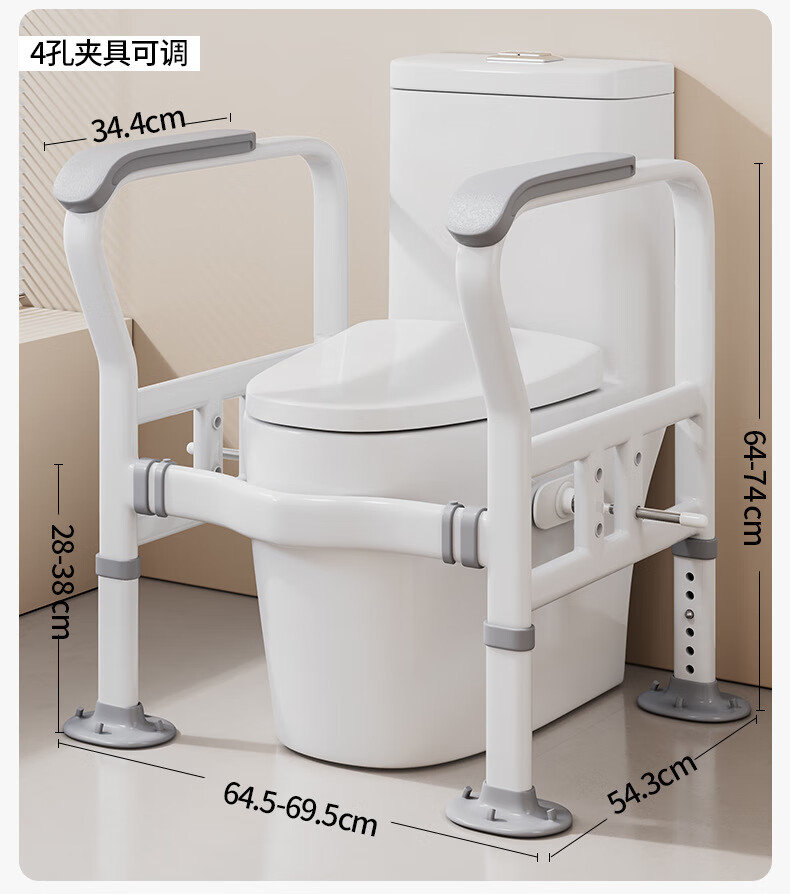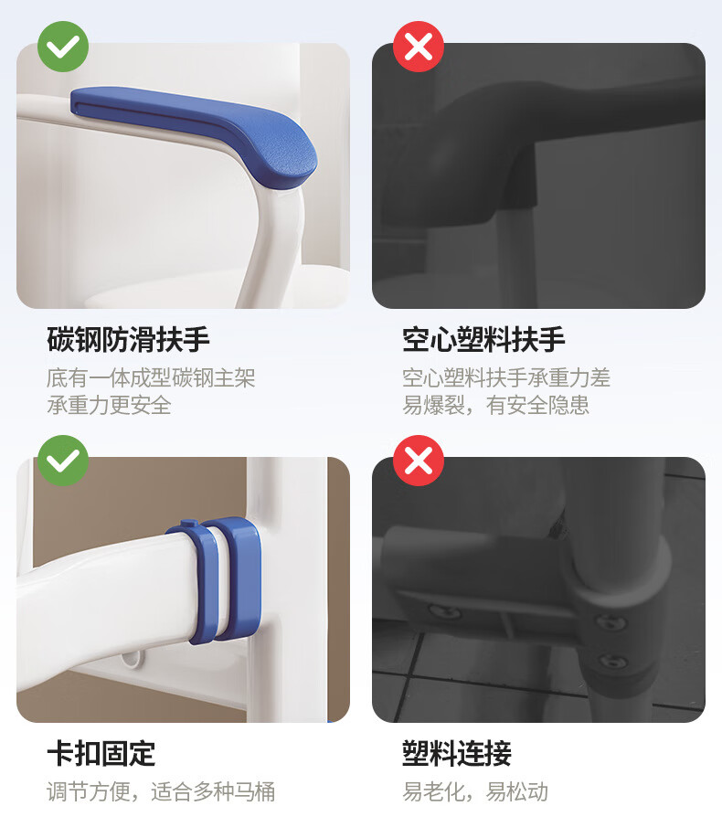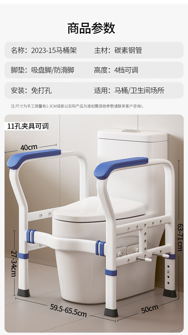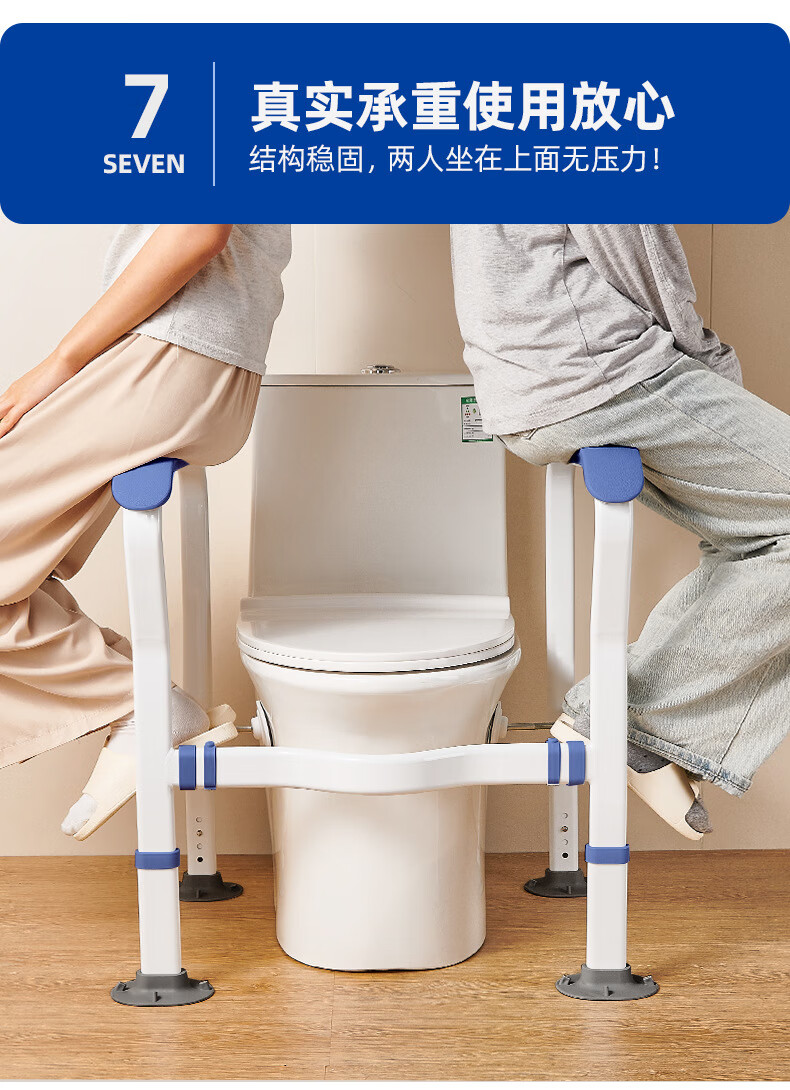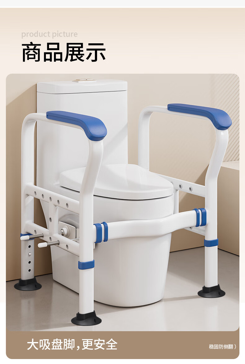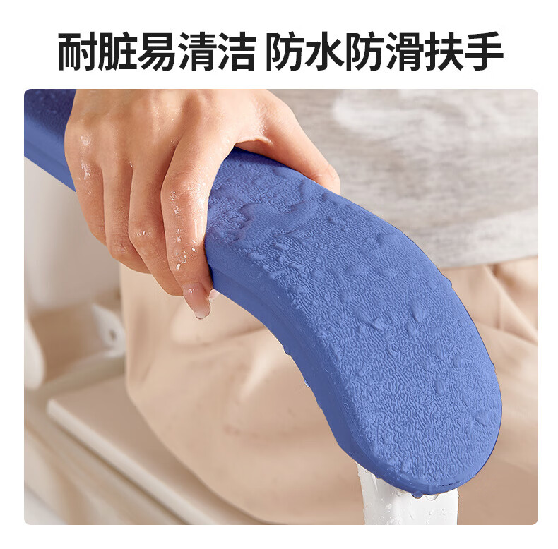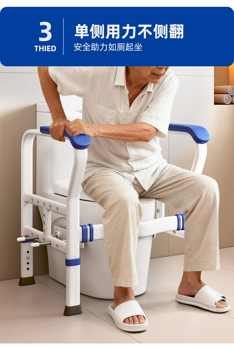 家文化(JIAWENHUA)马桶扶手老人安全助力架卫生间厕所老年坐便辅助器家用免打孔栏杆 适老化扶手架5孔定位蓝扶手-防滑脚 扁管单杆多孔助