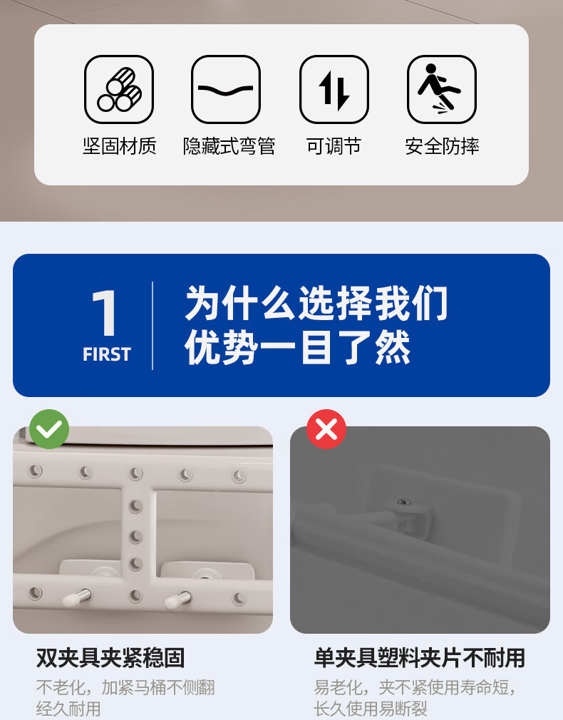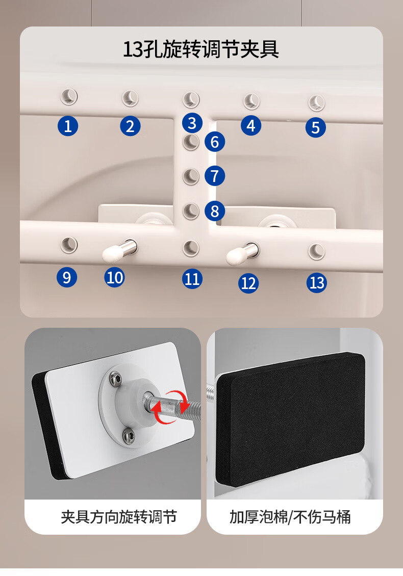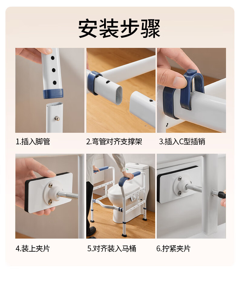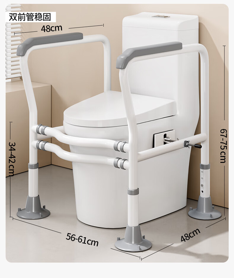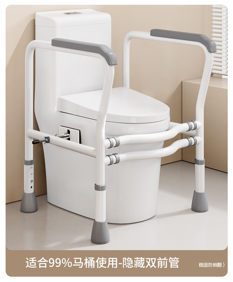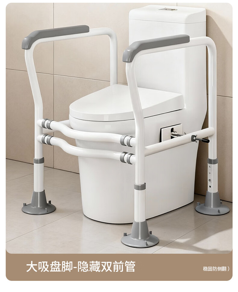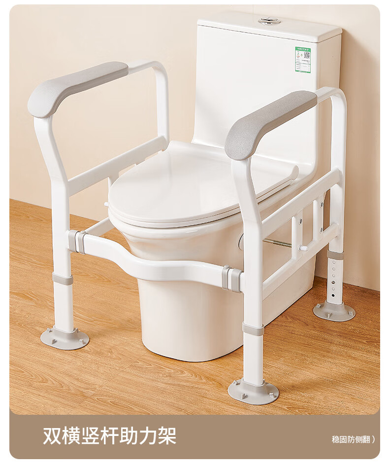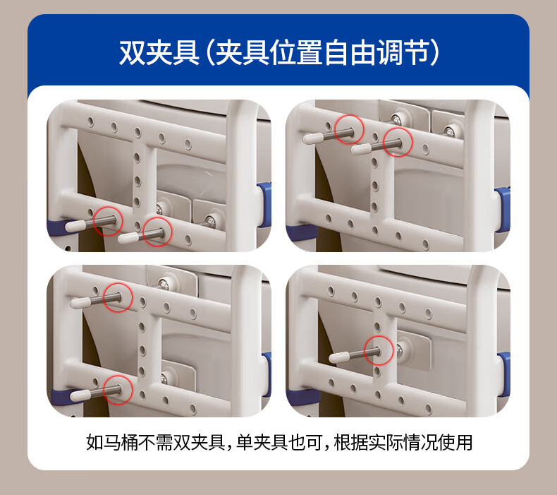 家文化(JIAWENHUA)马桶扶手老人安全助力架卫生间厕所老年坐便辅助器家用免打孔栏杆 适老化扶手架5孔定位蓝扶手-防滑脚 扁管单杆多孔助