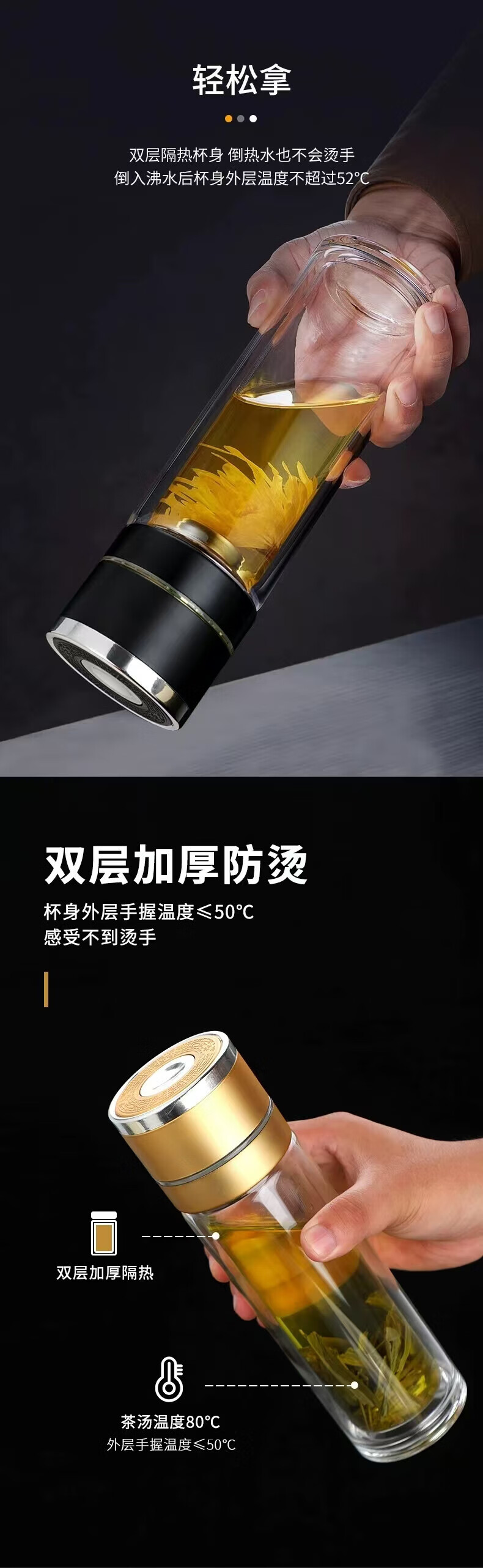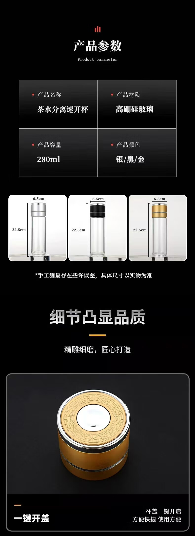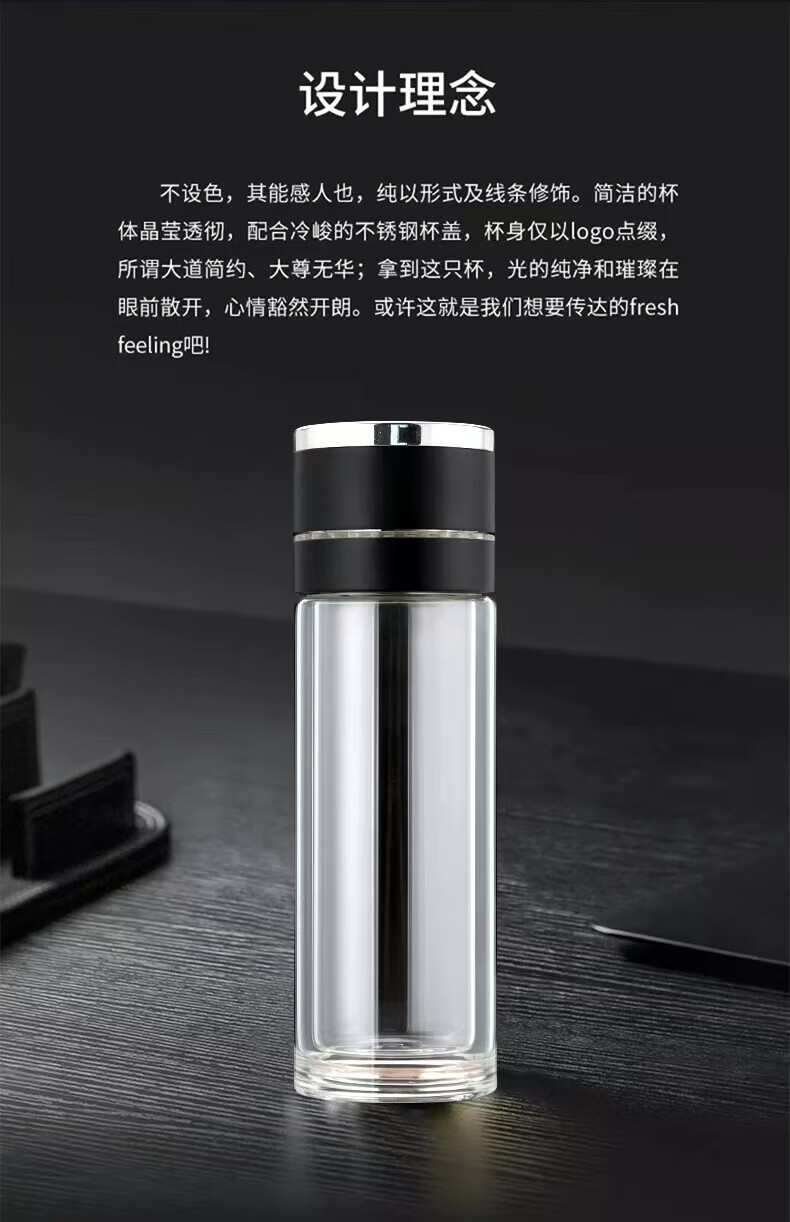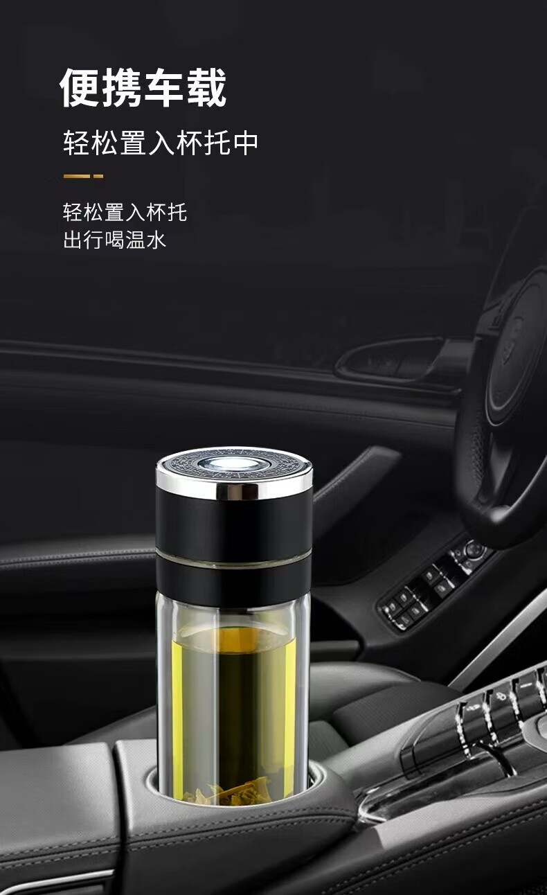 同款同款双层玻璃杯一键开盖泡茶水杯子男女办公车载便代购 银色400ml