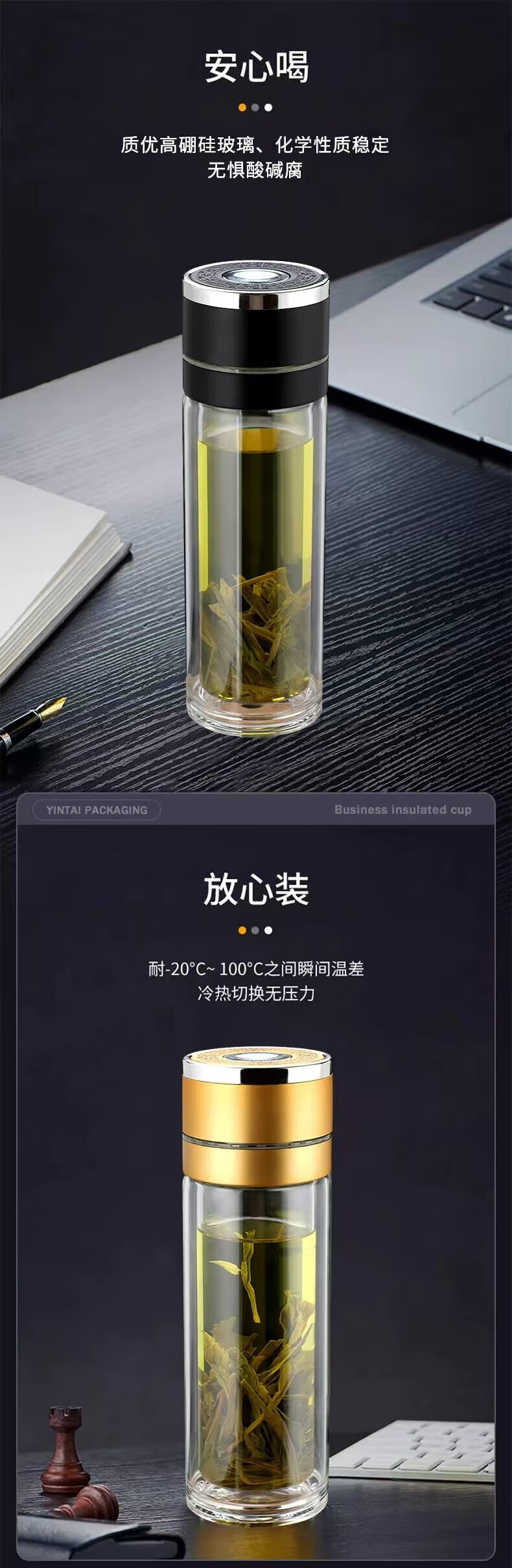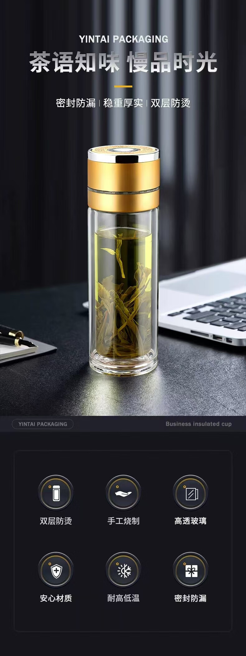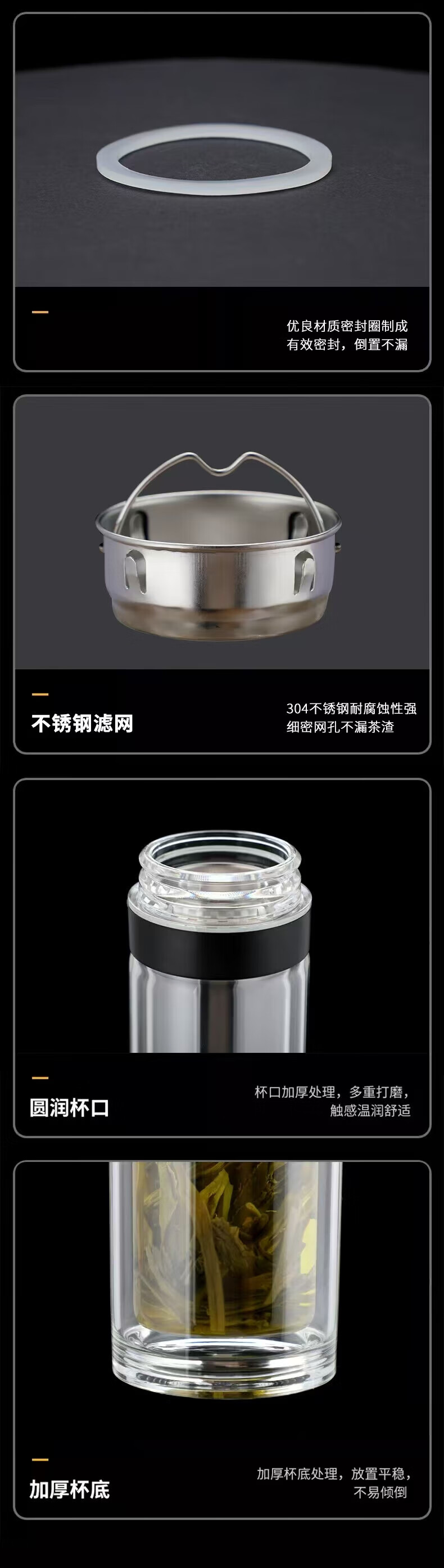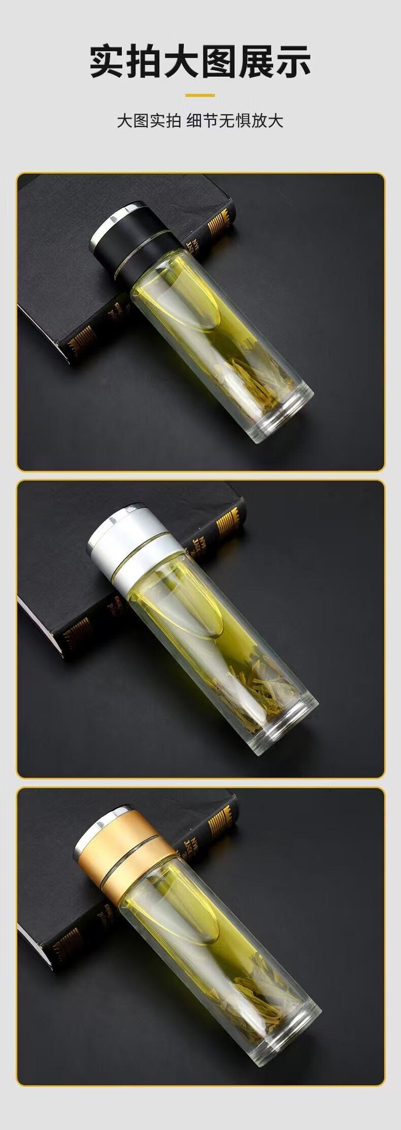 同款同款双层玻璃杯一键开盖泡茶水杯子男女办公车载便代购 银色400ml